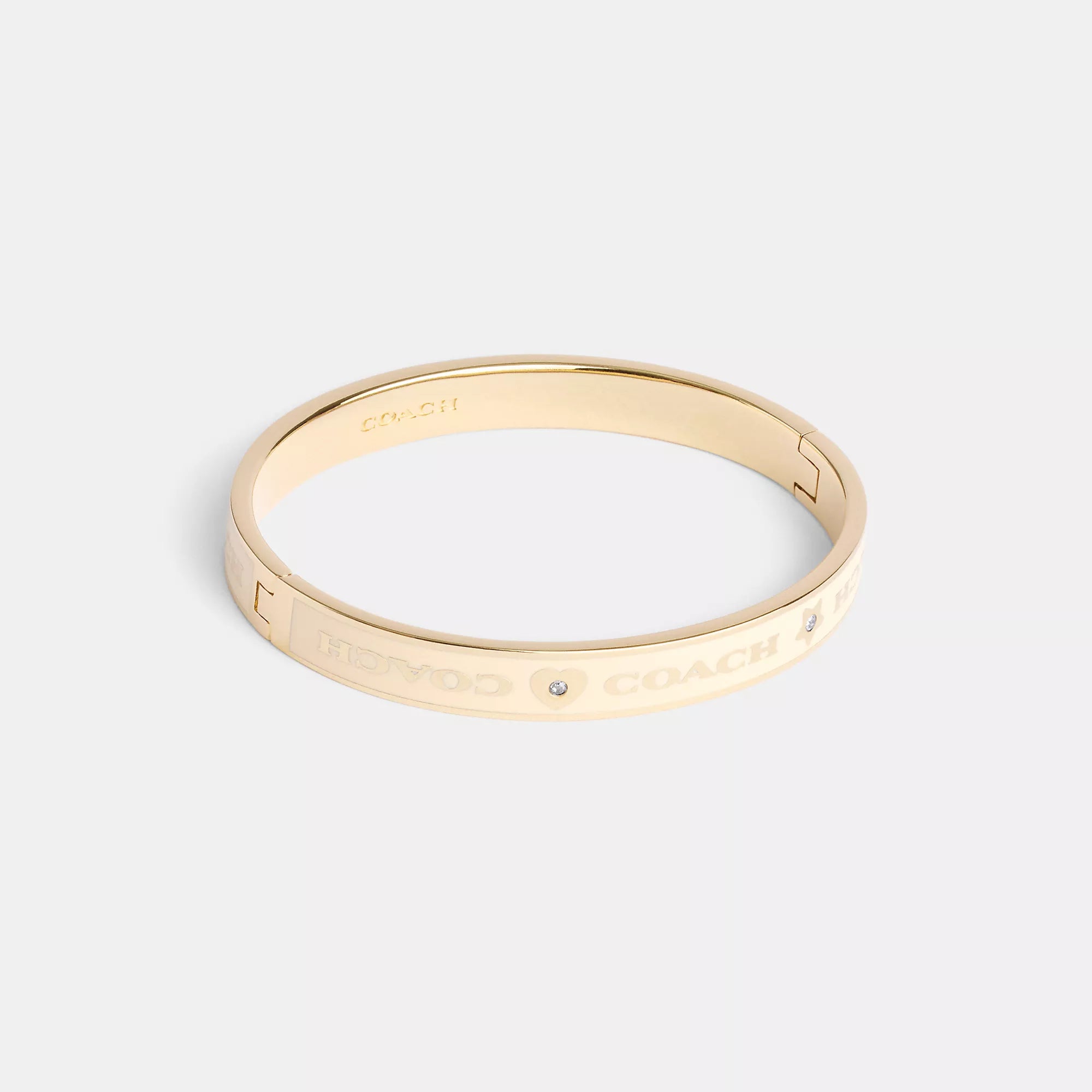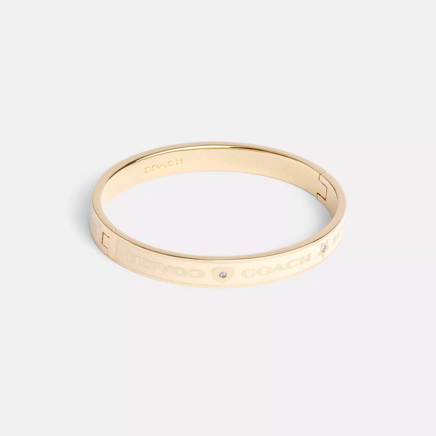 Plated brass enamel and cubic zirconia Pushlock closure Diameter - 2 1/4 (L) x 2 (H) Style No. CAD65 | Coach Outlet Coach Heart And Star Enamel Bangle - Multi