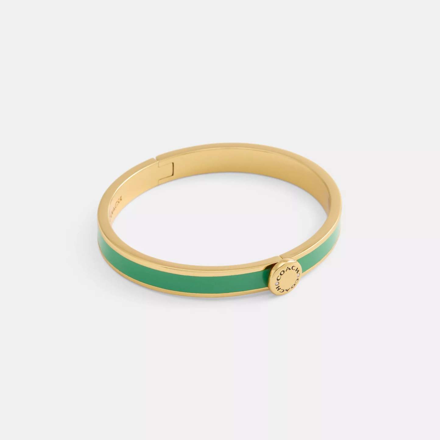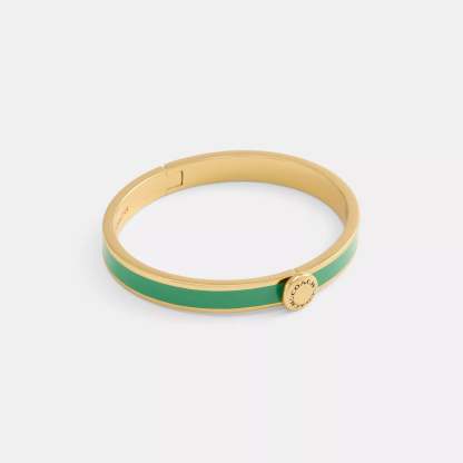 Plated brass enamel glass and cubic zirconia Pushlock closure Diameter - 2 1/4 (L) x 2 (H) Style No. CBW73 | Coach Outlet Coach Rivet Enamel Hinged Bangle - Green