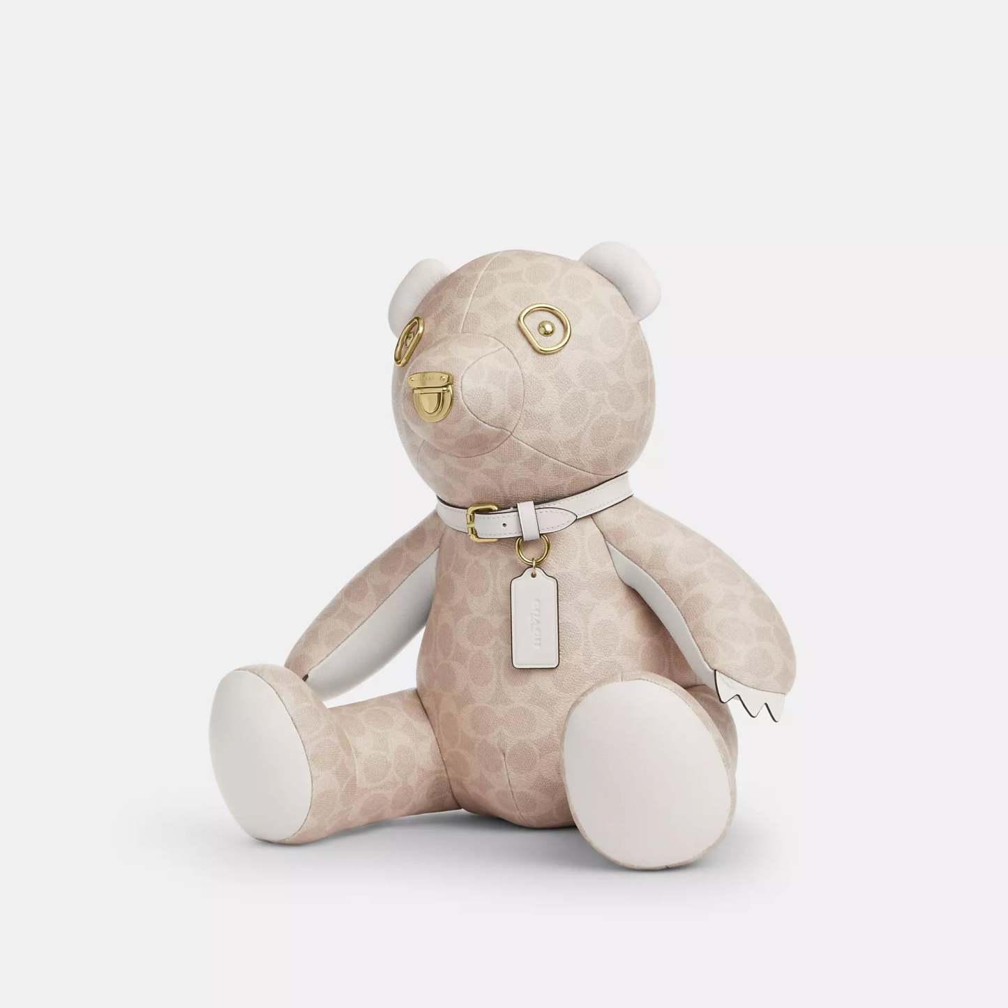 Signature coated canvas and refined pebble leather 15 1/2 (L) x 16 (H) x 12 (W) Style No. CZ194 | Coach Outlet Collectible Bear In Signature Canvas - Beige