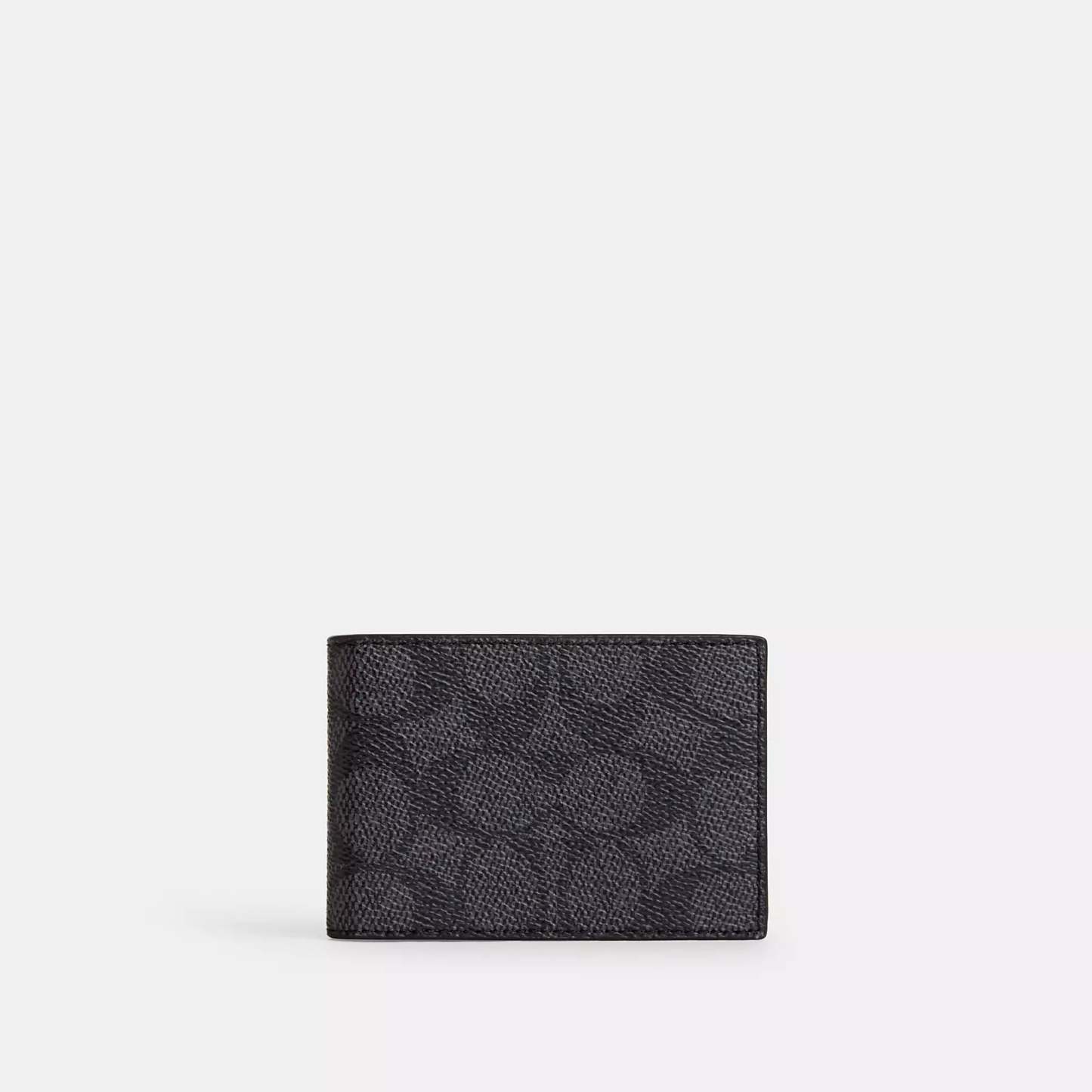 Signature coated canvas and refined calf leather Two inside credit card slots Inside open pocket ID window Two outside credit card slots Outside open pocket 4 (L) x 2 3/4 (H) Style No. CW368 | Coach Outlet Compact Billfold Wallet In Signature Canvas - Brown