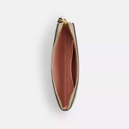 Signature coated canvas Two credit card slots Zip-top closure fabric lining Wrist strap attached 6 1/4 (L) x 4 (H) x 1/2 (W) Style No. CAR20 | Coach Outlet Corner Zip Wristlet In Signature Canvas With Floral Print - Beige