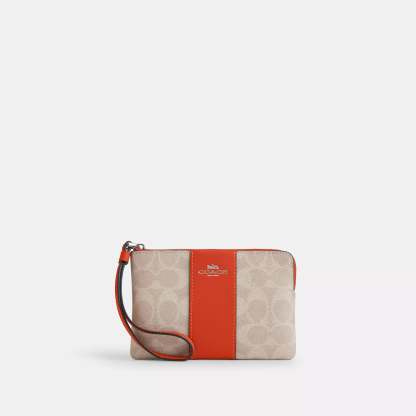 Outlet Corner Zip Wristlet In Signature Canvas With Stripe