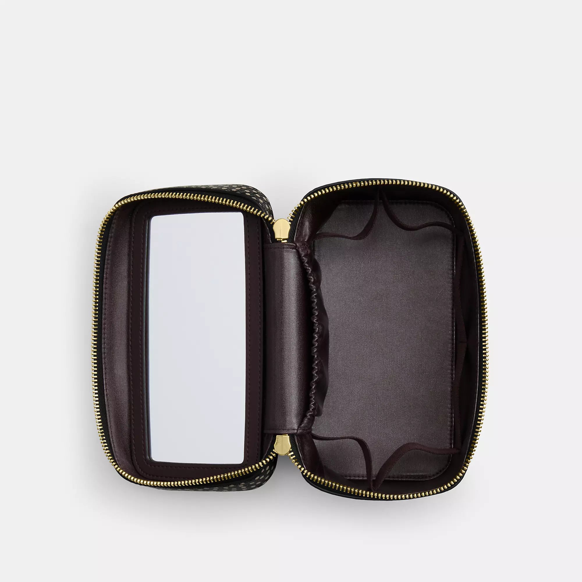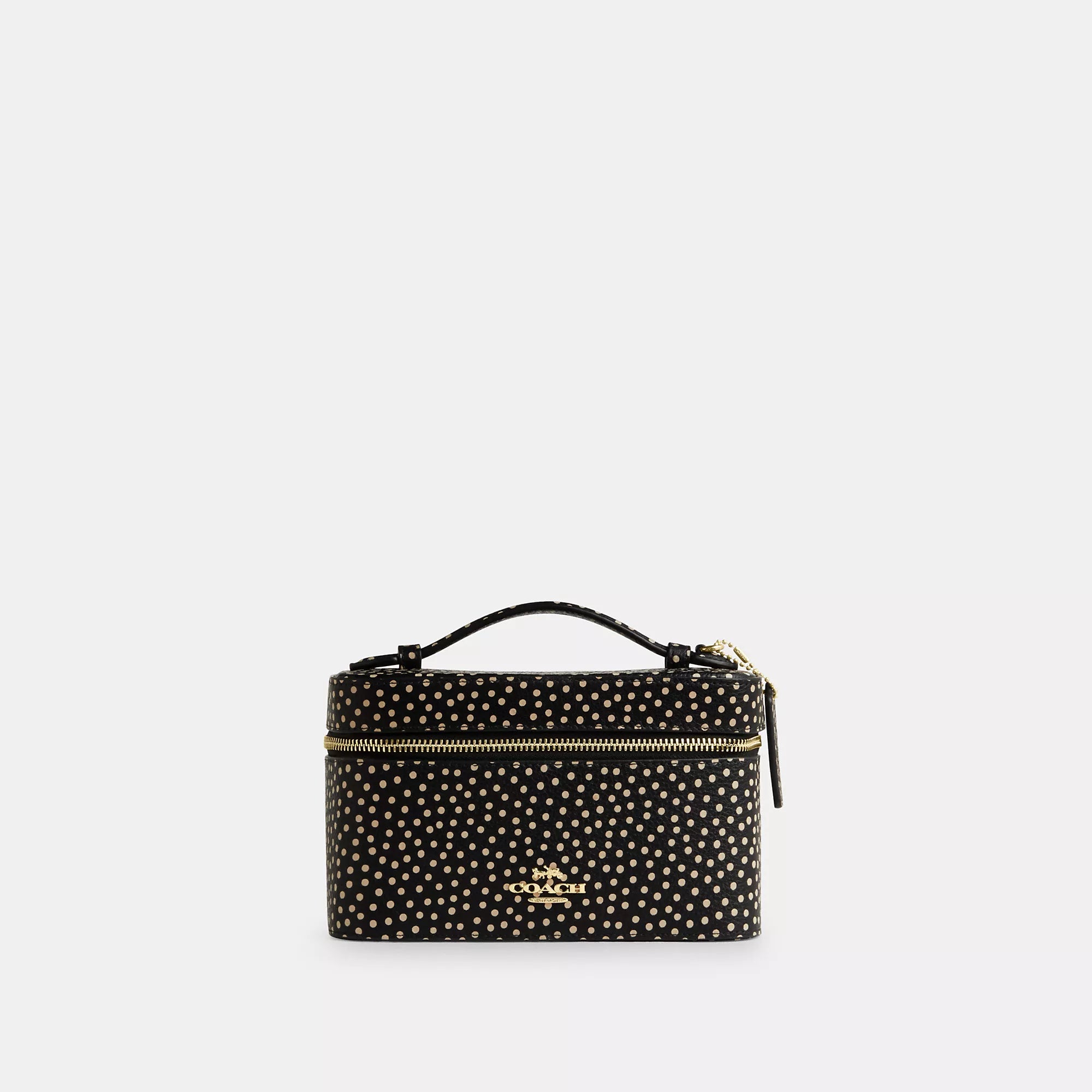Refined pebble leather Inside multifunction pocket Zip closure fabric lining Handle with 1 drop 7 3/4 (L) x 4 3/4 (H) x 4 1/4 (W) Style No. CCF44 | Coach Outlet Cosmetic Case With Spot Print - Black