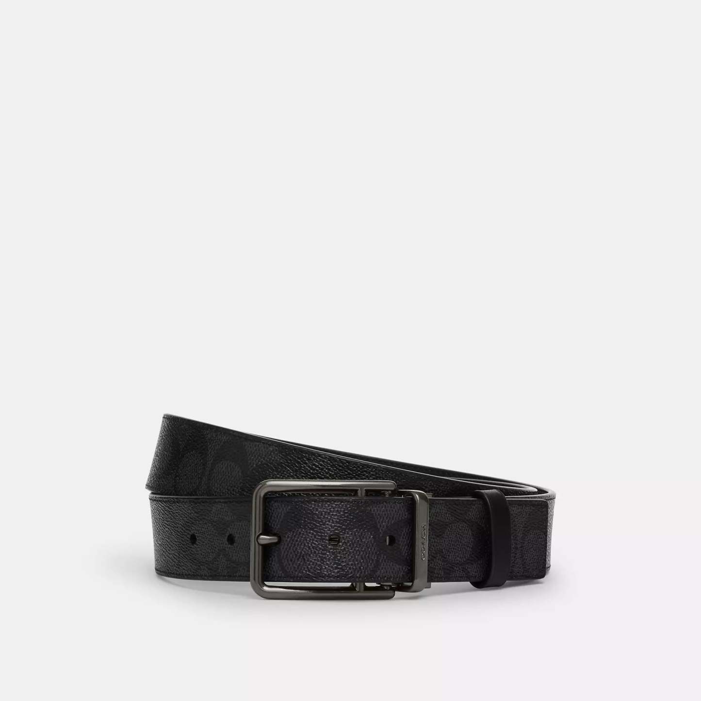 Signature coated canvas and refined calf leather Cut-to-size Reversible 38mm (W) Style No. CY997 | Coach Outlet Double Bar Buckle Cut To Size Reversible Belt, 38 Mm - Multi