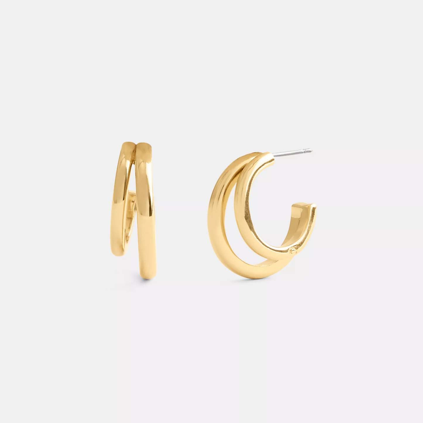 Plated brass and cubic zirconia Hypoallergenic titanium post Butterfly closure 1/2 (L) x 1/4 (H) Style No. CBW33 | Coach Outlet Double Hoop Earrings - Yellow