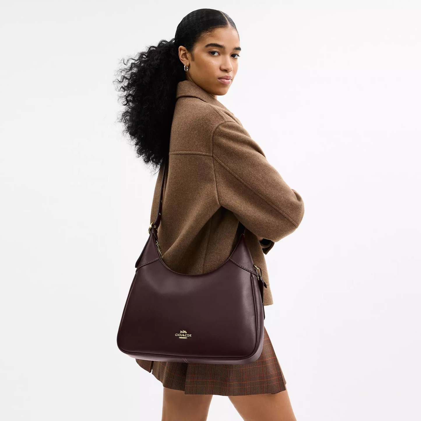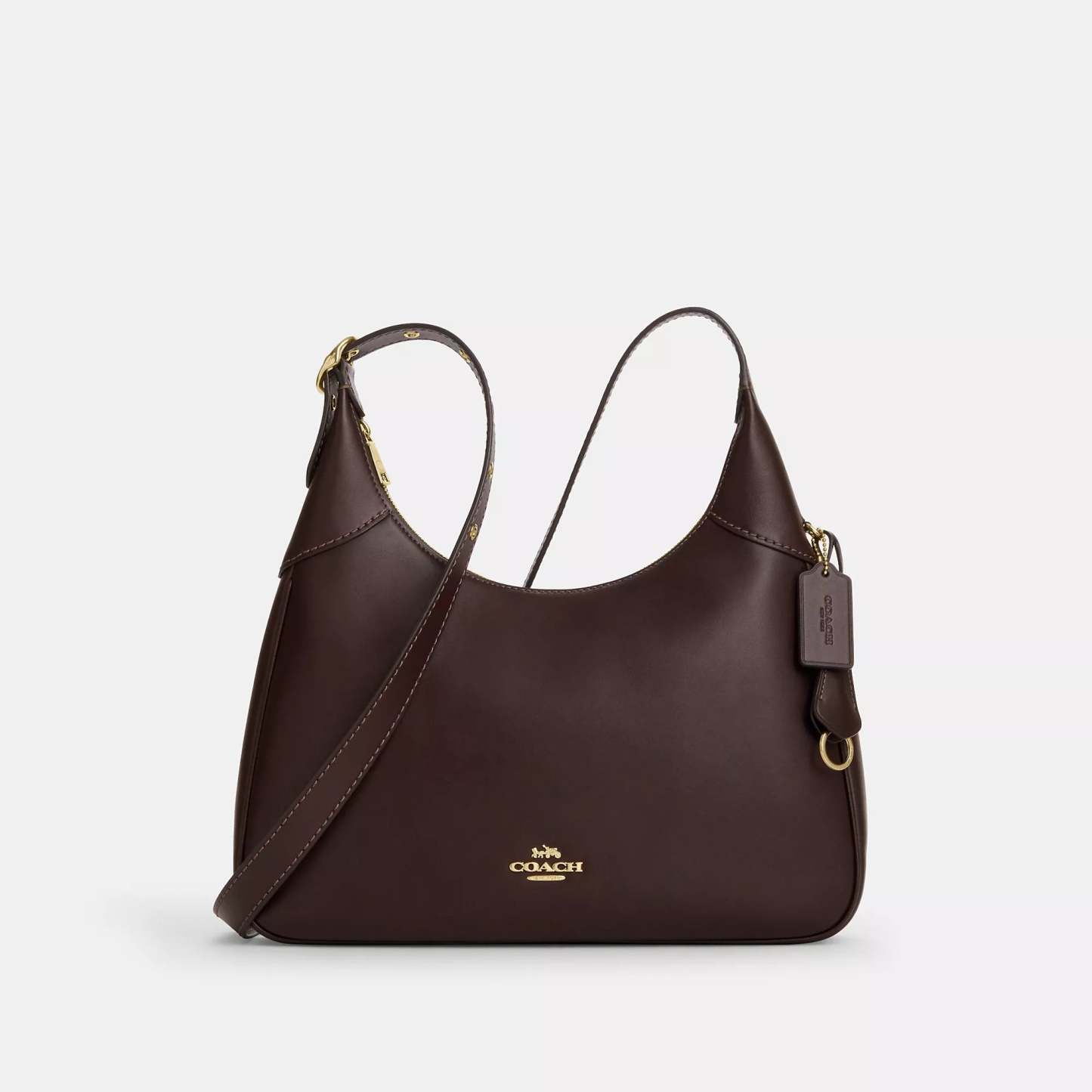Smooth leather Inside zip pocket Zip-top closure fabric lining Adjustable strap with 11 1/4 drop 14 (L) x 12 3/4 (H) x 2 1/2 (W) Style No. CCE48 | Coach Outlet Ella Shoulder Bag - Brown