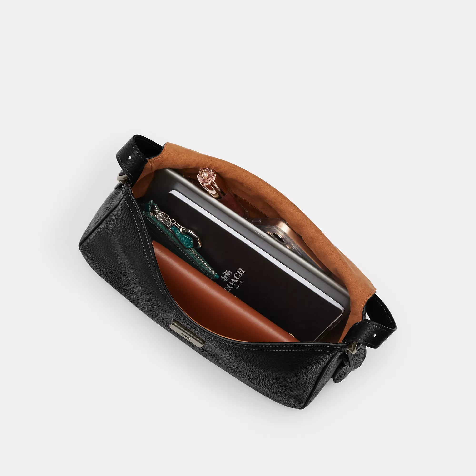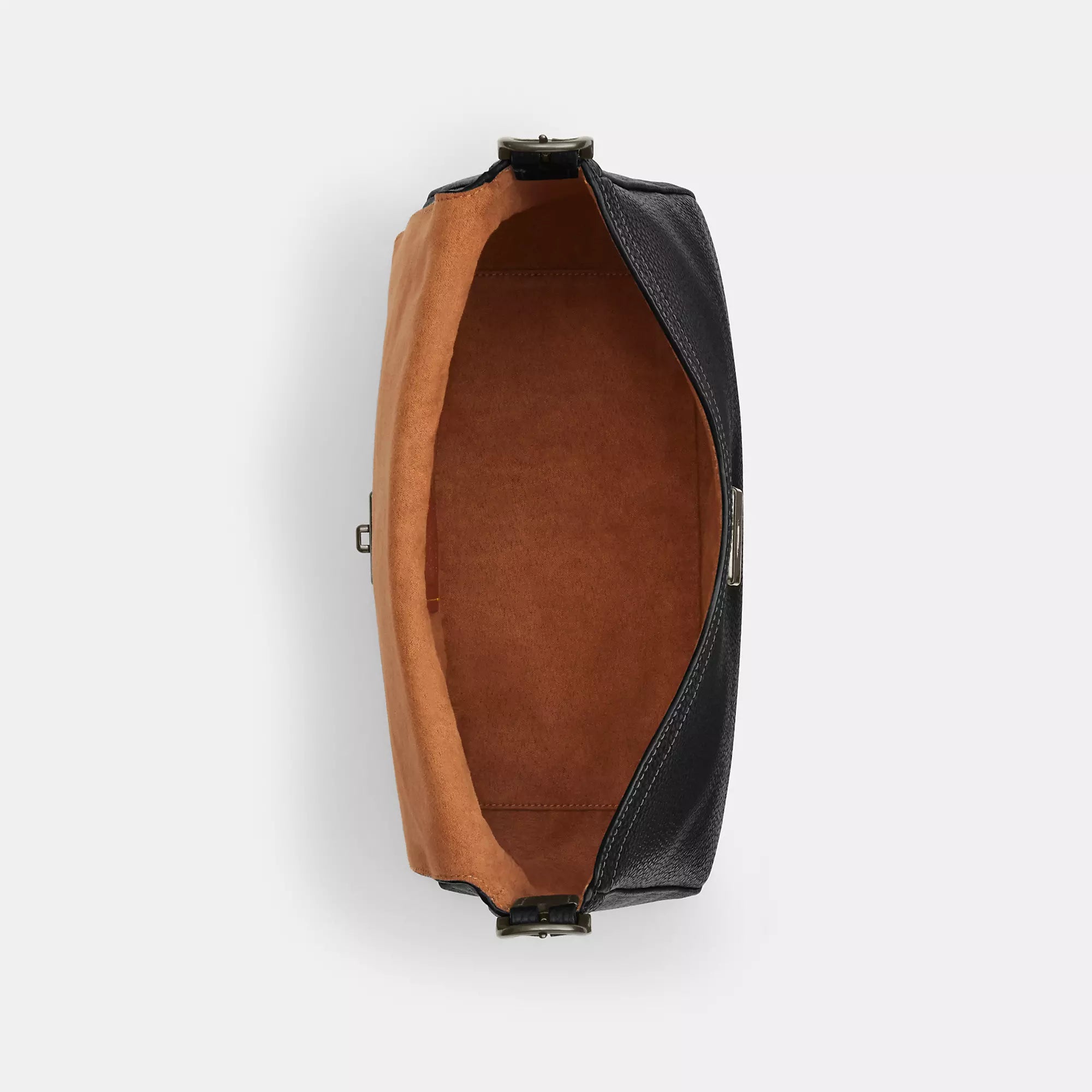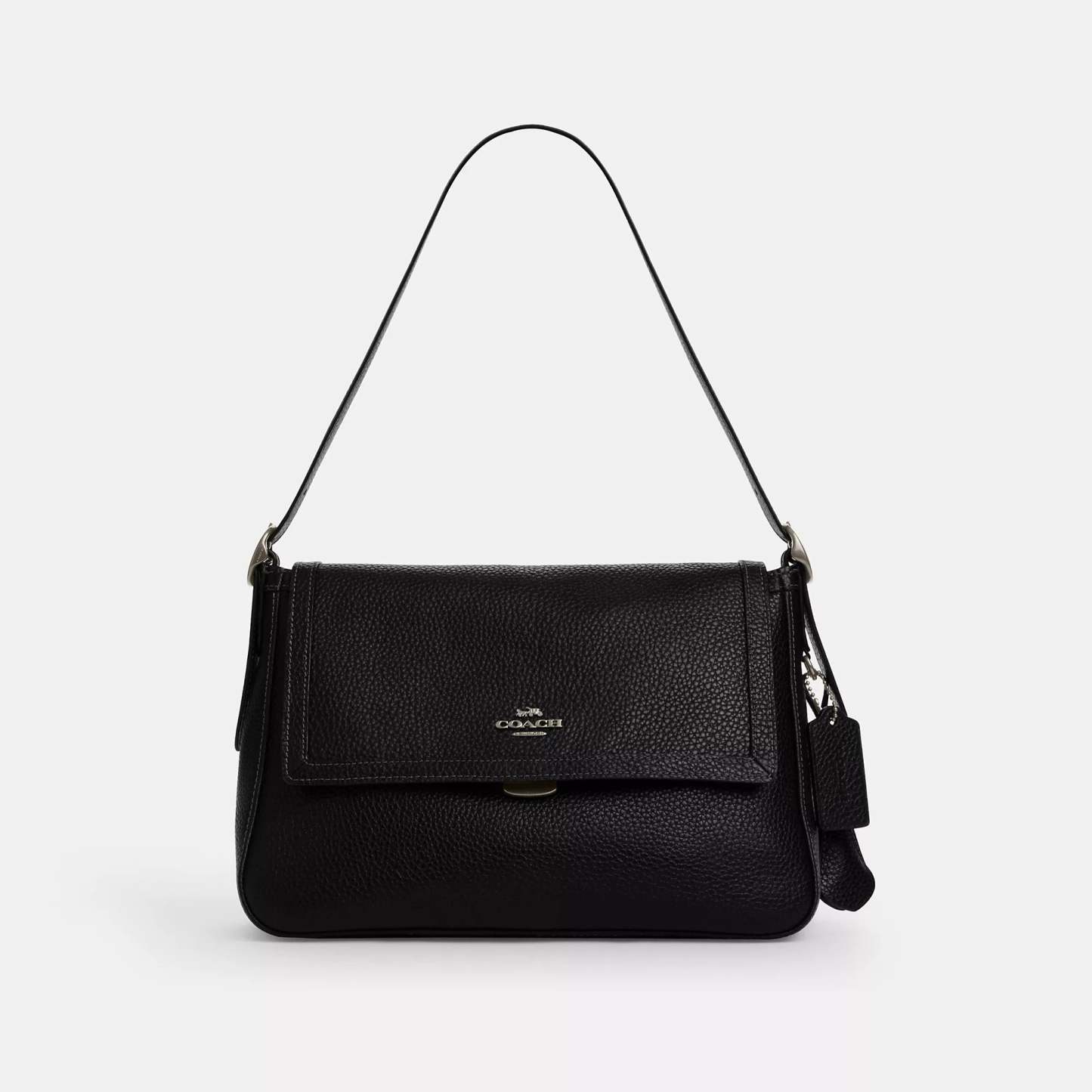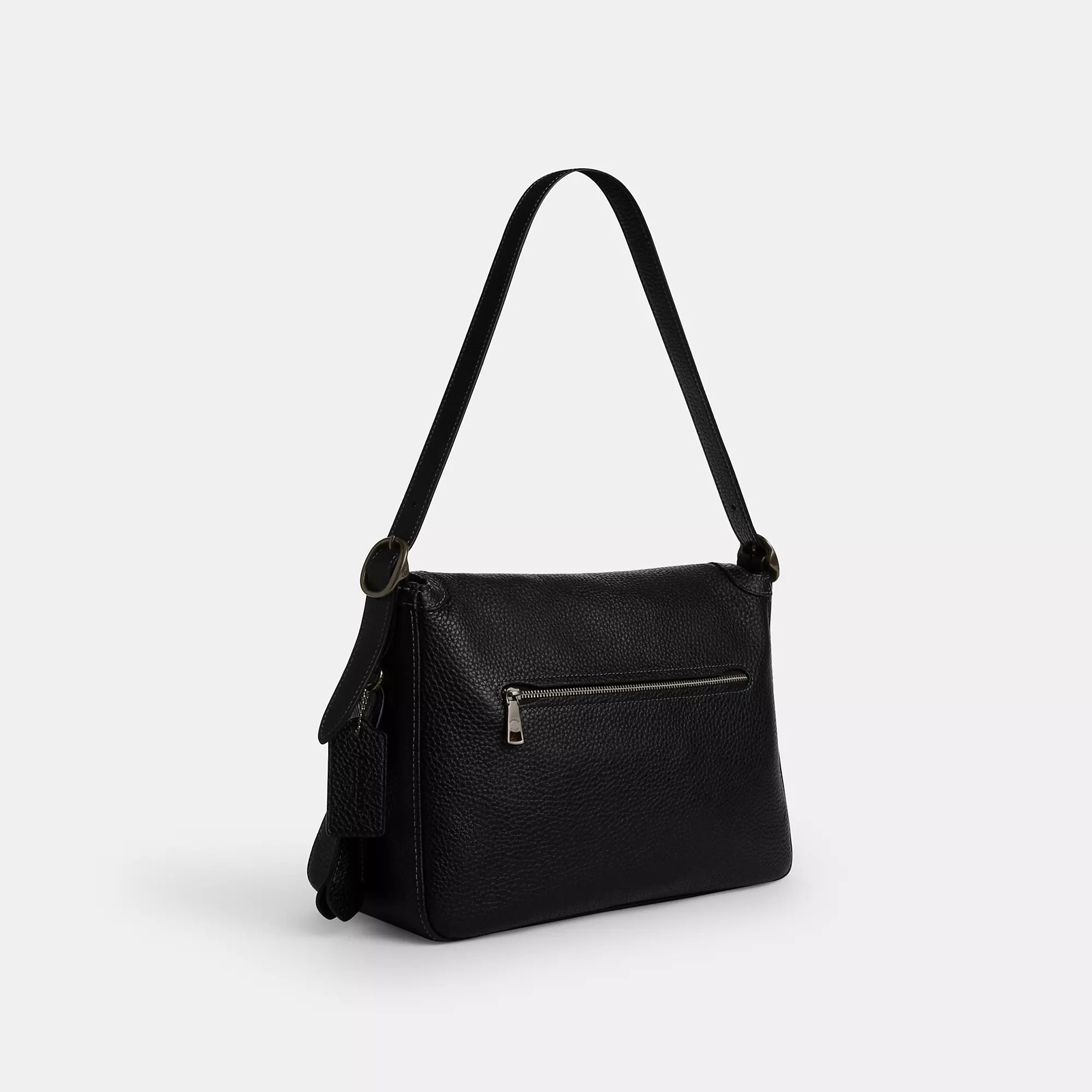 Soft pebble leather Inside zip pocket Pushlock closure fabric lining Adjustable handle with 9 1/4 drop 11 1/2 (L) x 8 (H) x 4 1/2 (W) Style No. CCE56 | Coach Outlet Etta Flap Bag - Black