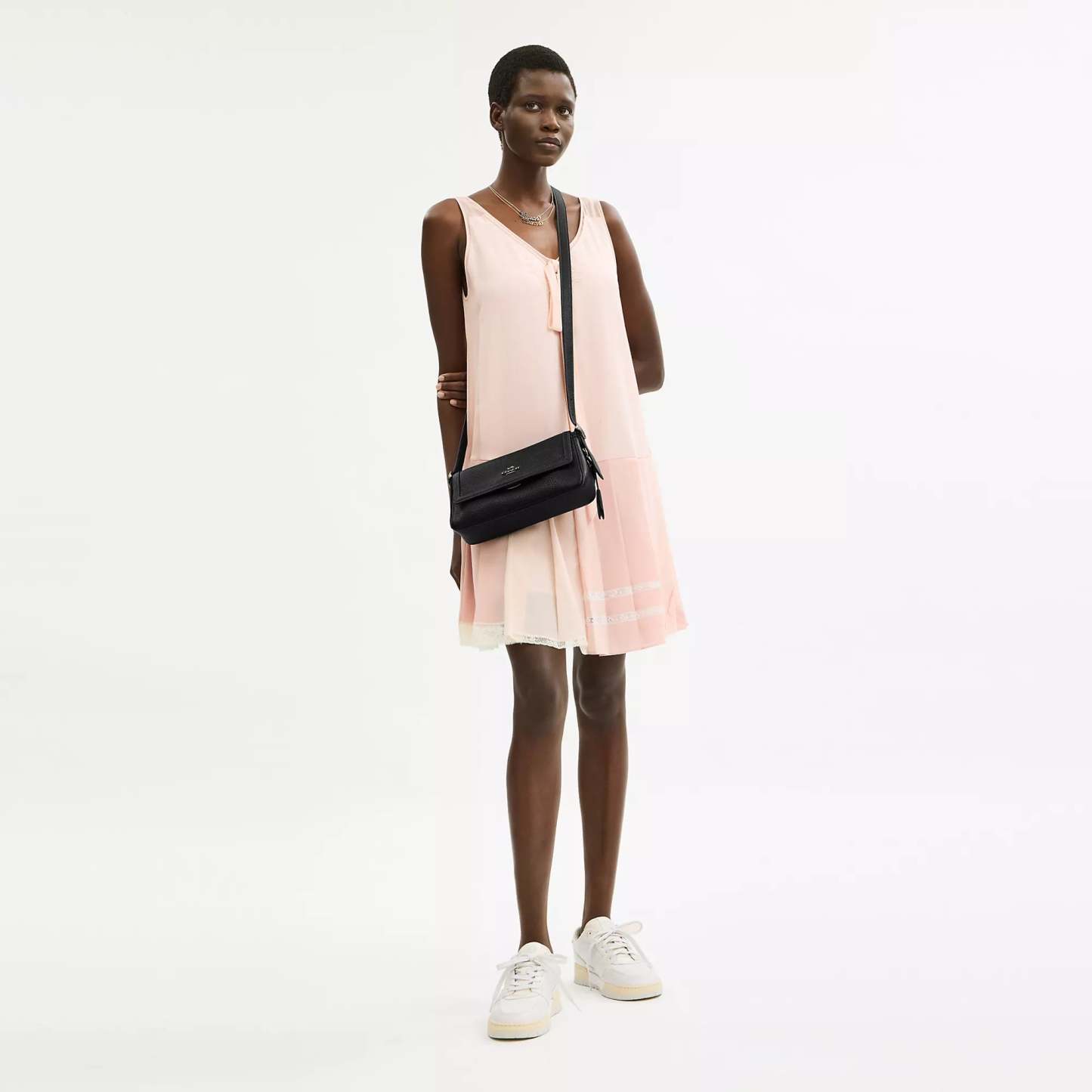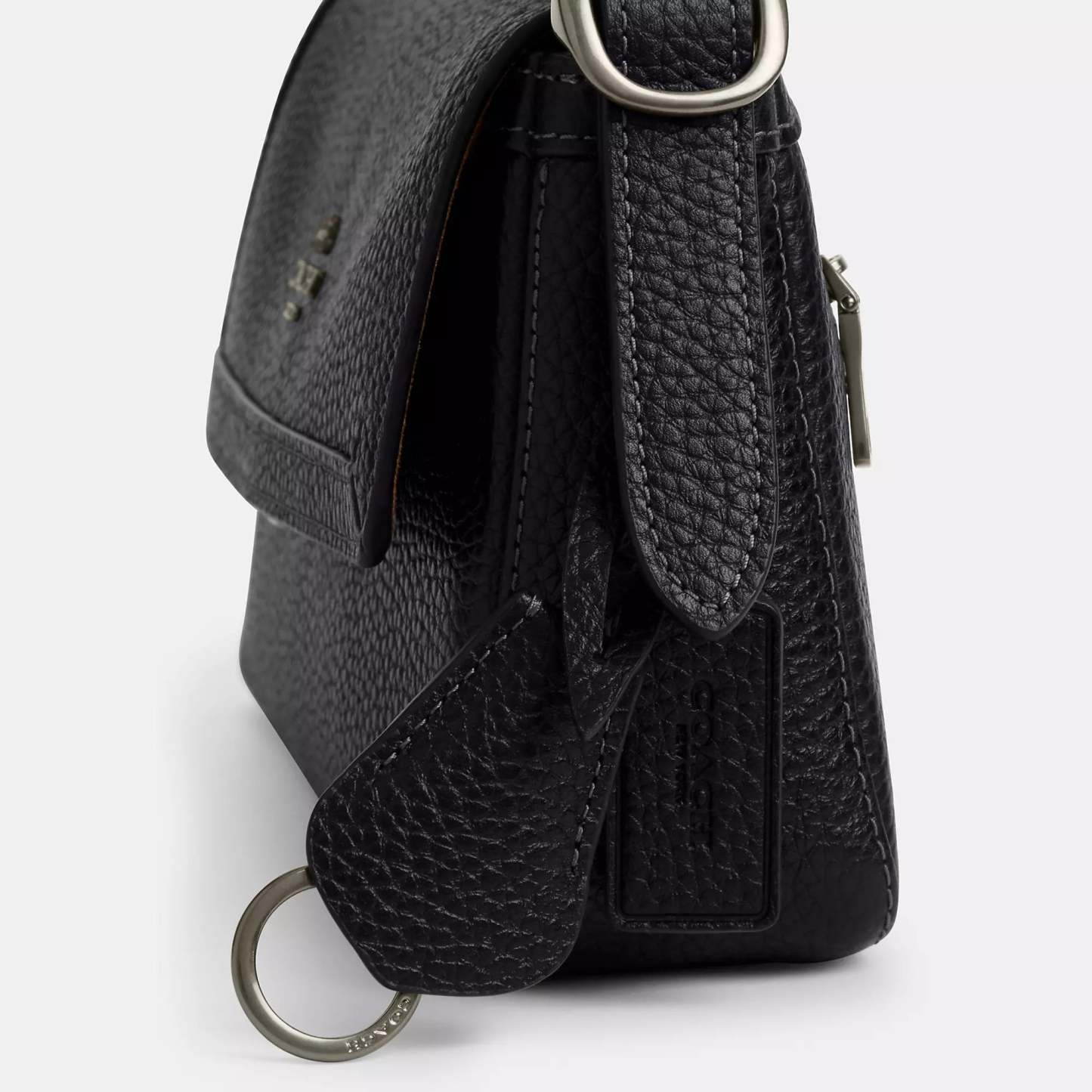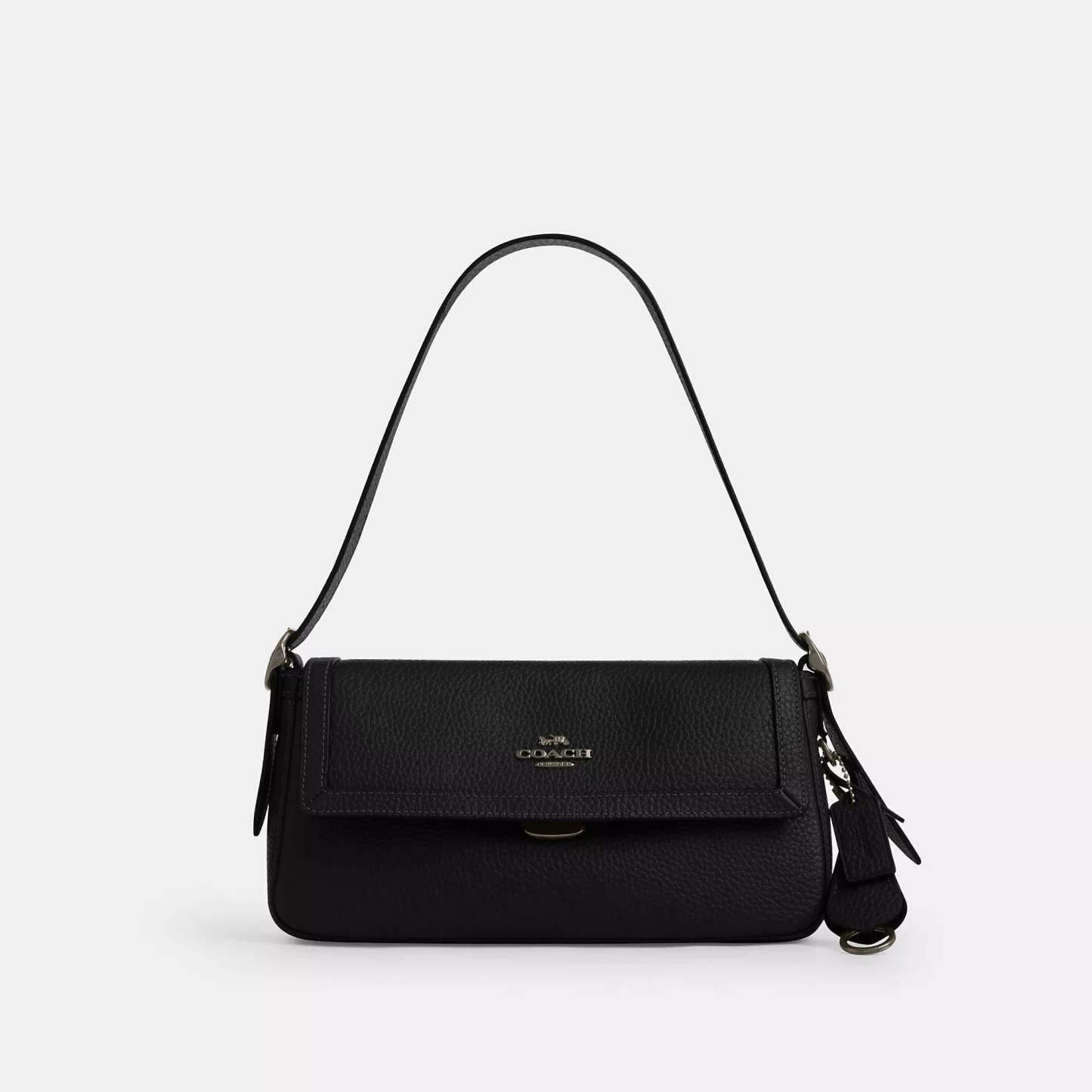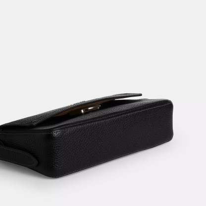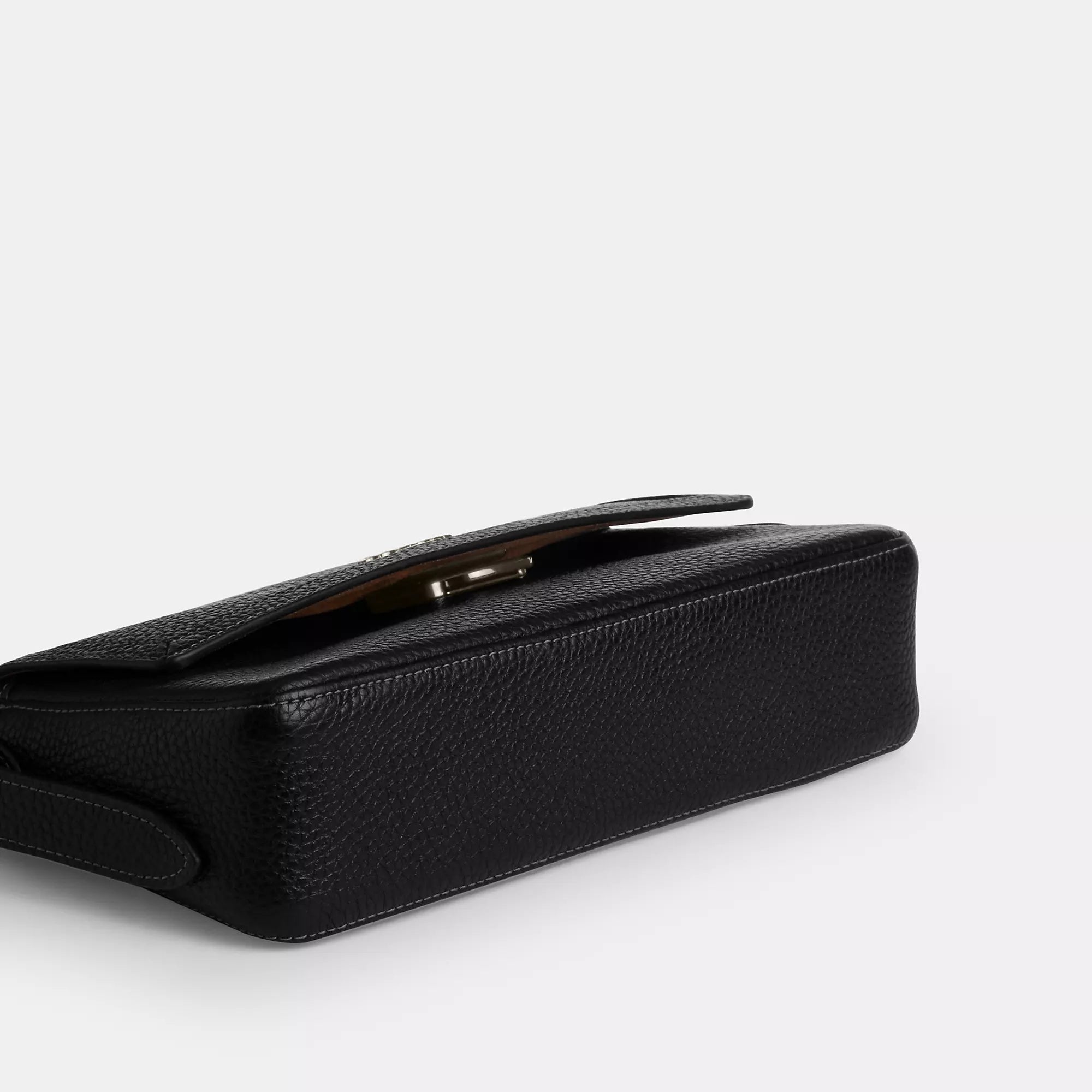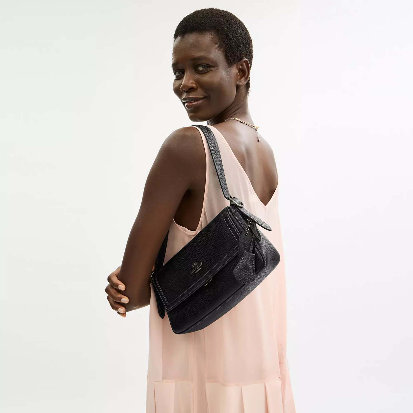 Soft pebble leather Inside zip pocket Pushlock closure fabric lining Adjustable handle with 8 3/4 drop 9 3/4 (L) x 5 1/4 (H) x 2 1/2 (W) Style No. CCV64 | Coach Outlet Etta Small Flap Shoulder Bag - Black