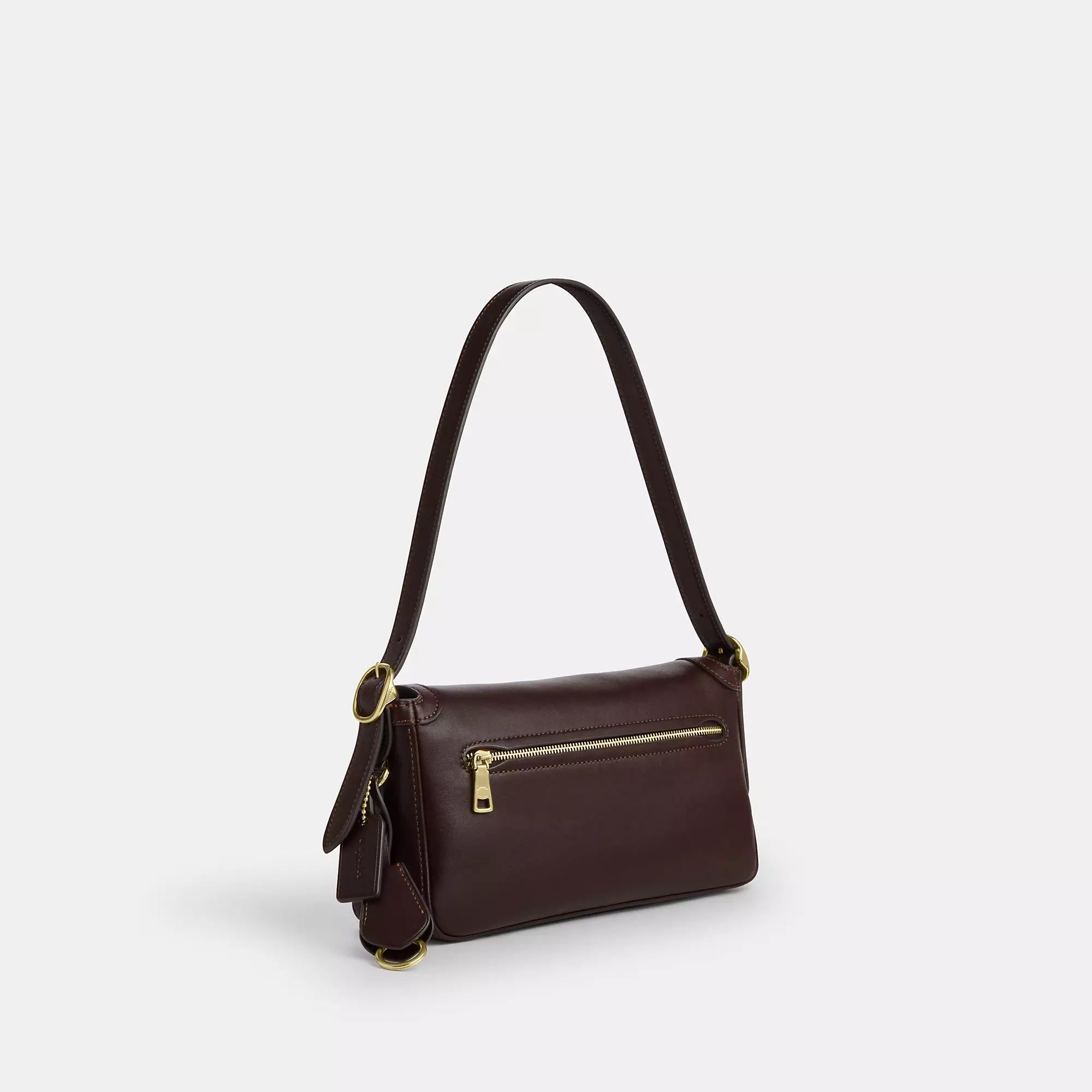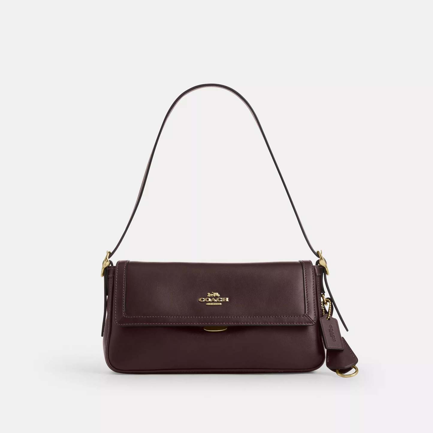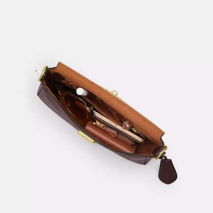 Smooth leather Inside zip pocket Pushlock closure fabric lining Adjustable handle with 8 3/4 drop 9 3/4 (L) x 5 1/4 (H) x 2 1/2 (W) Style No. CCV63 | Coach Outlet Etta Small Flap Shoulder Bag - Brown