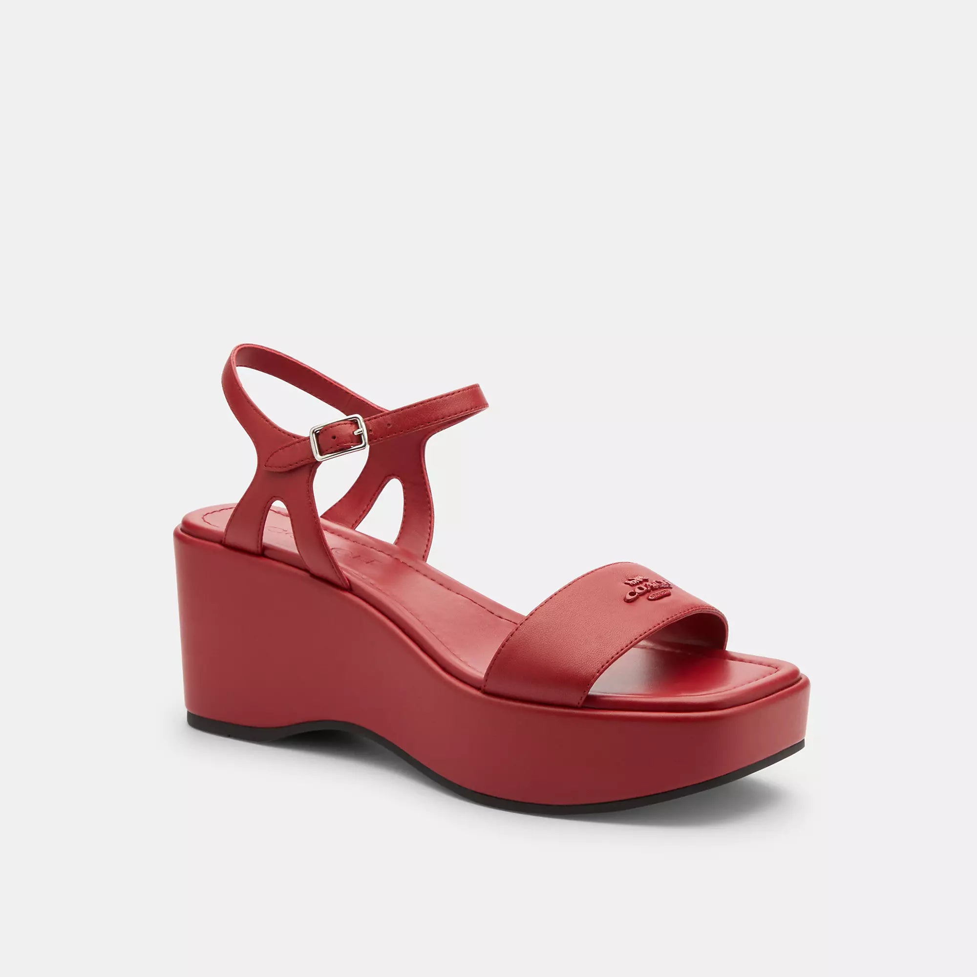Nappa leather upper Man-made leather lining and footbed Rubber outsole Buckle closure 3 1/4 platform Style No. CZ161 | Coach Outlet Gale Wedge Sandal - Red, Size - 6