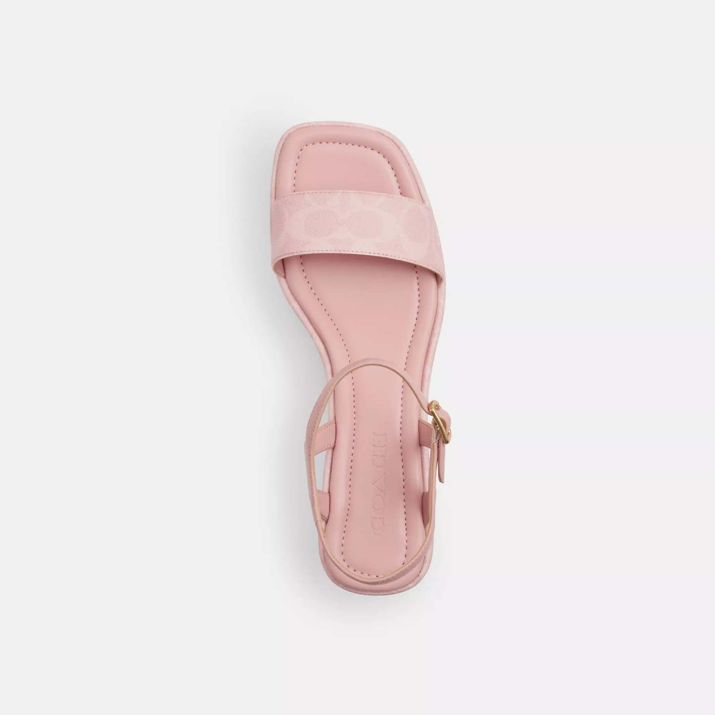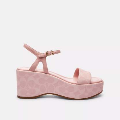Signature coated canvas and leather upper Man-made leather lining and footbed Rubber outsole Buckle closure 3 1/4 platform Style No. CAP41 | Coach Outlet Gale Wedge Sandal In Signature Canvas - Pink, Size - 10