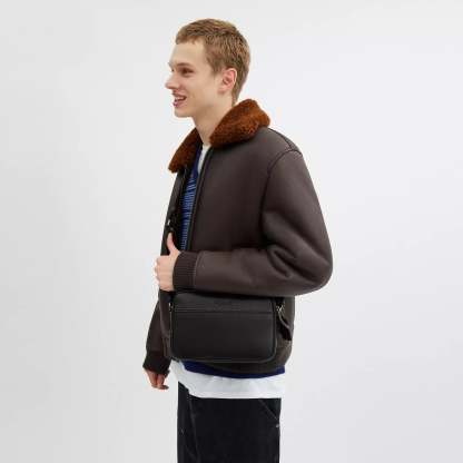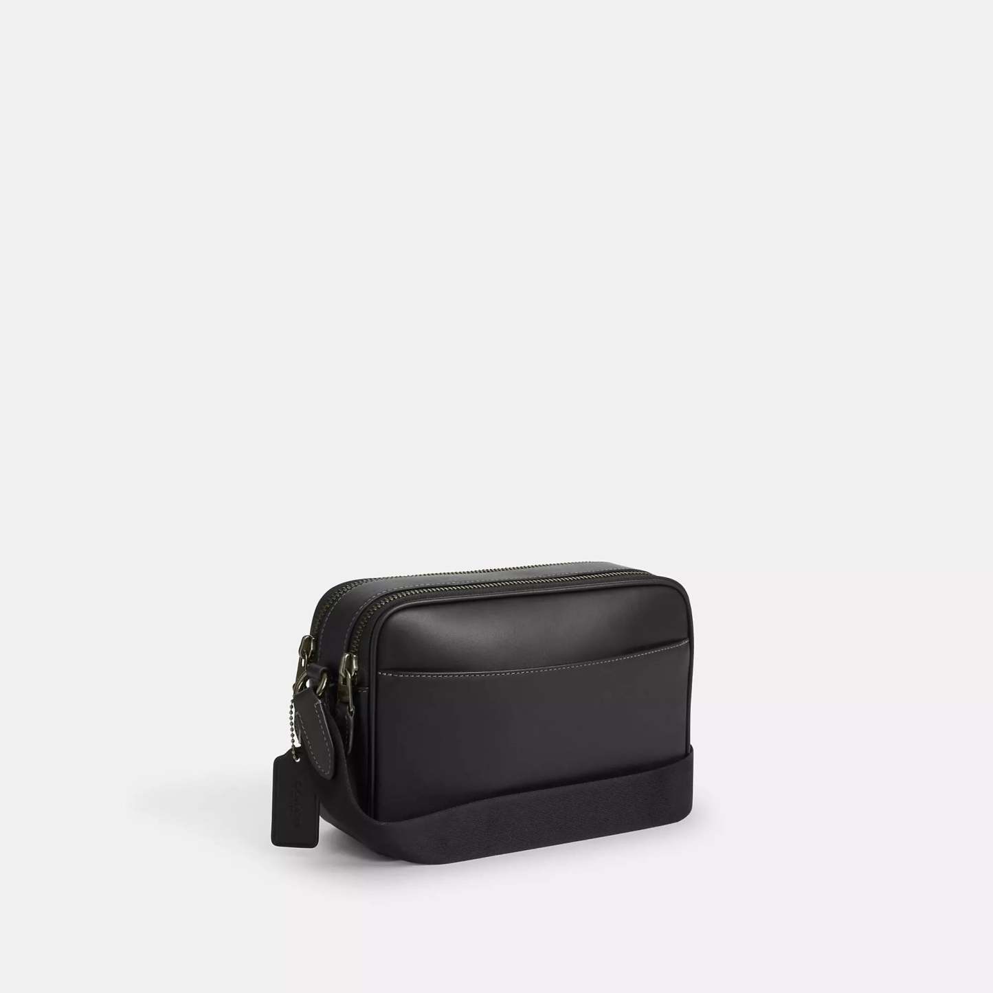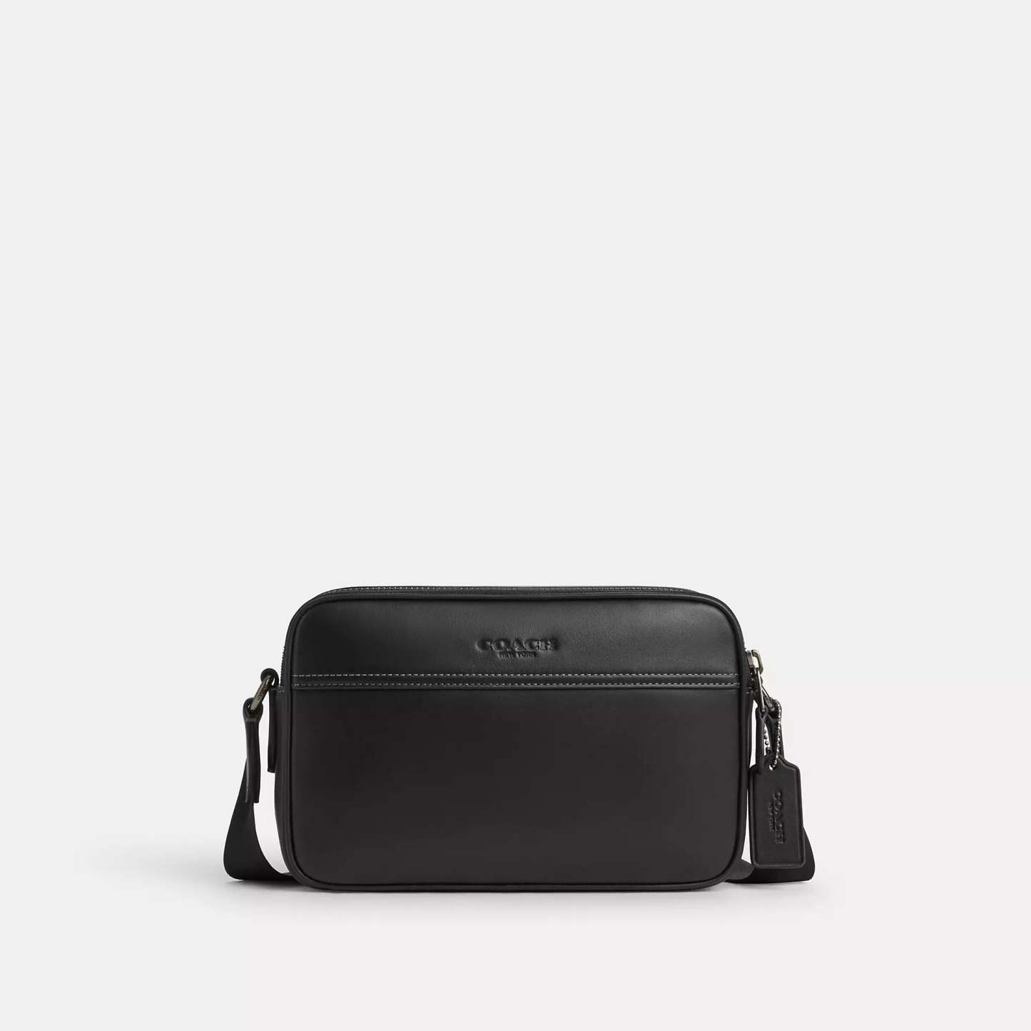 Smooth calf leather Inside multifunction pocket Double zip closure fabric lining Outside slip pocket Adjustable strap with 24 1/4 drop for shoulder or crossbody wear 9 (L) x 6 (H) x 2 3/4 (W) Style No. CX140 | Coach Outlet Graham Crossbody Bag - Black