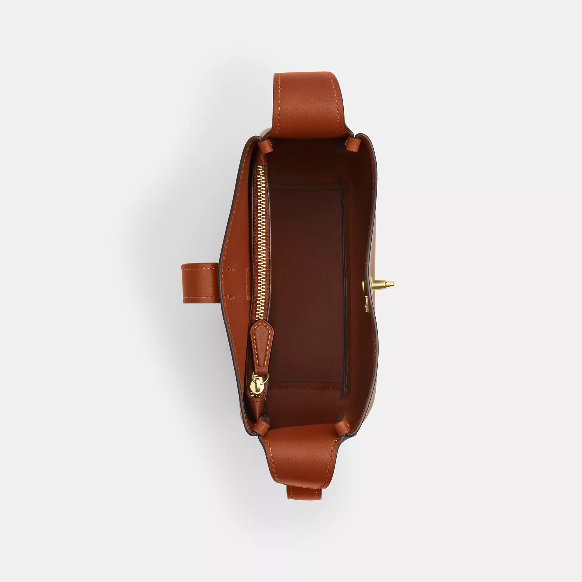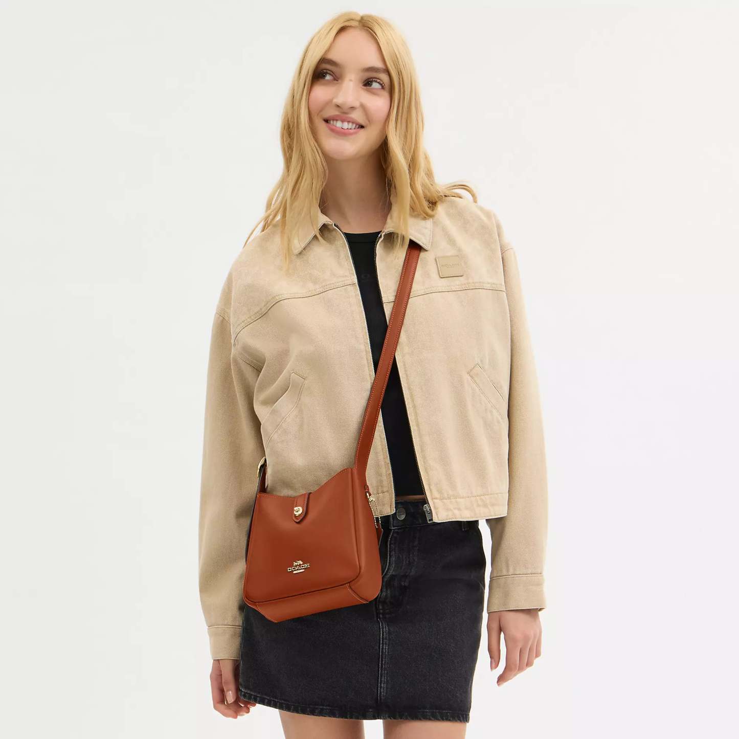 Smooth grain leather Inside zip pocket Turnlock closure fabric lining Adjustable strap with 22 drop for shoulder or crossbody wear 7 3/4 (L) x 7 1/2 (H) x 2 3/4 (W) Style No. CBM63 | Coach Outlet Hadley Mini Crossbody Bag - Beige