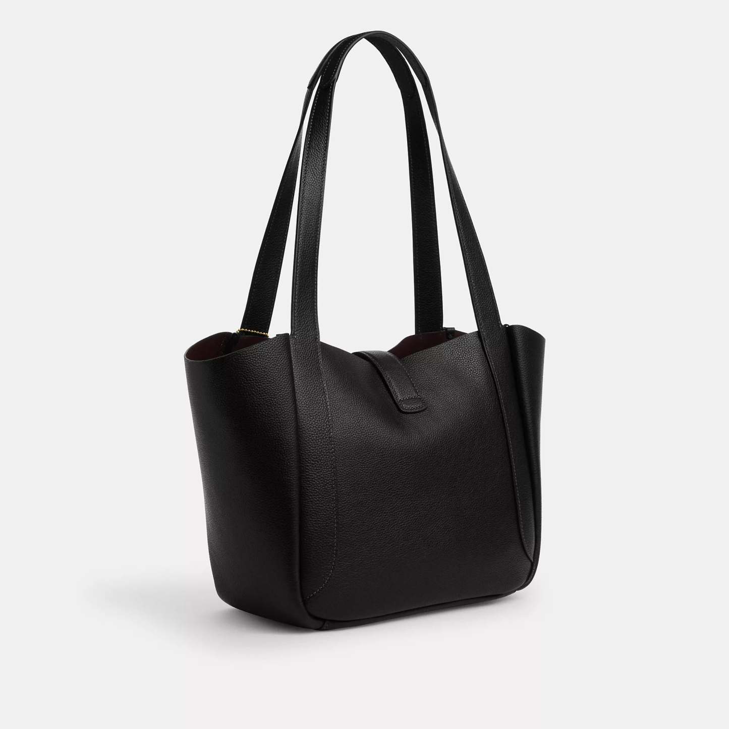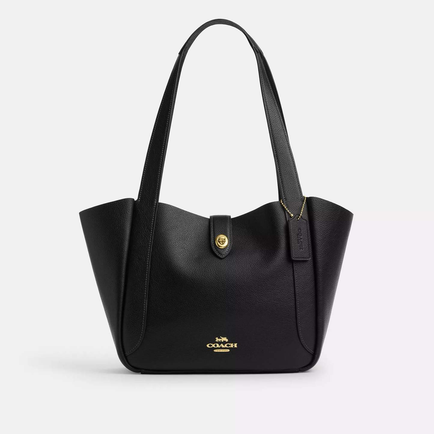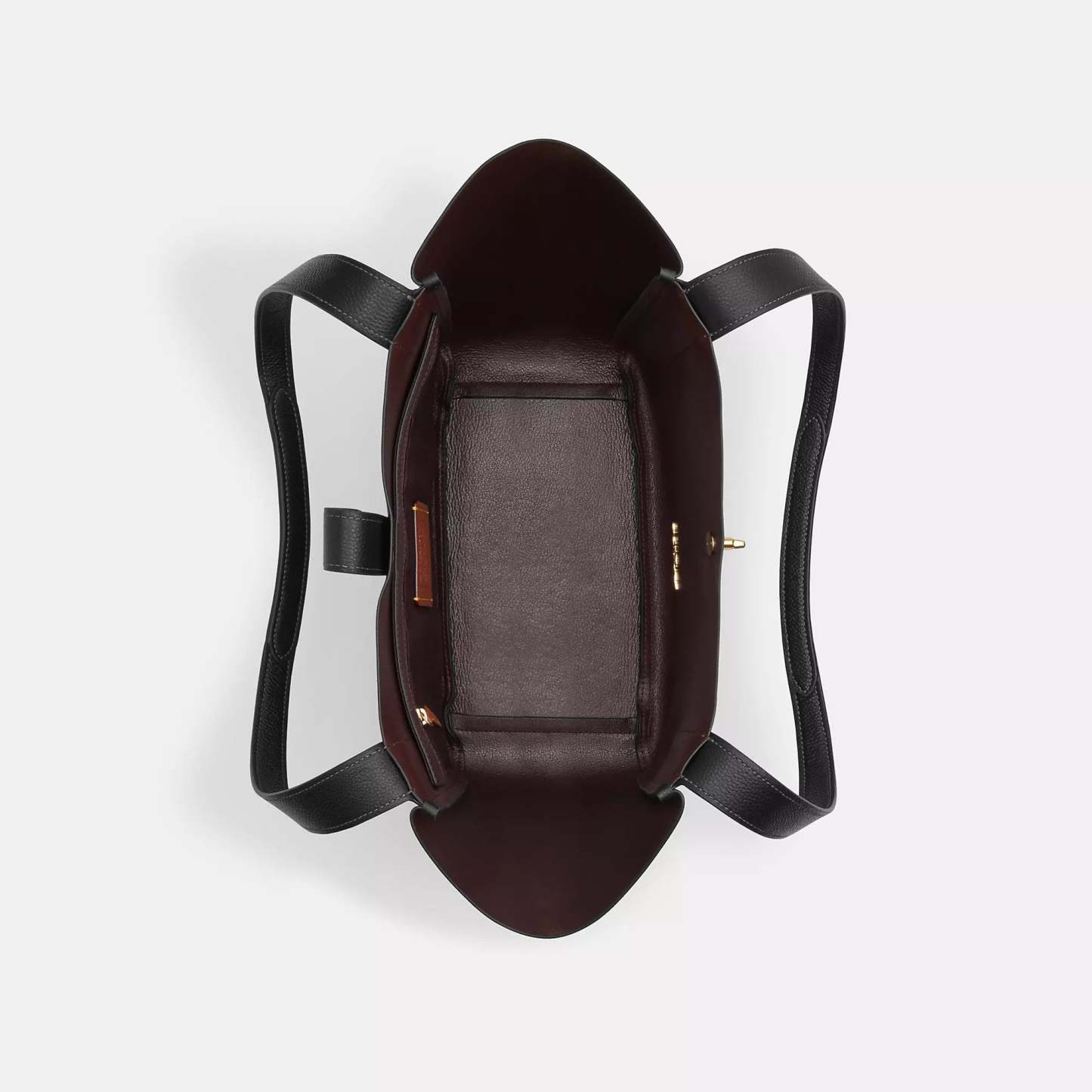 Double face leather Inside zip pocket Turnlock closure Handles with 11 1/2 drop 10 3/4 (L) x 9 1/2 (H) x 5 (W) Style No. CAL17 | Coach Outlet Hadley Turnlock Tote Bag - Black