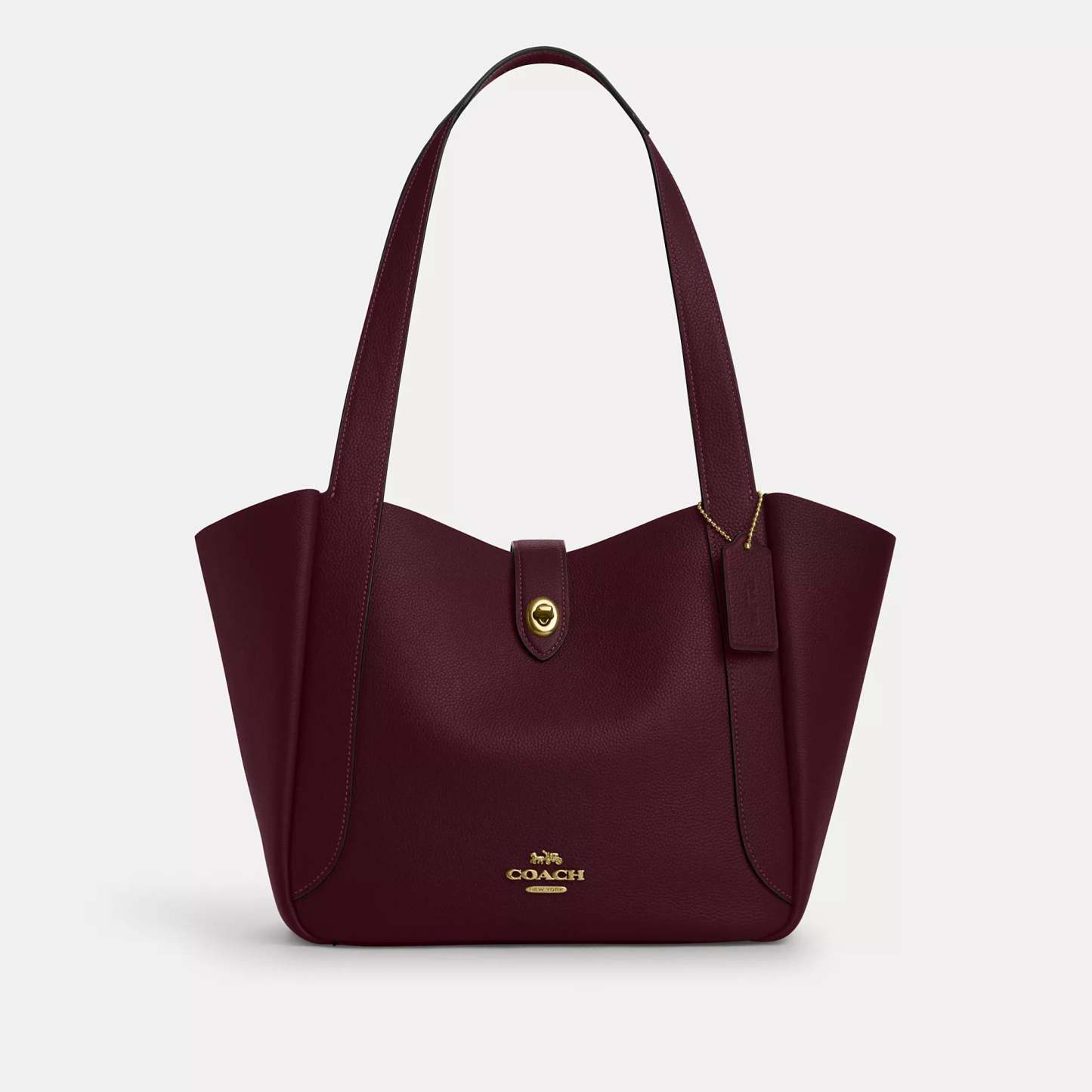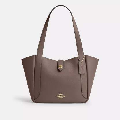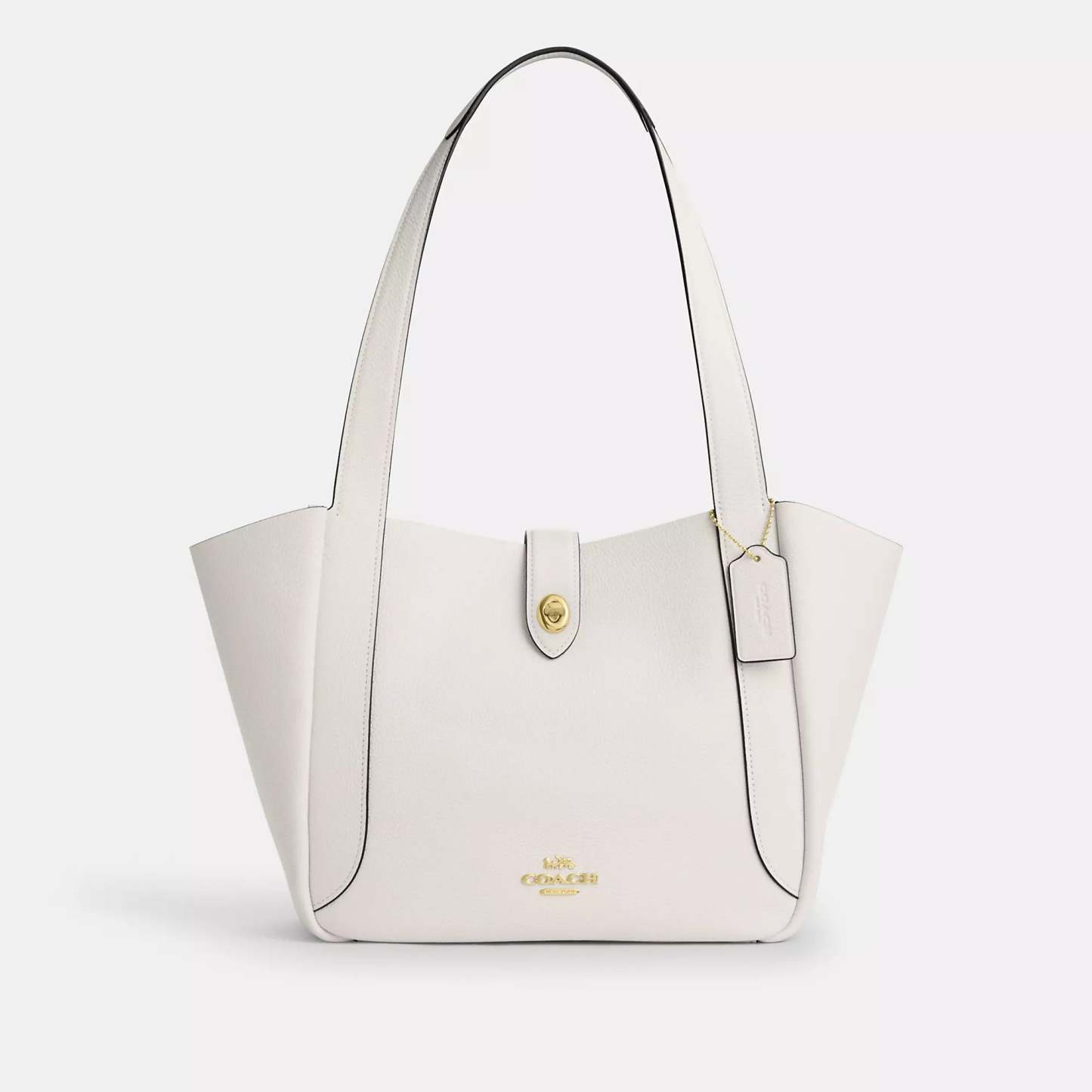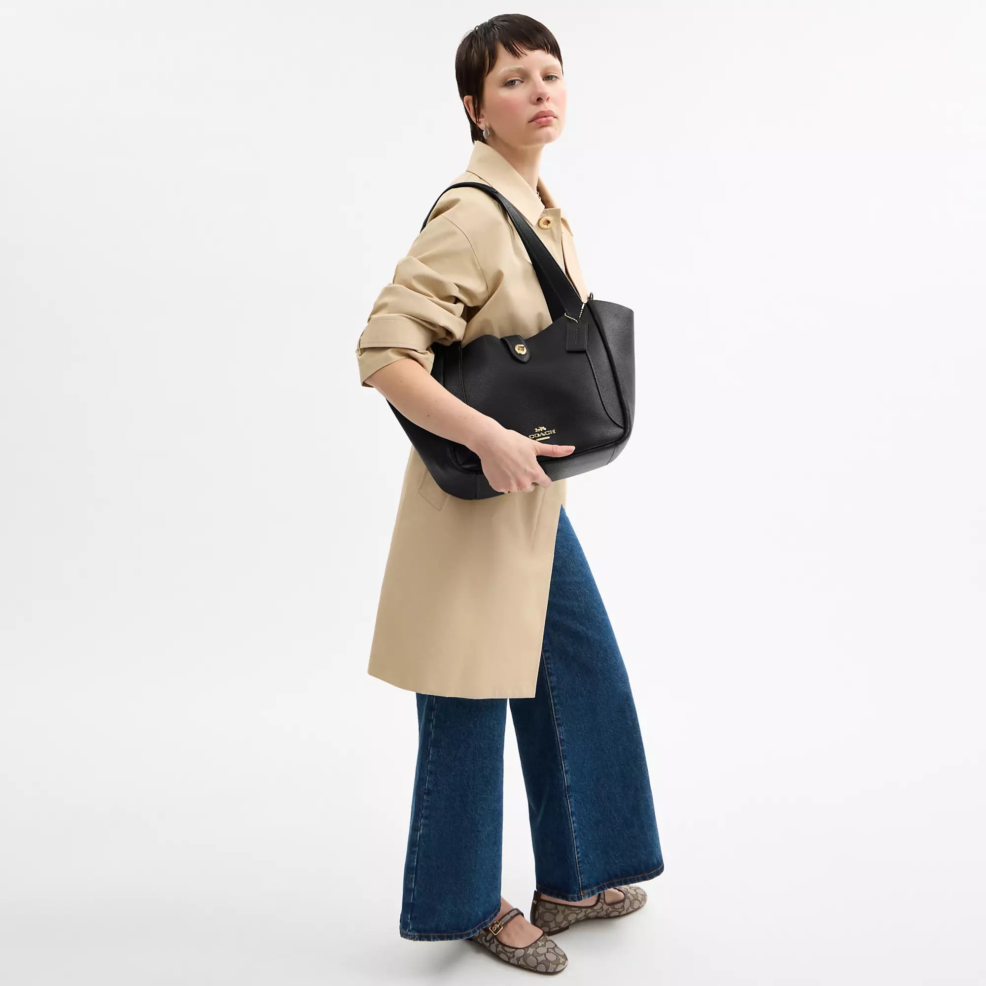 Double face leather Inside zip pocket Turnlock closure Handles with 11 1/2 drop 10 3/4 (L) x 9 1/2 (H) x 5 (W) Style No. CAL17 | Coach Outlet Hadley Turnlock Tote Bag - Black