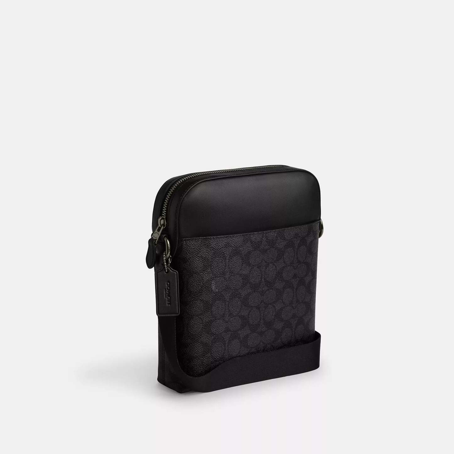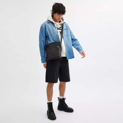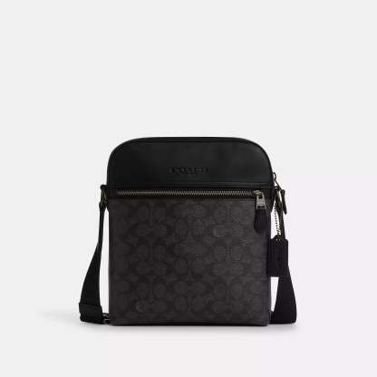 Signature coated canvas and smooth calf leather Inside multifunction pocket Zip closure fabric lining Outside zip and slip pockets Adjustable strap with 25 drop for shoulder or crossbody wear 8 3/4 (L) x 10 1/4 (H) x 2 (W) Style No. CZ398 | Coach Outlet Houston Flight Bag In Signature Canvas - Multi