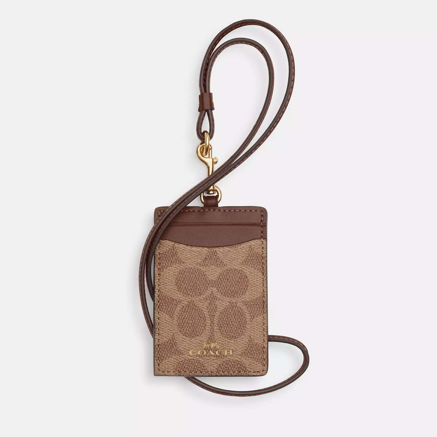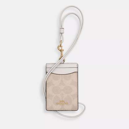 Signature coated canvas and smooth leather Two credit card slots ID window Detachable lanyard 2 3/4 (L) x 4 (H) Style No. CZ285 | Coach Outlet Id Lanyard In Signaure Canvas - Beige