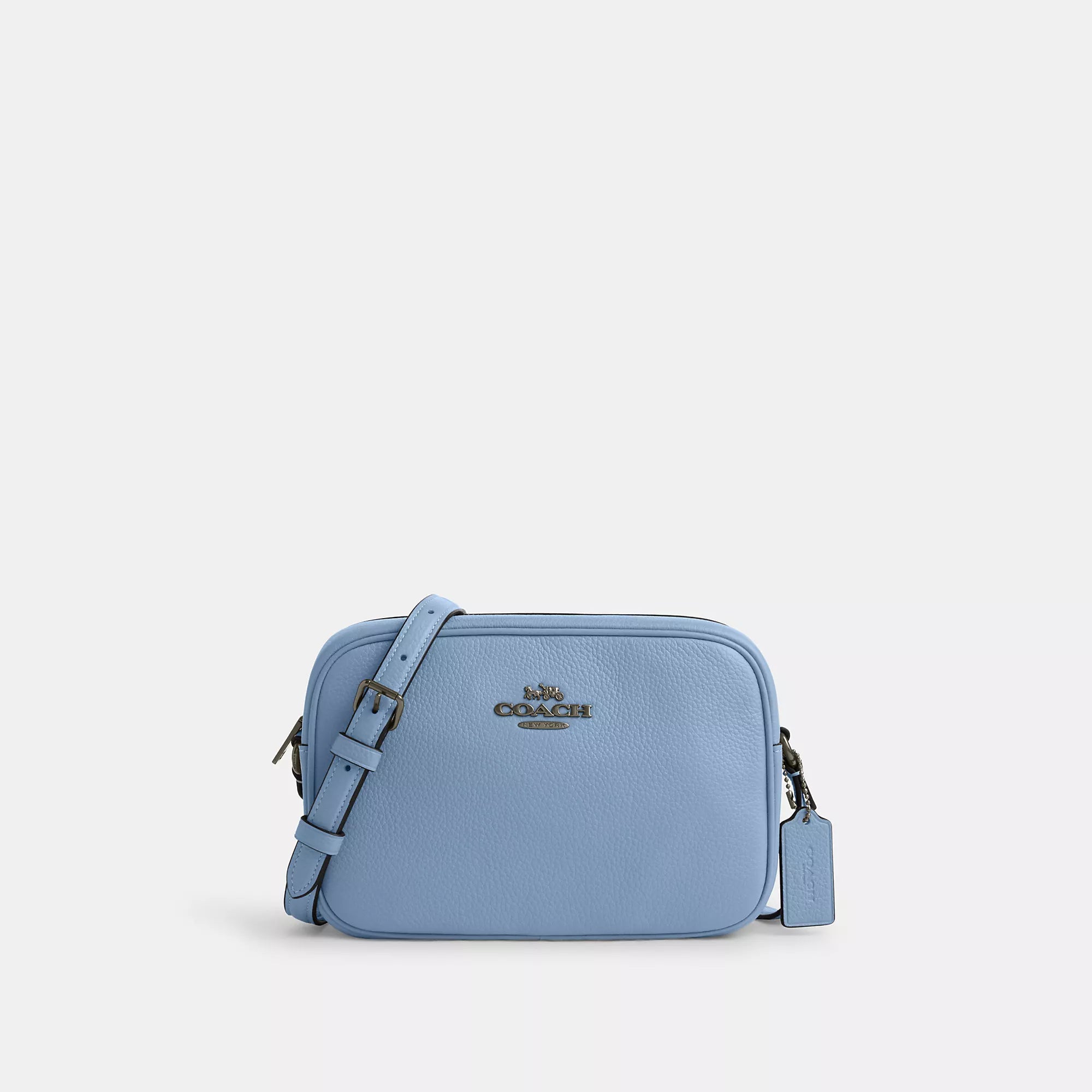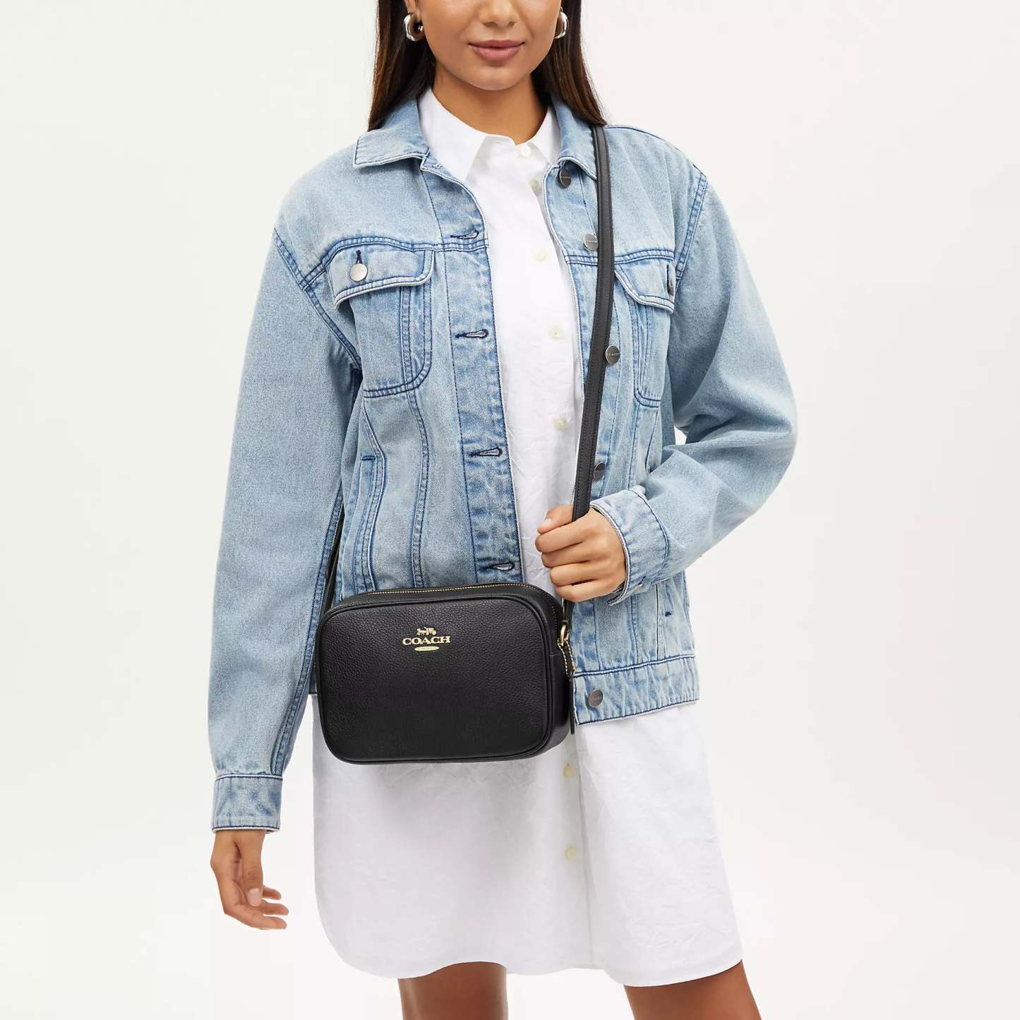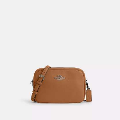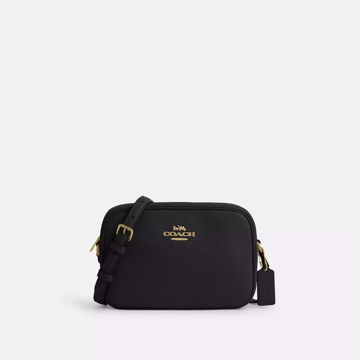 Refined pebble leather Inside snap pocket Zip closure fabric lining Outside open pocket Adjustable strap with 22 3/4 drop for shoulder or crossbody wear 8 3/4 (L) x 6 (H) x 3 (W) Style No. CR110 | Coach Outlet Jamie Camera Bag - Black