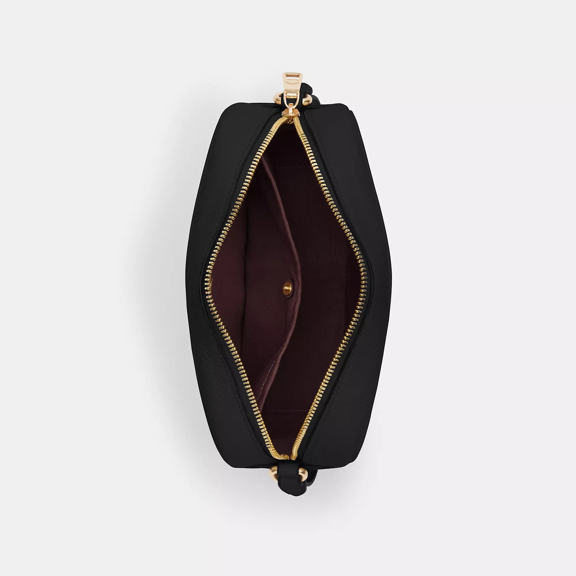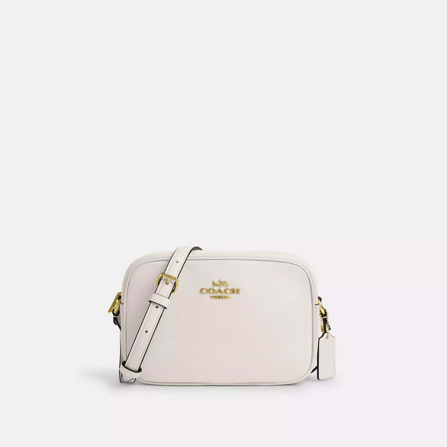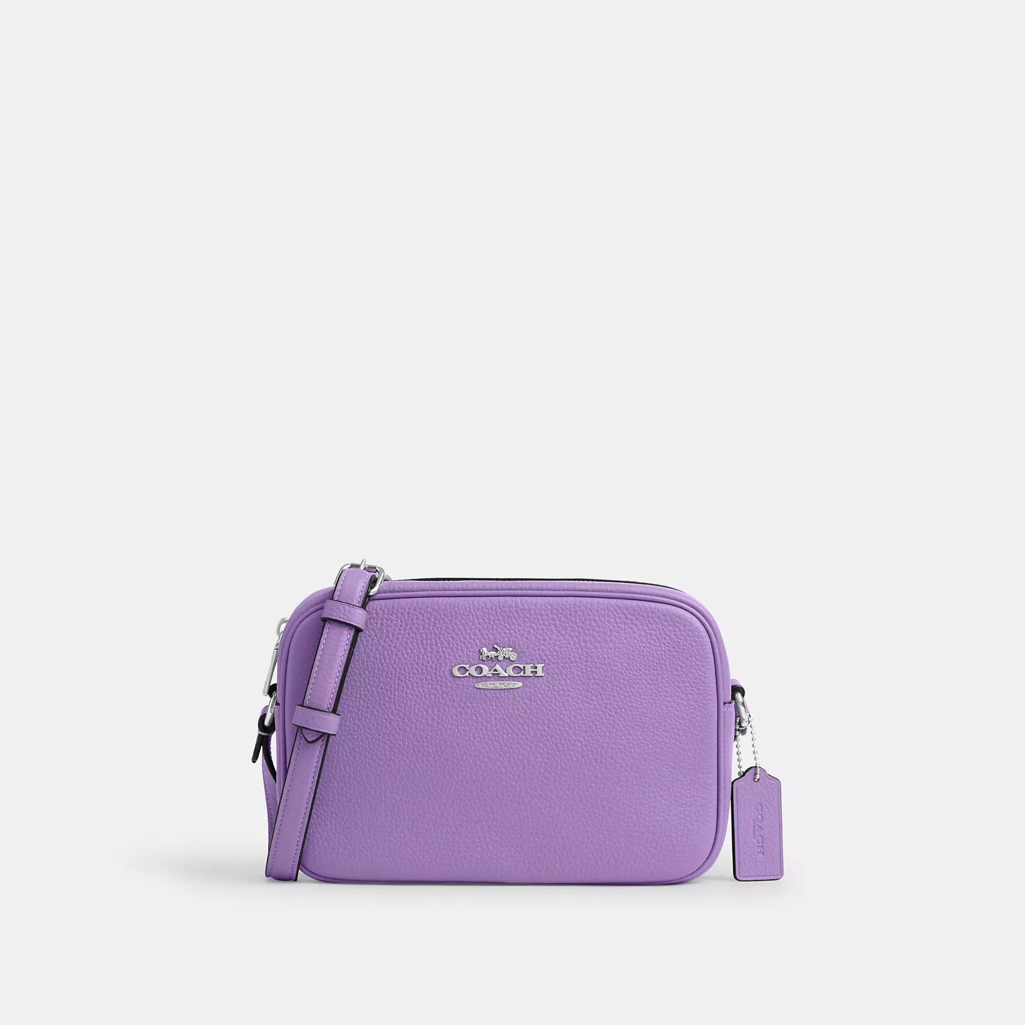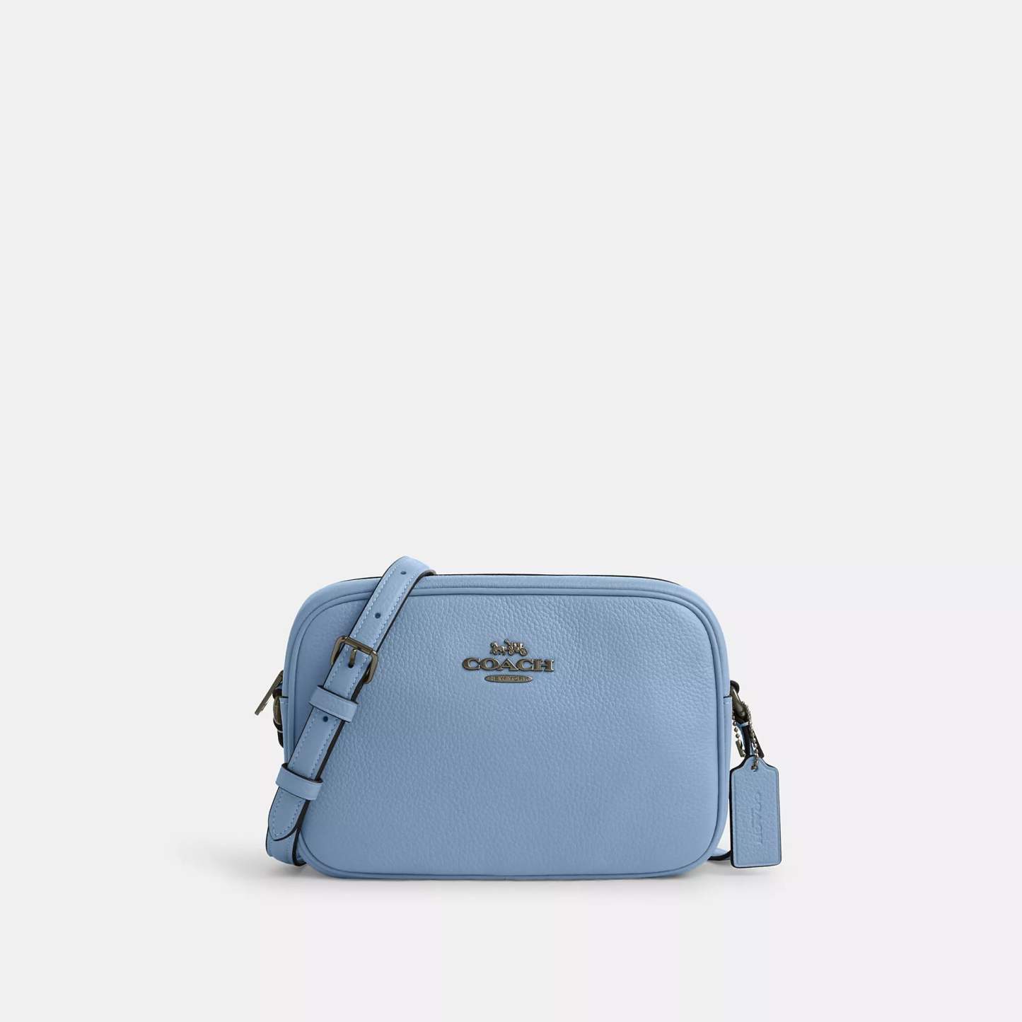 Refined pebble leather Inside snap pocket Zip closure fabric lining Outside open pocket Adjustable strap with 22 3/4 drop for shoulder or crossbody wear 8 3/4 (L) x 6 (H) x 3 (W) Style No. CR110 | Coach Outlet Jamie Camera Bag - Black