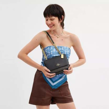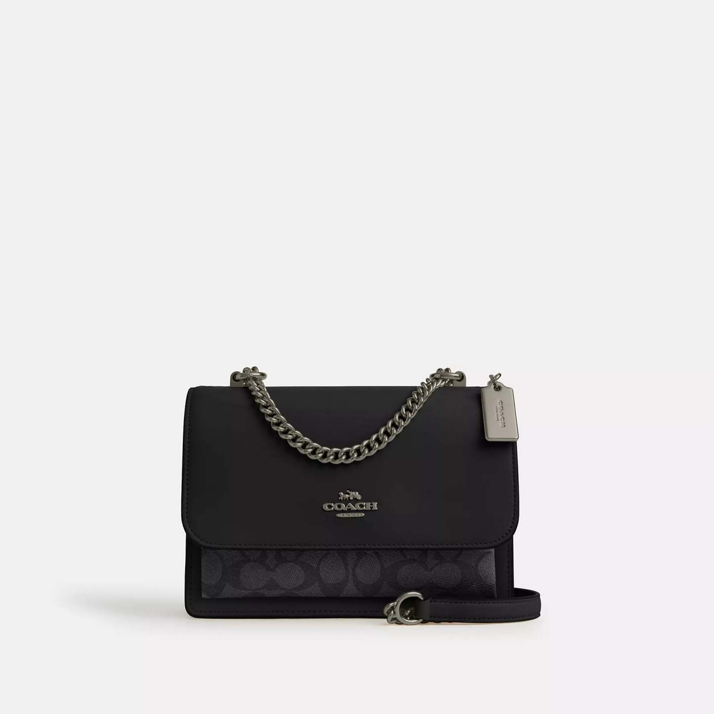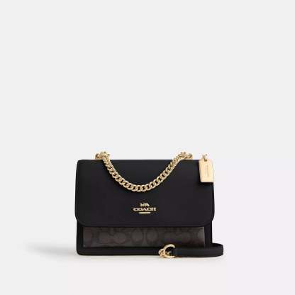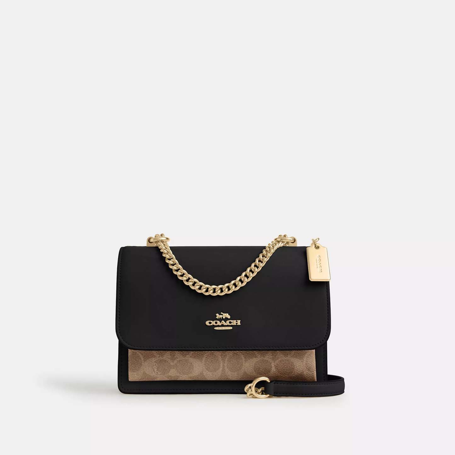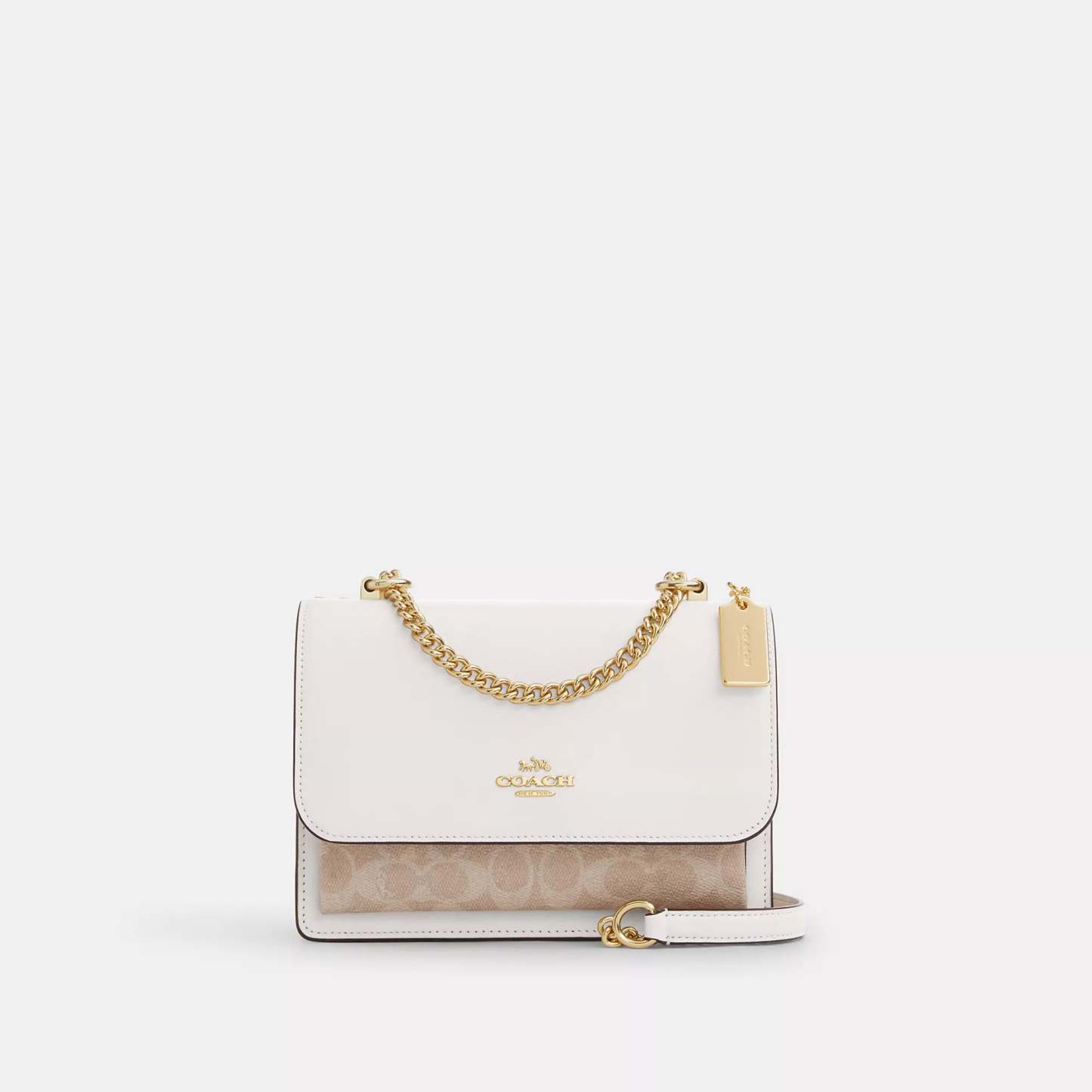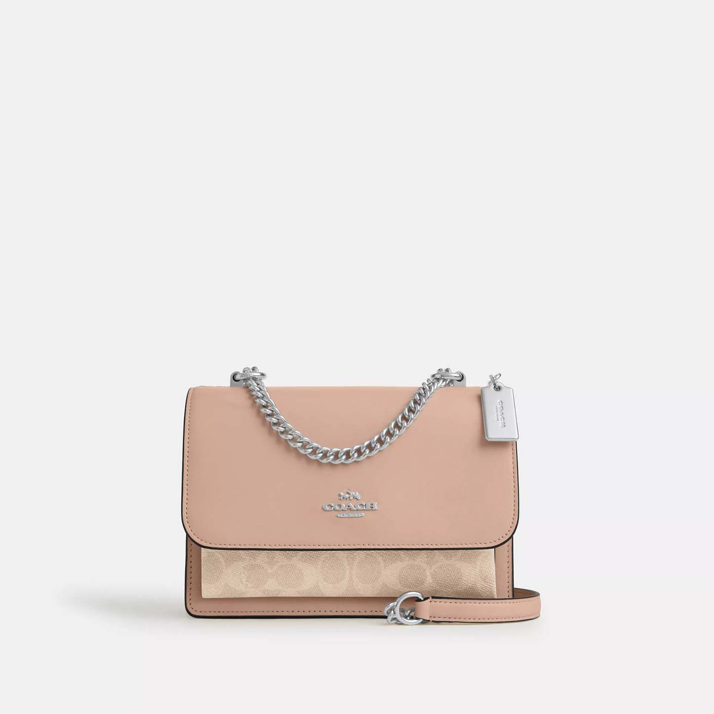 Signature coated canvas and smooth leather Inside zip and multifunction pockets Snap closure fabric lining Outside slip pocket Strap with 22 drop doubles up for three ways to wear - short or long on the shoulder or crossbody style 8 1/2 (L) x 6 1/4 (H) x 2 3/4 (W) Style No. CV978 | Coach Outlet Klare Crossbody Bag In Signature Canvas - Brown, Size - Medium