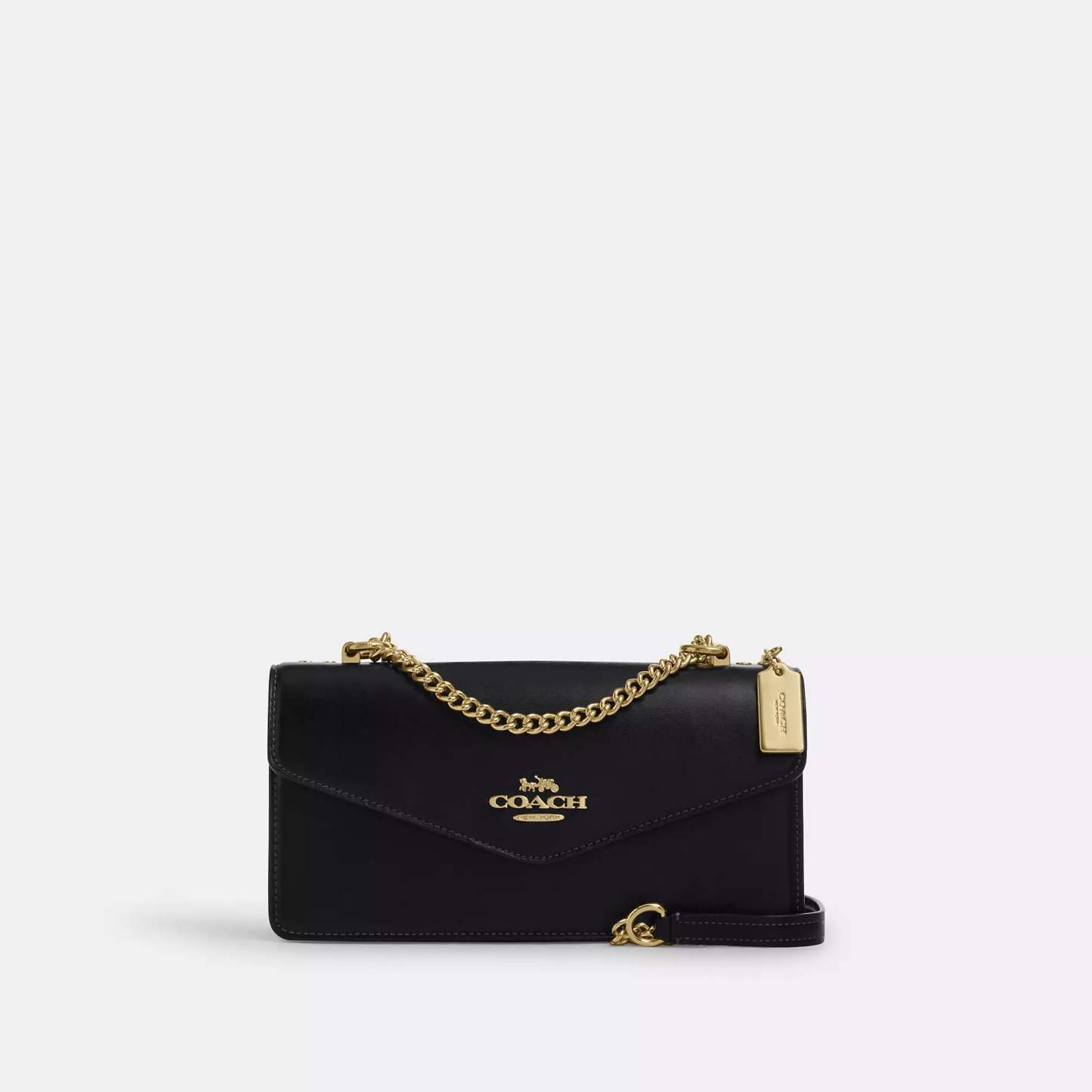 Shiny refined calf leather Inside zip and multifunction pockets Snap closure fabric lining Outside slip pocket Strap with 21 1/4 drop doubles up for three ways to wear - short or long on the shoulder or crossbody style 10 1/4 (L) x 5 1/4 (H) x 3 (W) Style No. CBI98 | Coach Outlet Klare Envelope Crossbody Bag - White