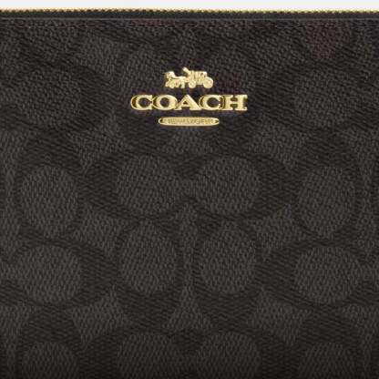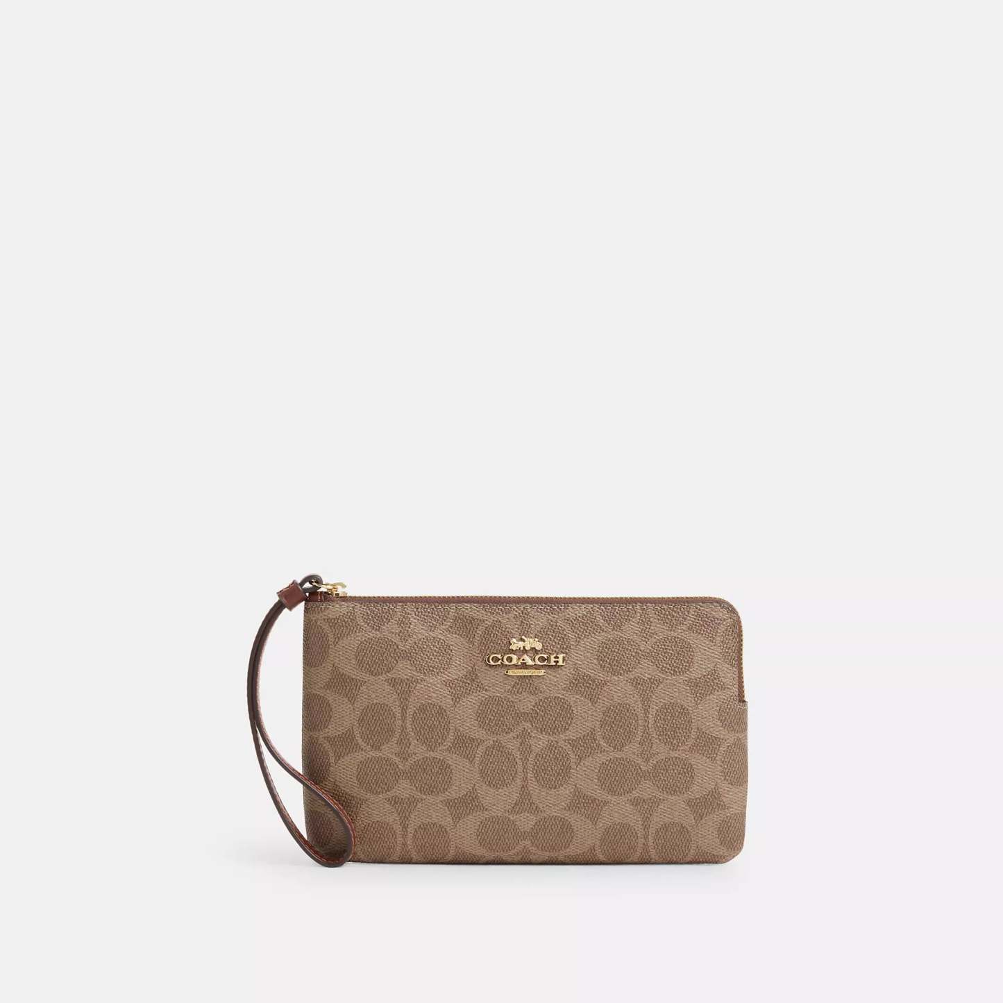 Signature coated canvas Two credit card slots Zip closure fabric lining Wrist strap attached 7 3/4 (L) x 4 3/4 (H) x 1/2 (W) Style No. CZ277 | Coach Outlet Large Corner Zip Wristlet In Signature Canvas - Beige