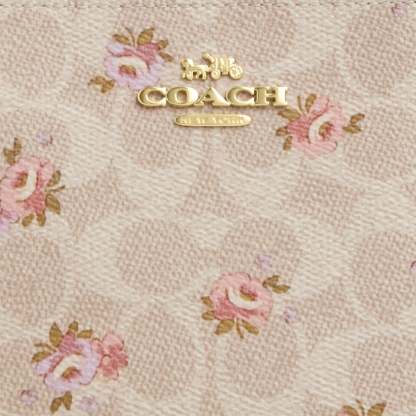 Signature coated canvas Two credit card slots Zip closure fabric lining Wrist strap attached 7 3/4 (L) x 4 3/4 (H) x 1/2 (W) Style No. CBA72 | Coach Outlet Large Corner Zip Wristlet In Signature Canvas - Beige