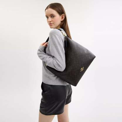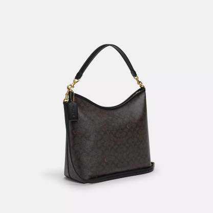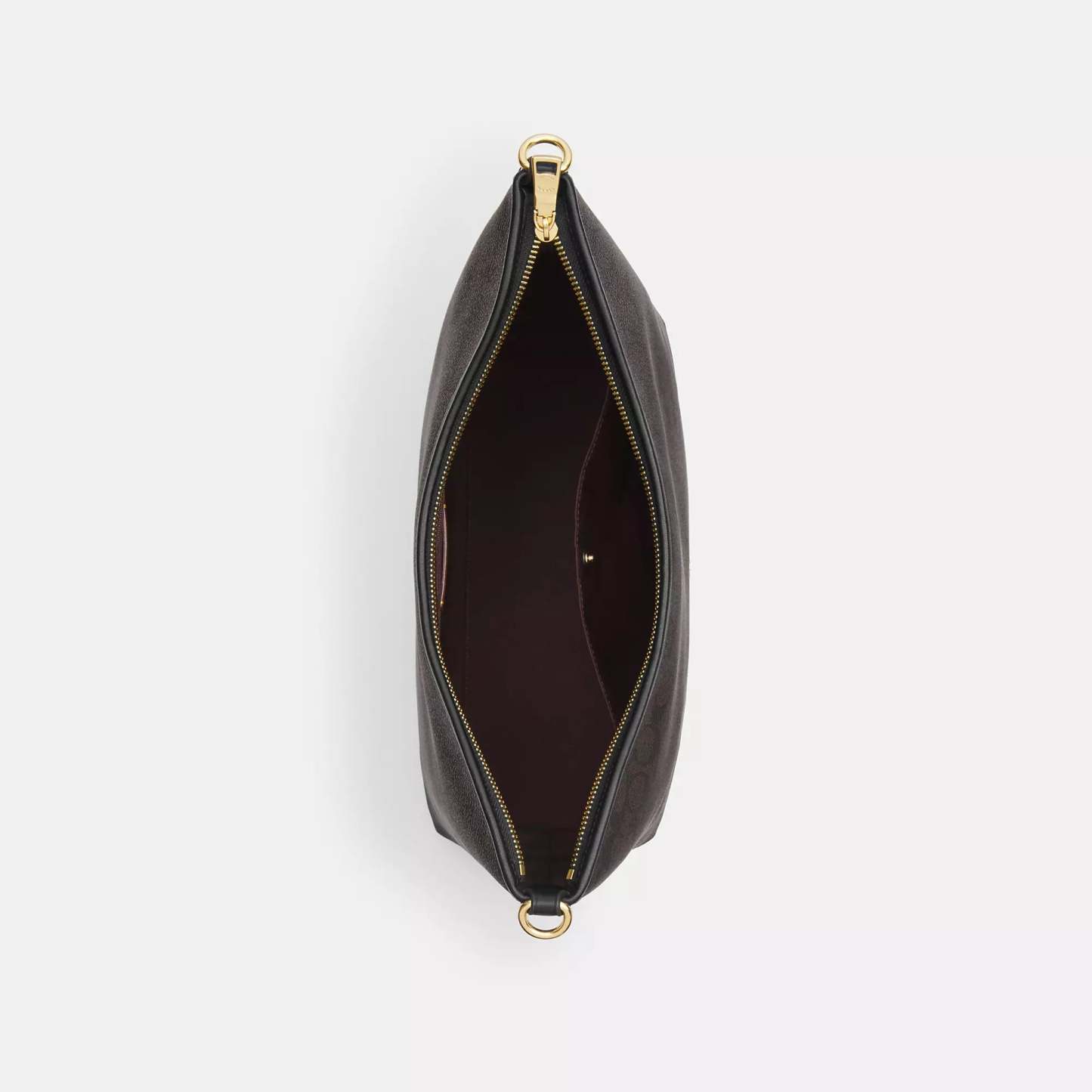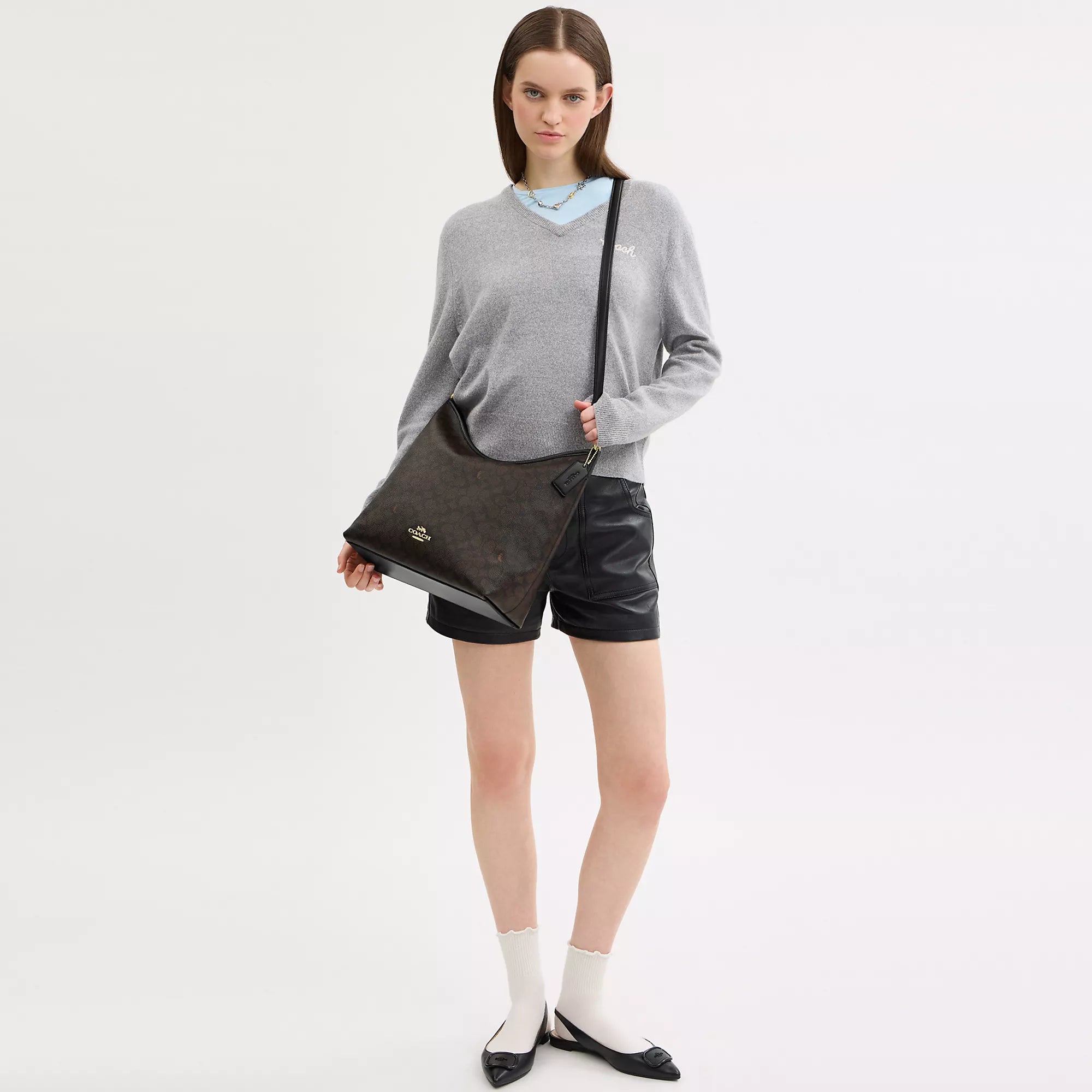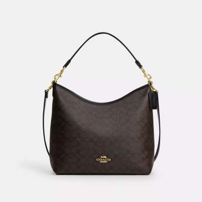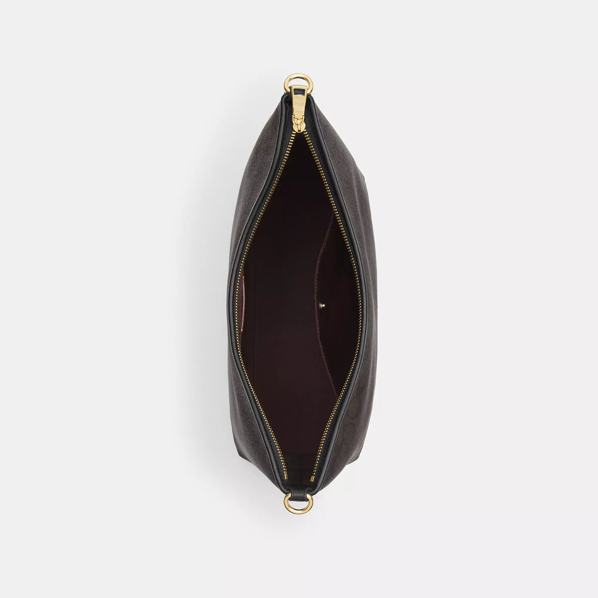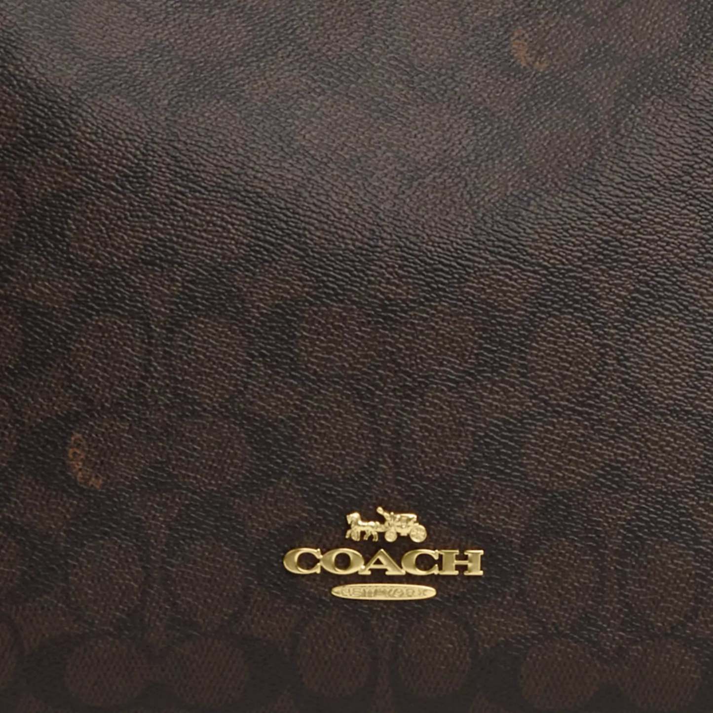 Signature coated canvas Inside zip and snap pockets Zip-top closure fabric lining Detachable handle with 8 1/2 drop Detachable strap with 21 3/4 drop for shoulder or crossbody wear 14 1/4 (L) x 12 (H) x 5 (W) Style No. CY685 | Coach Outlet Laurel Large Shoulder Bag In Signature Canvas - Brown