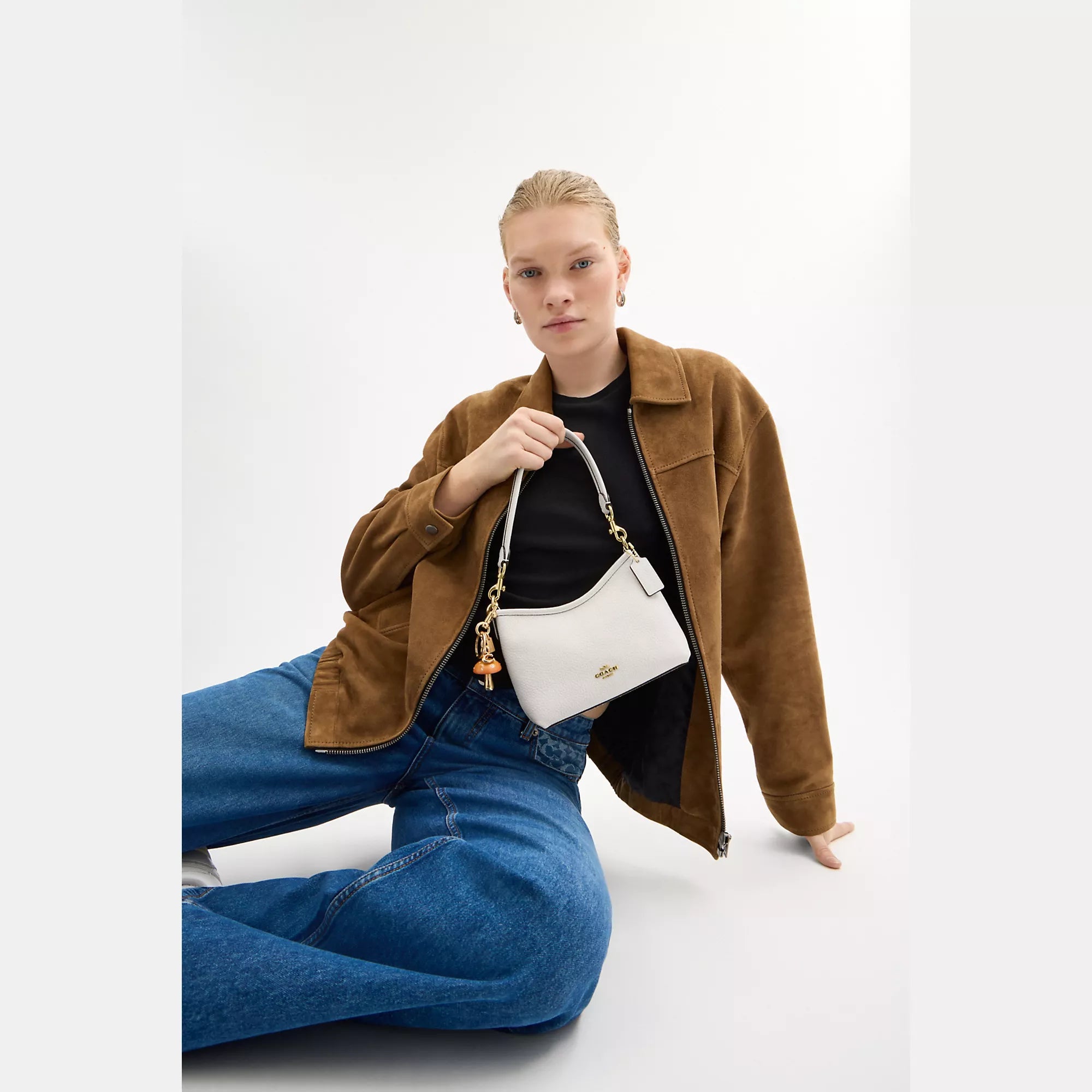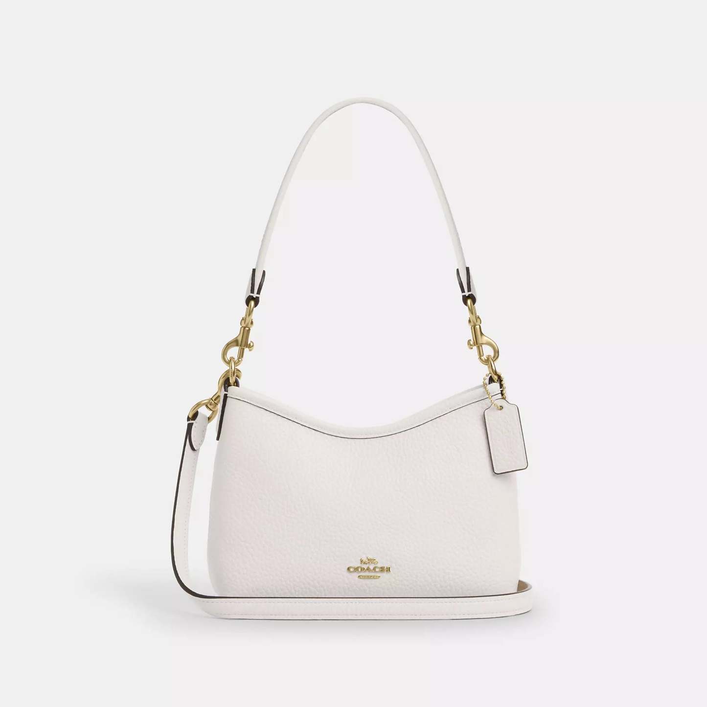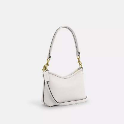 Soft pebble leather Inside zip pocket Zip closure fabric lining Detachable handle with 8 3/4 drop Detachable strap with 22 1/4 drop for shoulder or crossbody wear 7 1/2 (L) x 6 (H) x 3 1/4 (W) Style No. CBH16 | Coach Outlet Laurel Small Shoulder Bag - White
