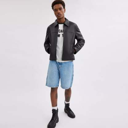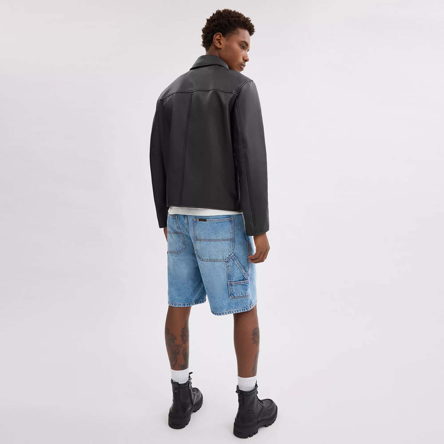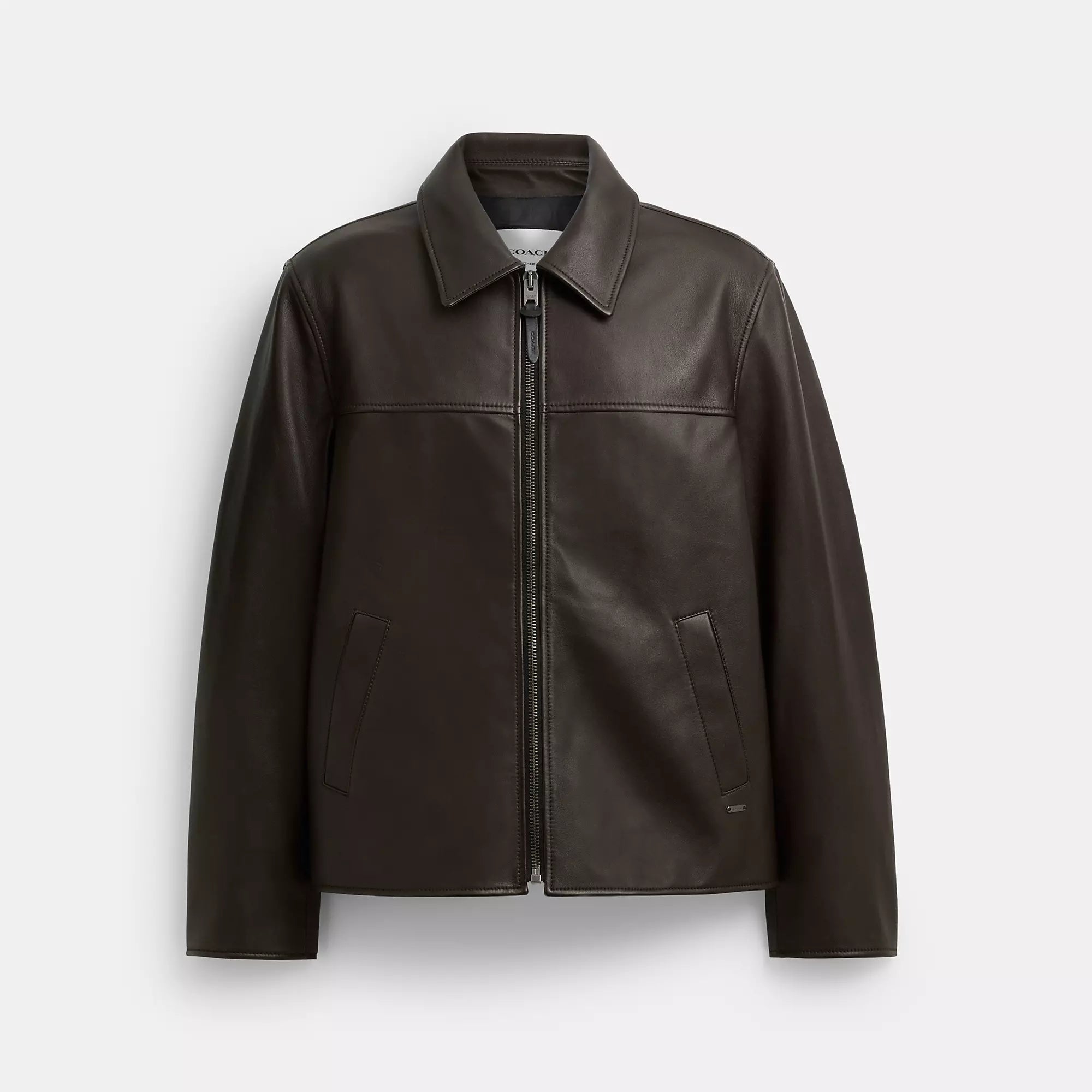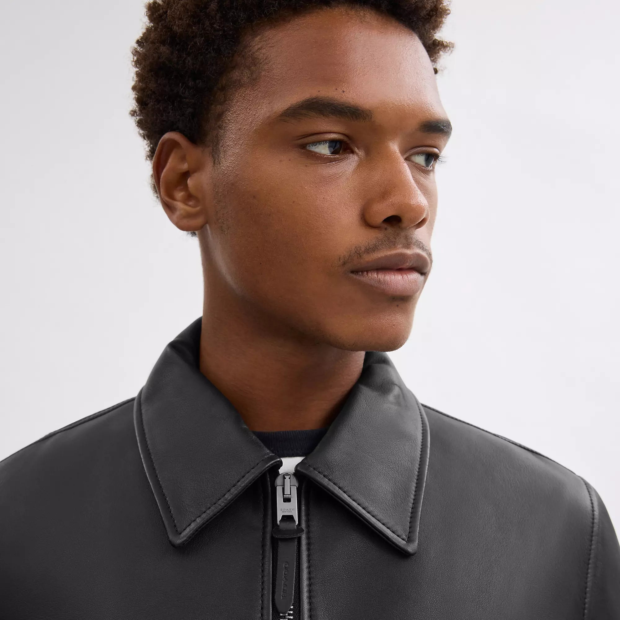 100% sheep leather Body lining - 58% recycled polyester 42% viscose Sleeve lining - 56% recycled polyester 46% viscose Leather details Zip closure Slip pockets Length - 26 Clean by leather specialist Model is 6'2 (188cm) chest 37 (94cm) waist 28 (71cm) hips 28 (71cm) and wears a size M Style No. CT723 | Coach Outlet Leather Jacket - Black, Size - Medium