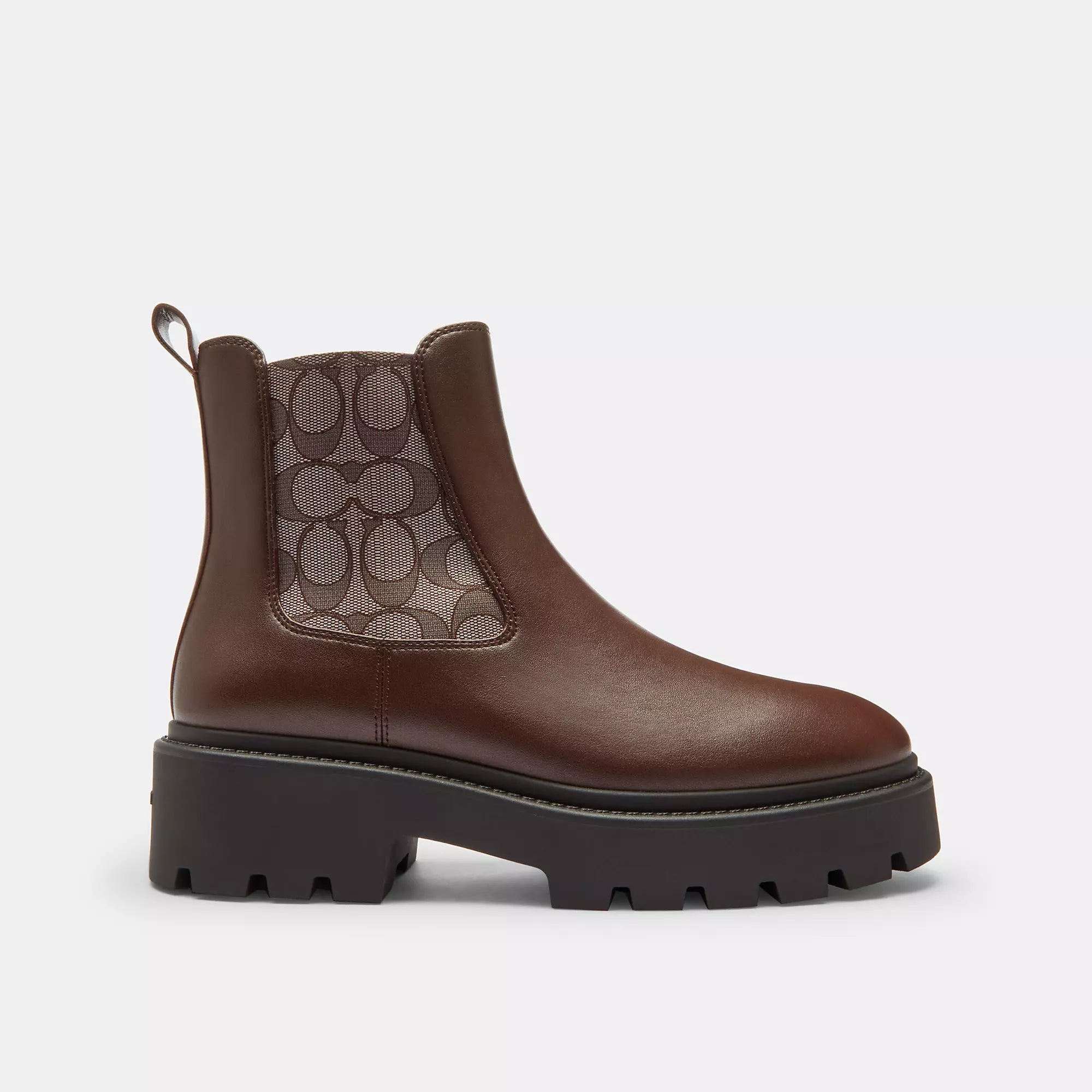 Leather and Signature polyester upper Man-made leather lining and footbed Rubber outsole Pull on 2 heel Style No. CCH14 | Coach Outlet Lucy Chelsea Boot With Signature Polyester - Brown, Size - 8.5