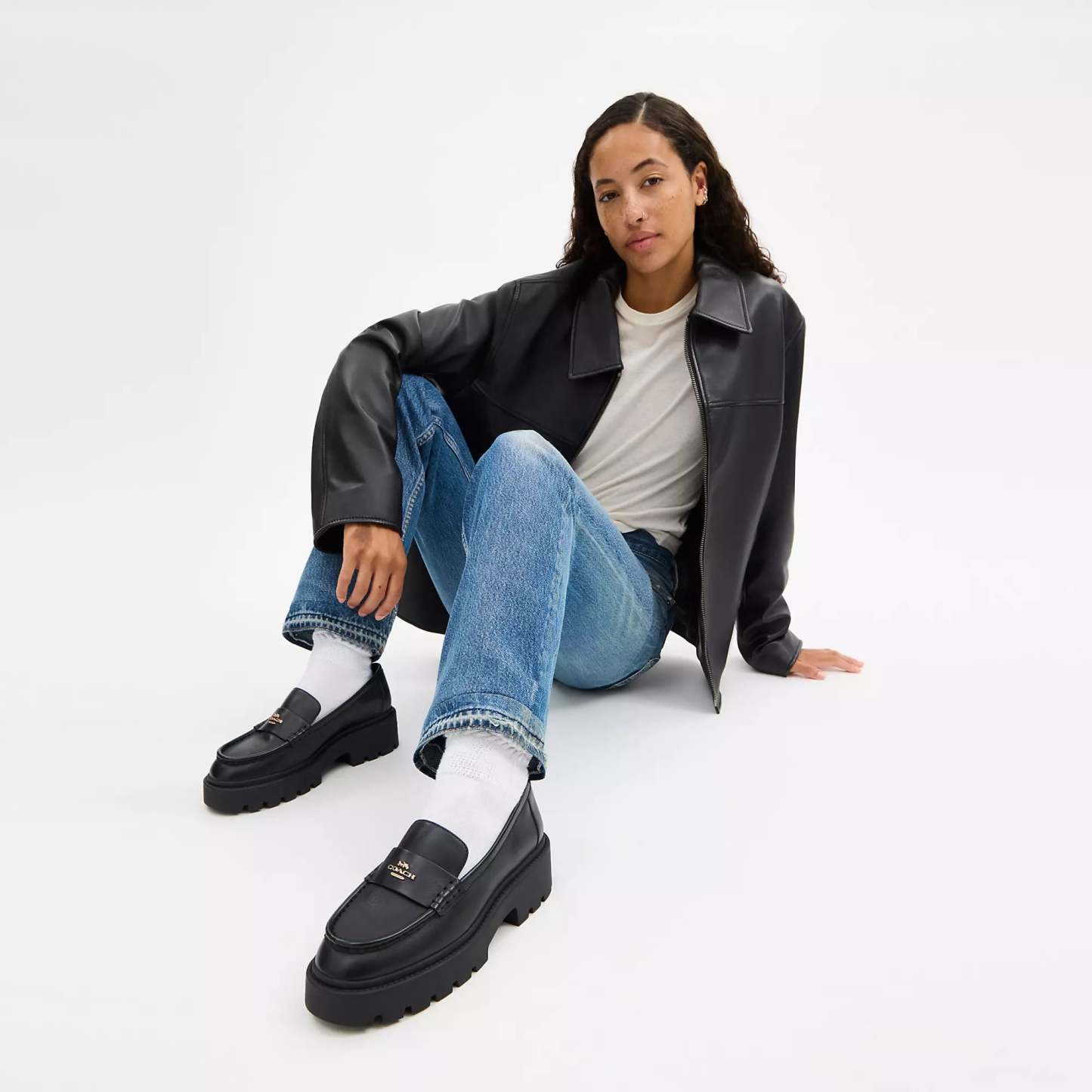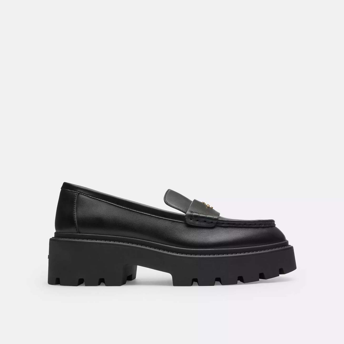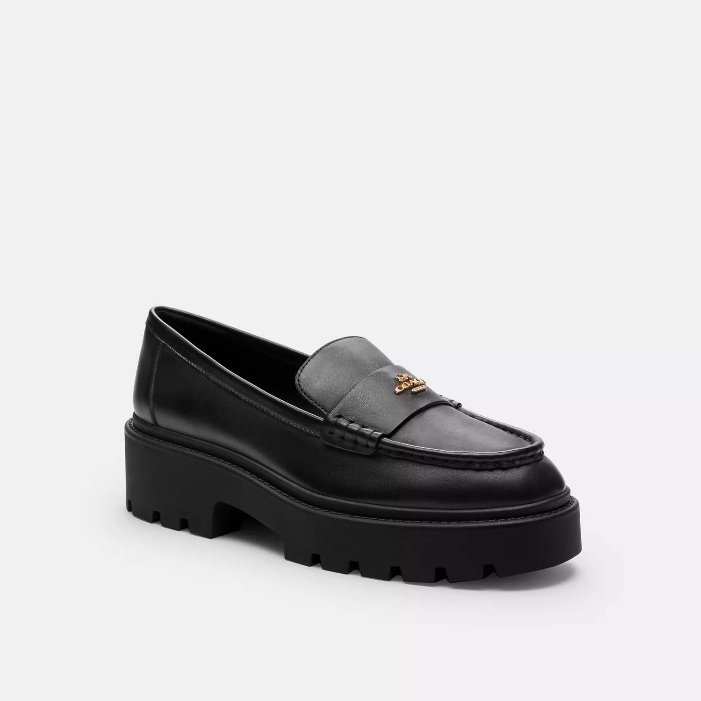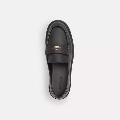 Leather and man-made leather upper Man-made leather lining and footbed Rubber outsole Slip on 2 heel Style No. CCH95 | Coach Outlet Lucy Loafer - Black, Size - 9