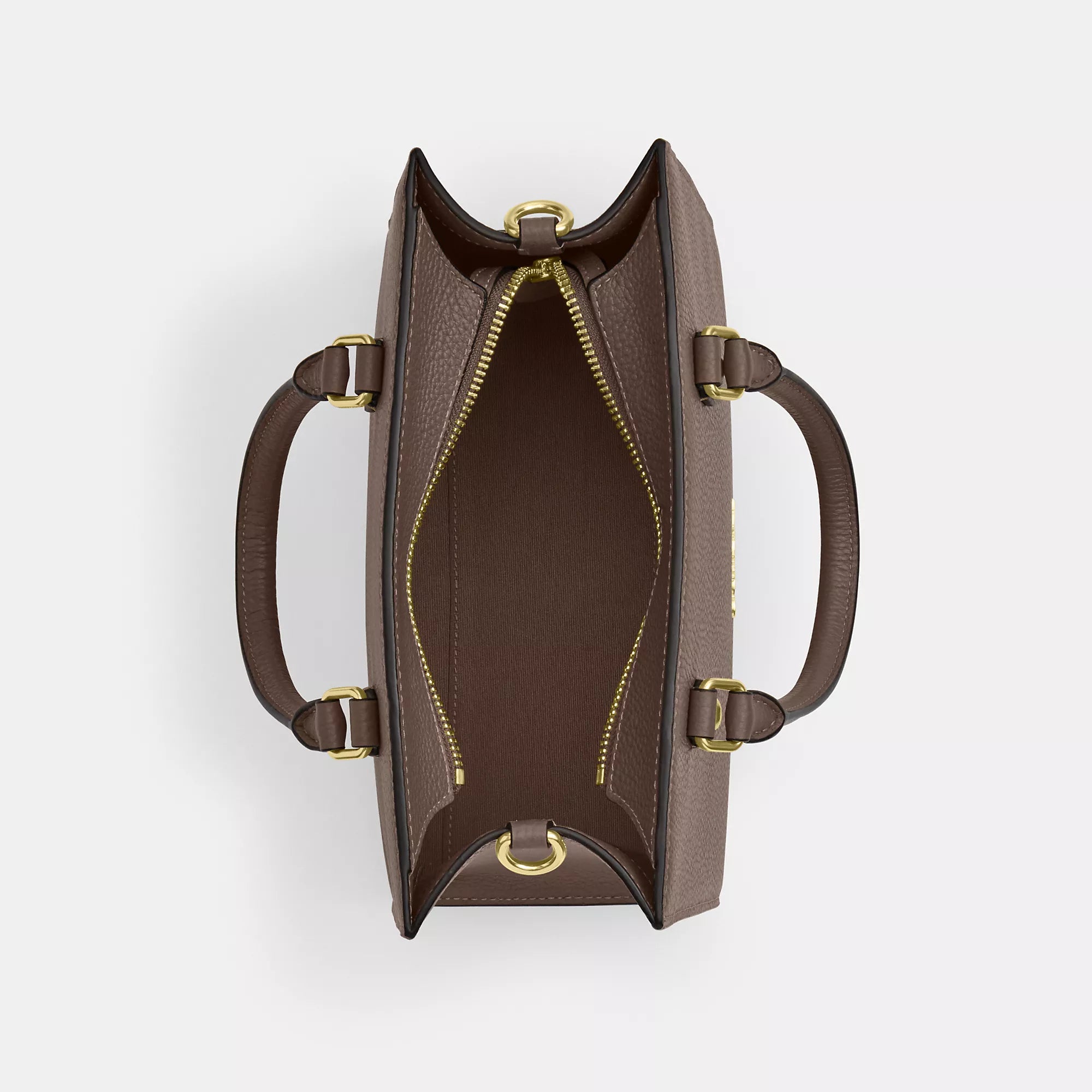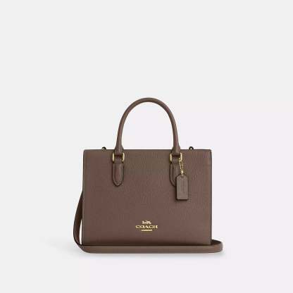 Refined pebble leather Inside zip and multifunction pockets Zip-top closure fabric lining Handles with 3 3/4 drop Detachable strap with 22.5 drop for shoulder or crossbody wear Four protective feet at base 9 3/4 (L) x 7 1/2 (H) x 4 1/2 (W) Style No. CY668 | Coach Outlet Maggie Small Tote Bag - Brown