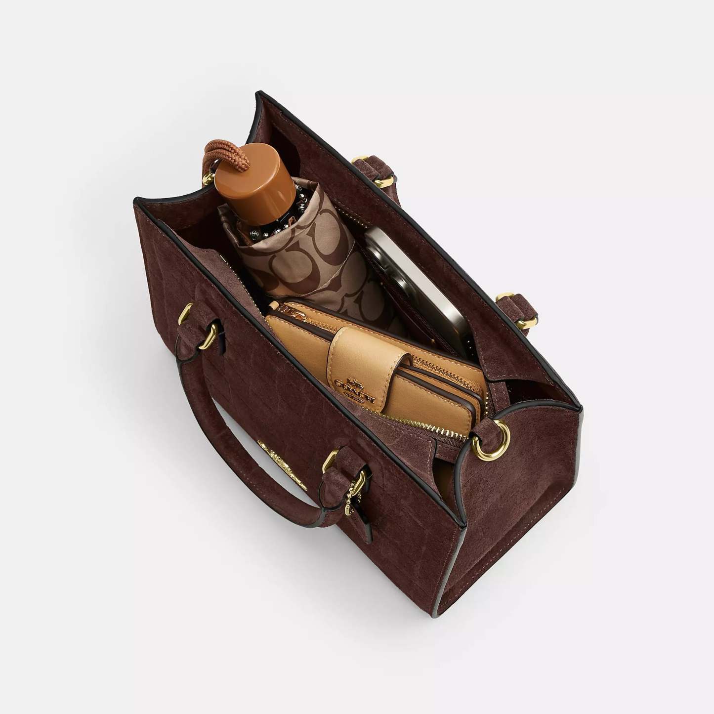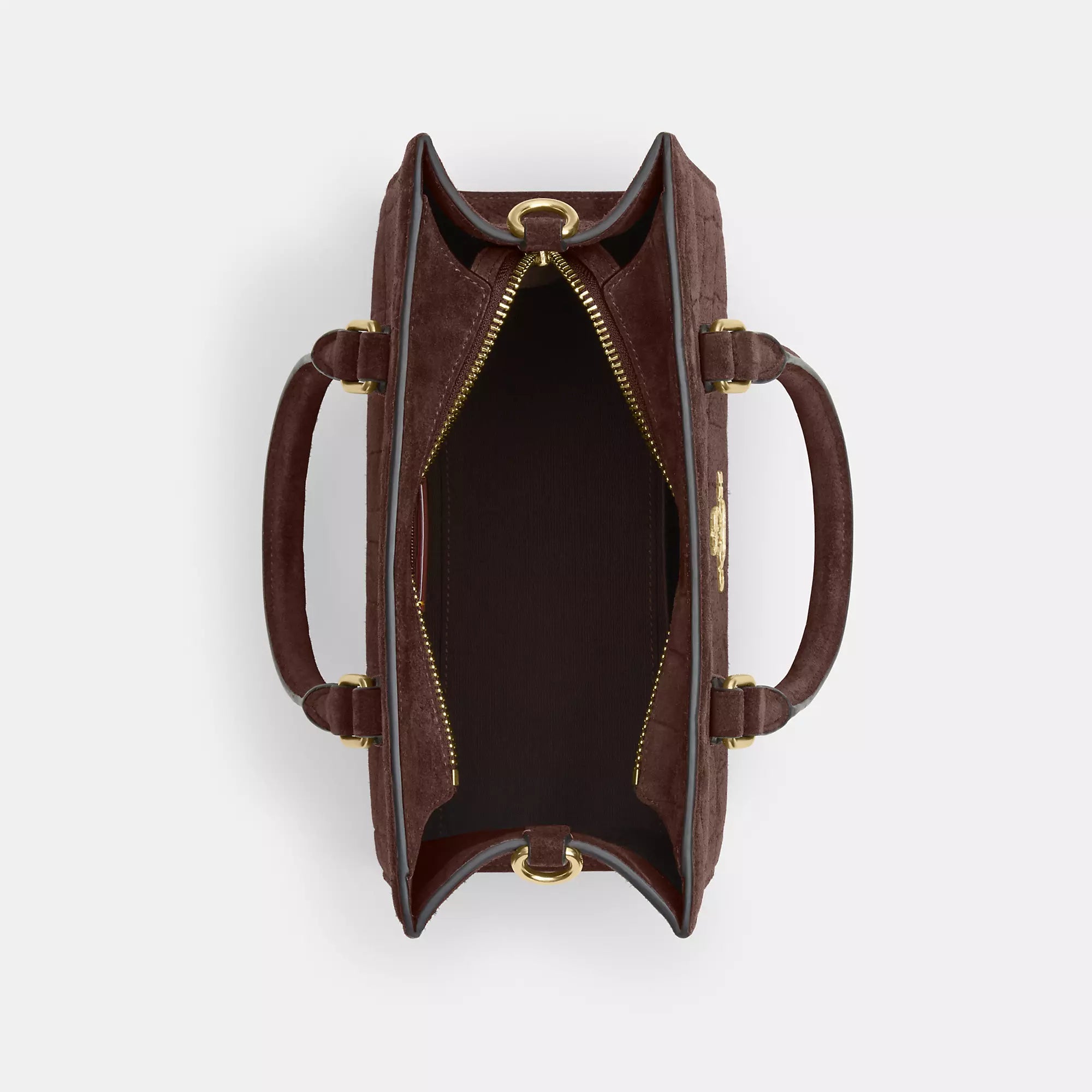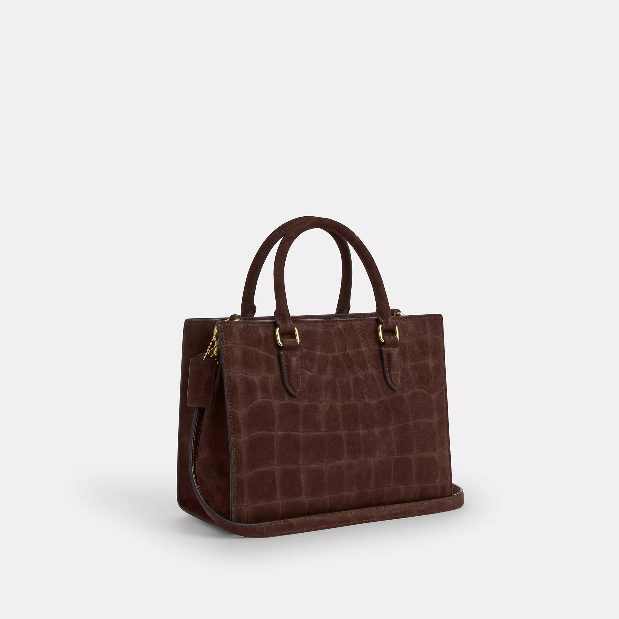 Crocodile-embossed suede and smooth leather Inside zip and multifunction pockets Zip-top closure fabric lining Handles with 3 3/4 drop Detachable strap with 22 1/2 drop for shoulder or crossbody wear Four protective feet at base 9 3/4 (L) x 7 1/2 (H) x 4 1/2 (W) Style No. CCC71 | Coach Outlet Maggie Small Tote Bag - Brown