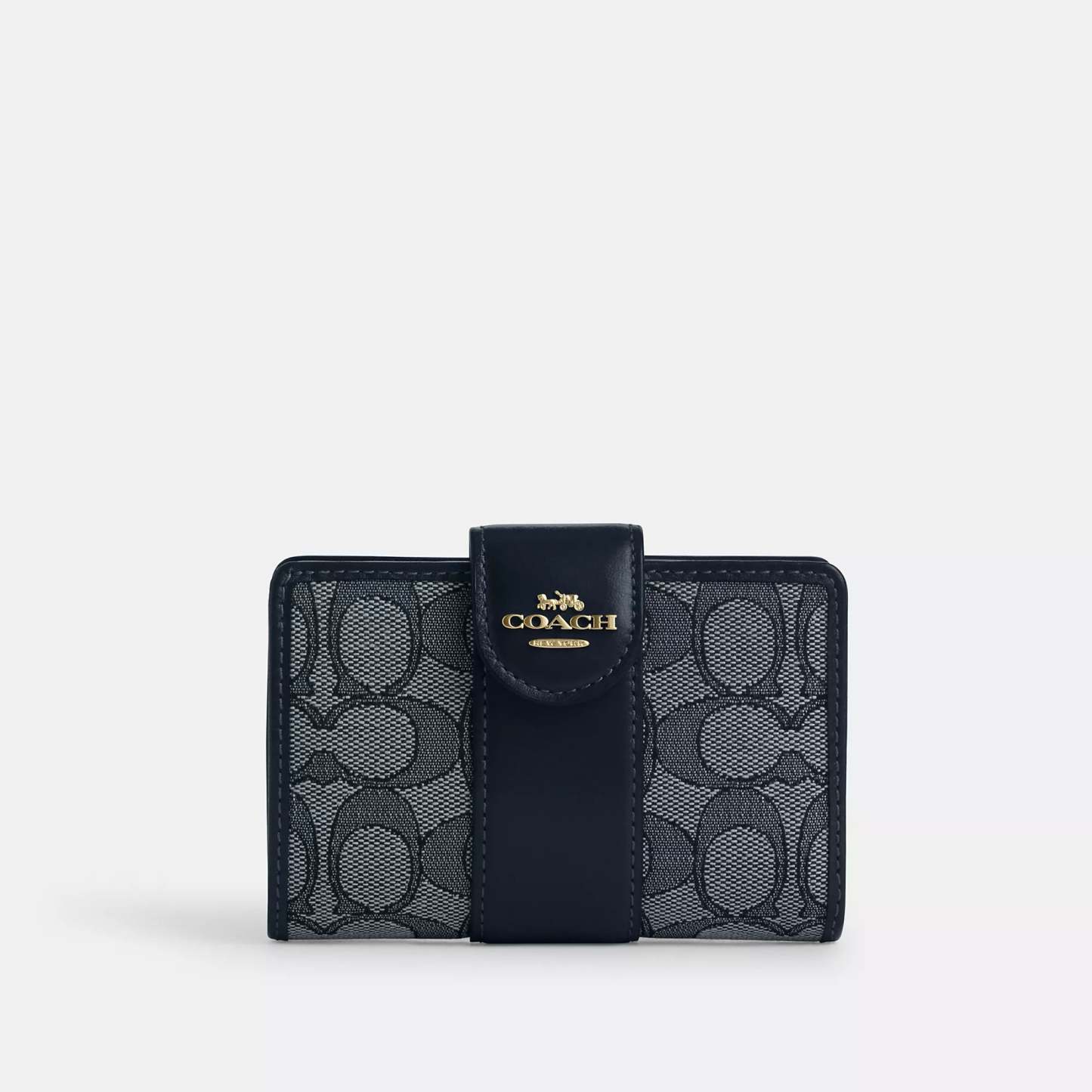 Signature jacquard and refined calf leather Seven credit card slots Bill compartment ID window Snap closure Zip coin pocket 5 (L) x 3 1/2 (H) x 1/2 (W) Exclusive of trim this Coach piece is crafted of our Signature jacquard made from a blend of organic cotton and recycled polyester Style No. CU987 | Coach Outlet Medium Corner Zip Wallet In Signature Jacquard - Blue