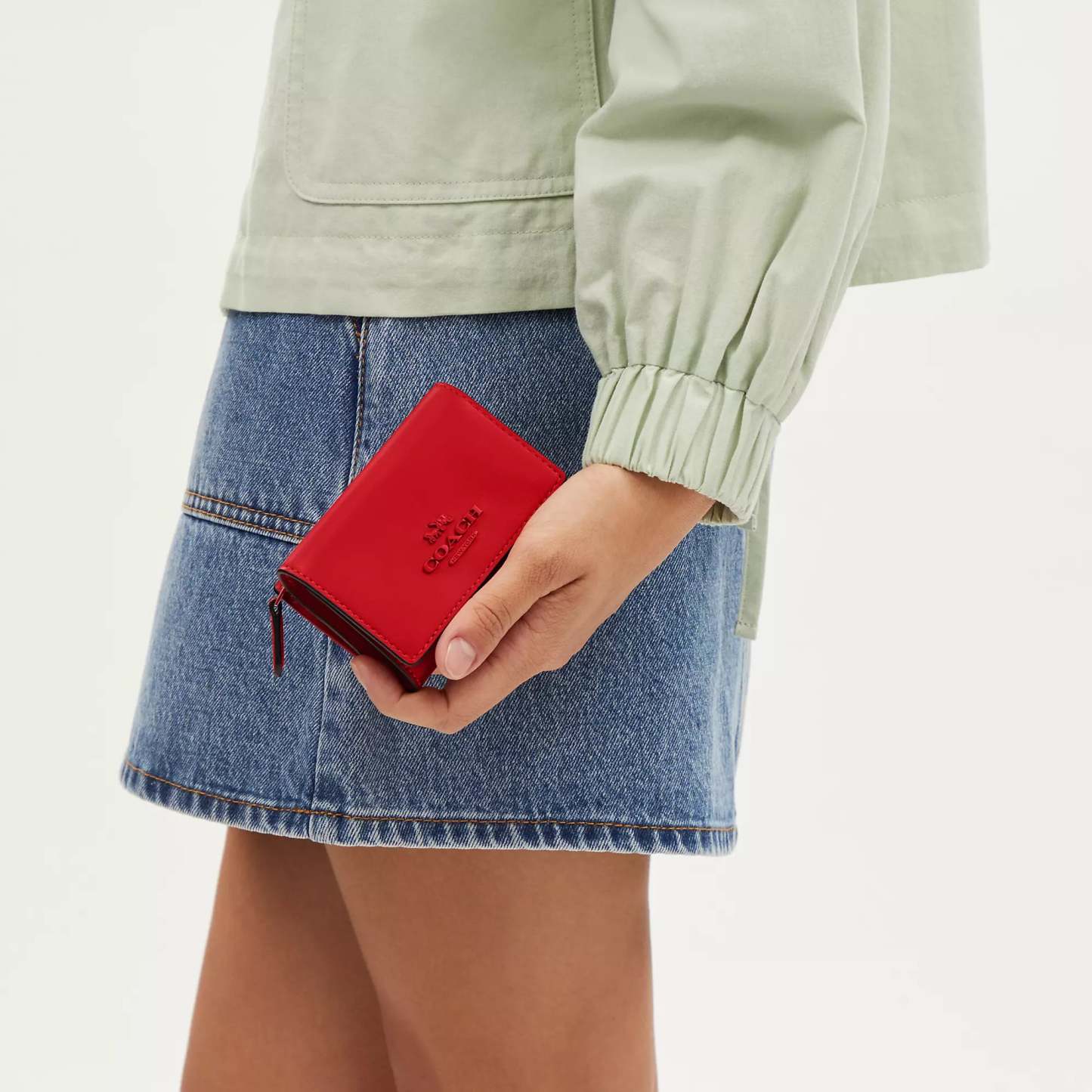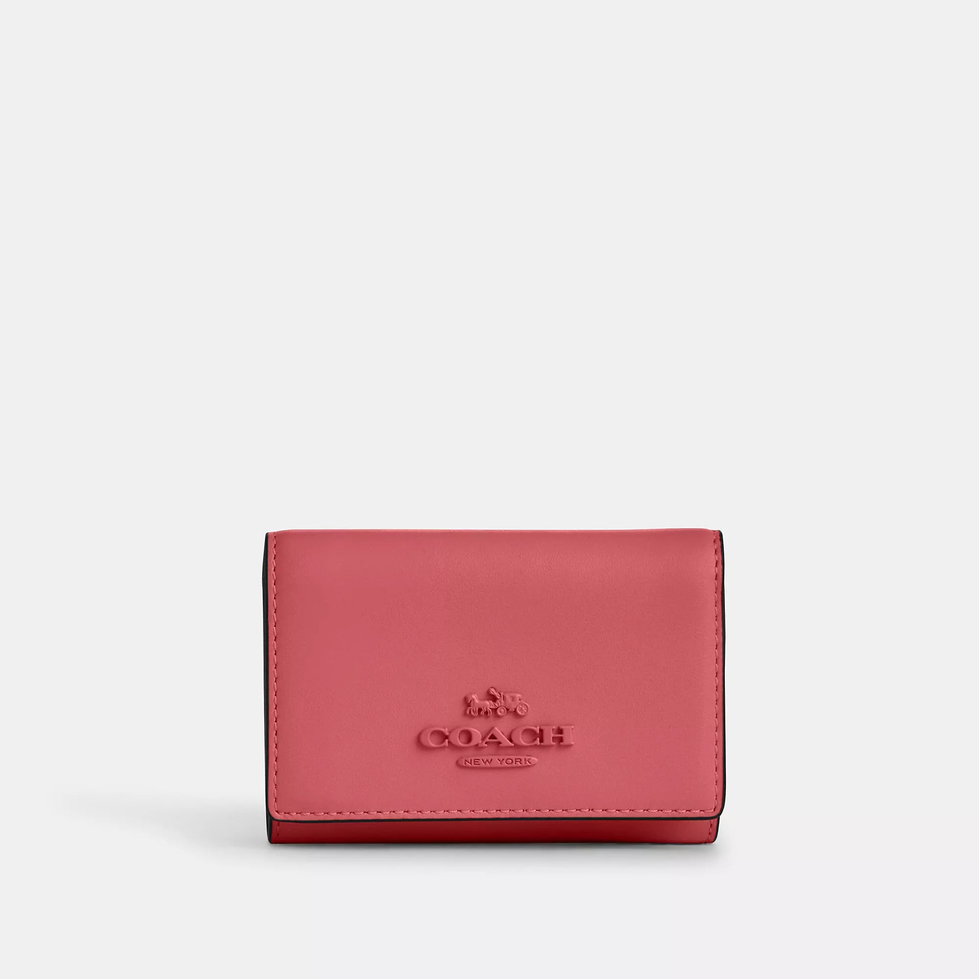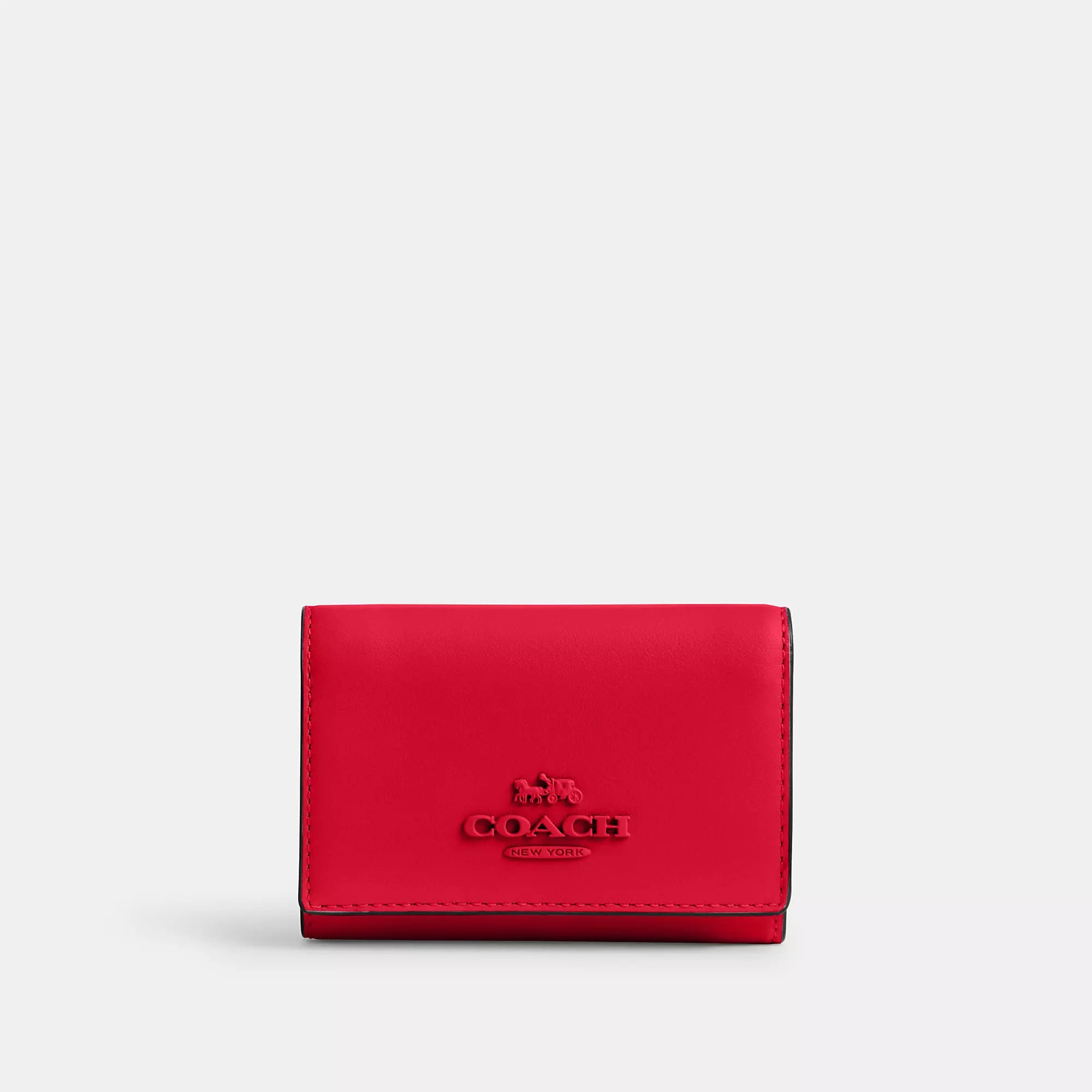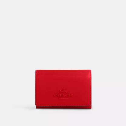 Refined calf leather Three credit card slots Full-length bill compartment Snap closure Zip coin pocket 4 (L) x 3 (H) x 1 1/4 (W) Style No. CP260 | Coach Outlet Micro Wallet - Red