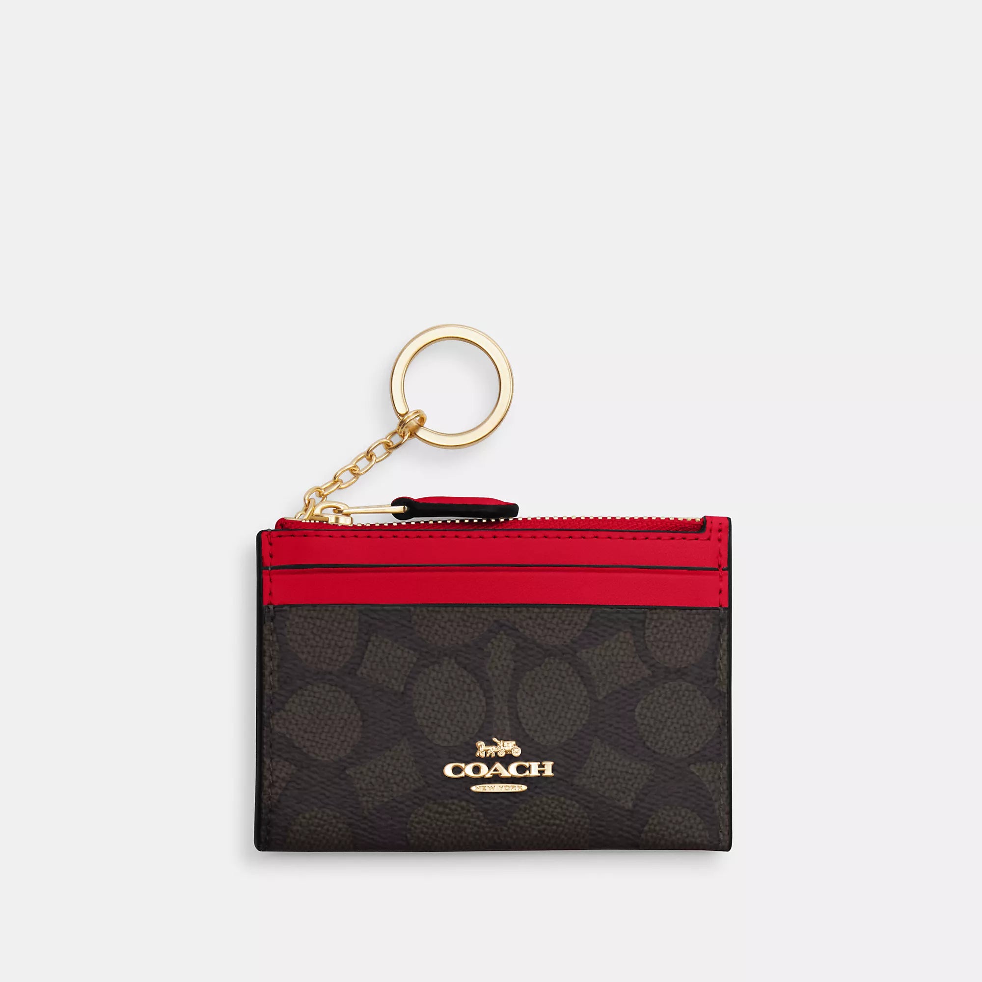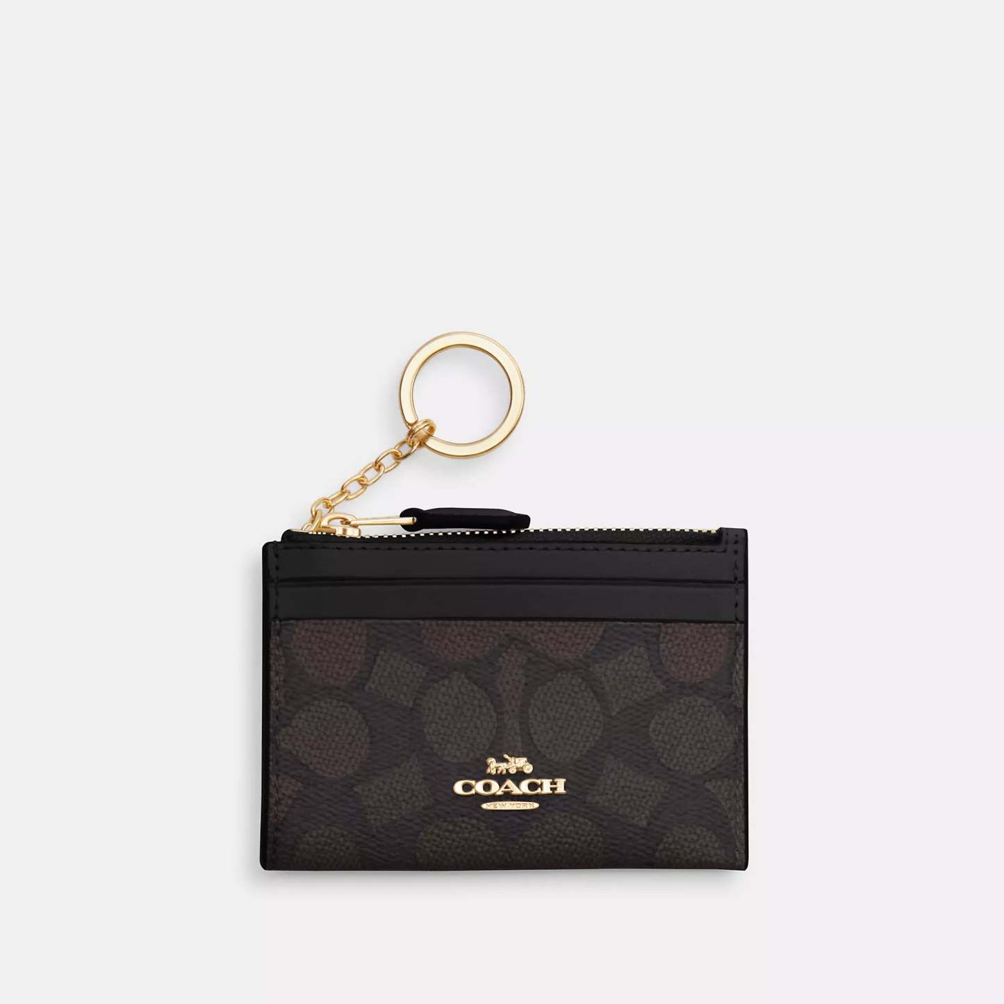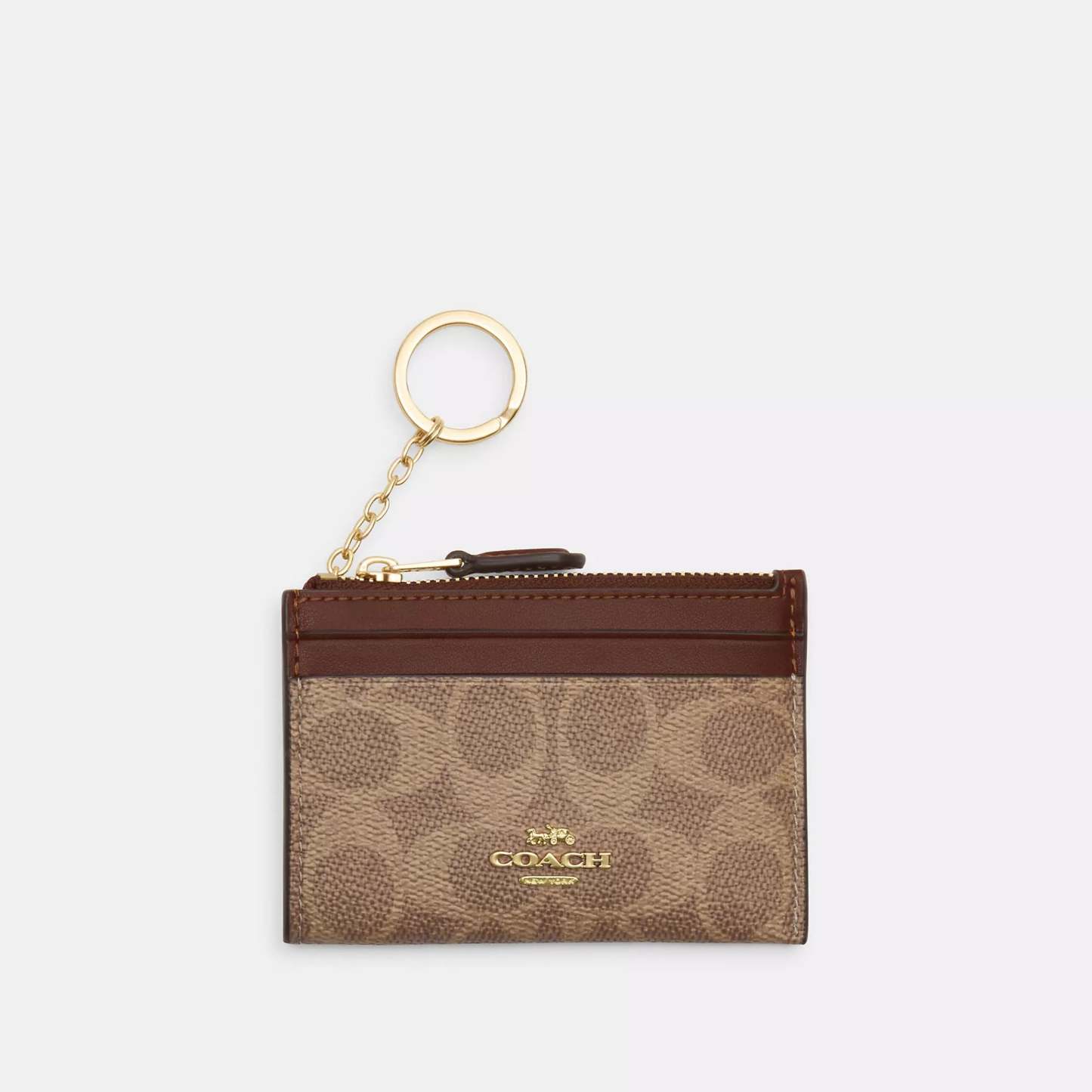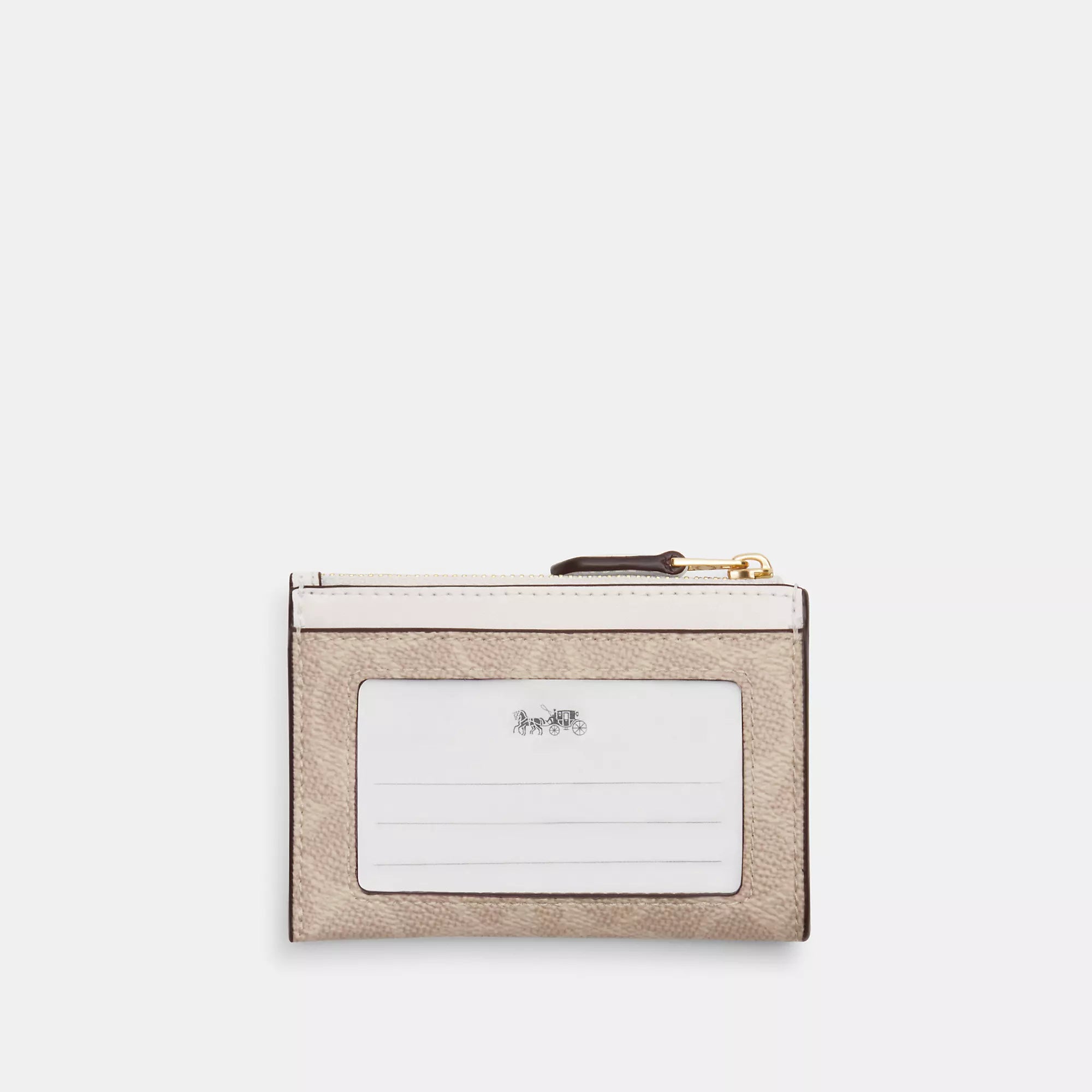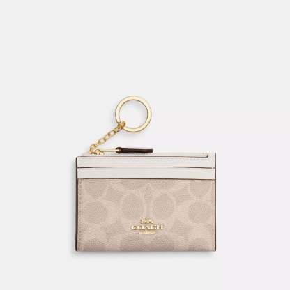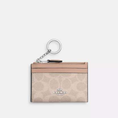 Signature coated canvas Two credit card slots ID window Zip-top closure fabric lining Attached split key ring 4 1/4 (L) x 3 (H) x 1/2 (W) Style No. CW870 | Coach Outlet Mini Skinny Id Case In Signature Canvas - Beige