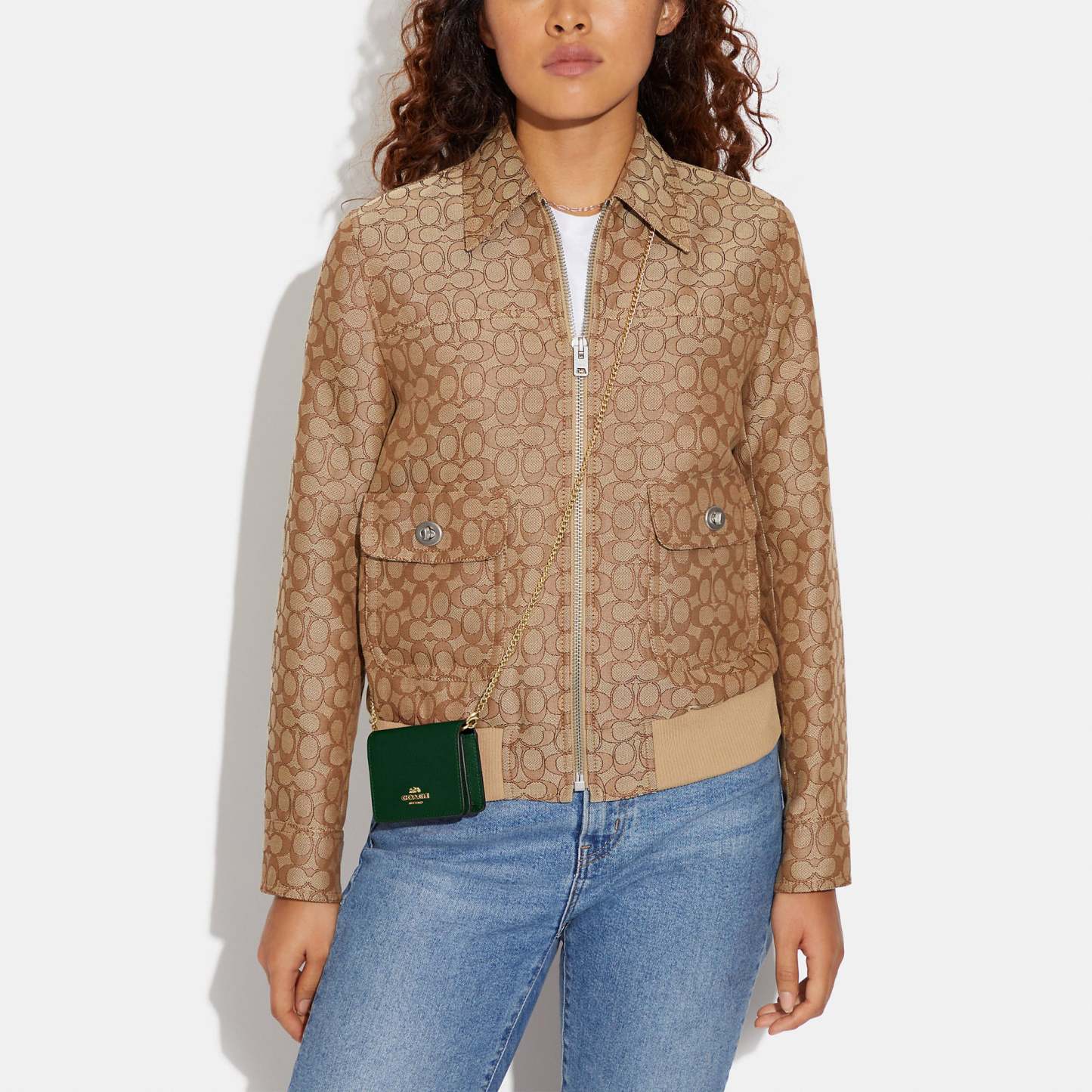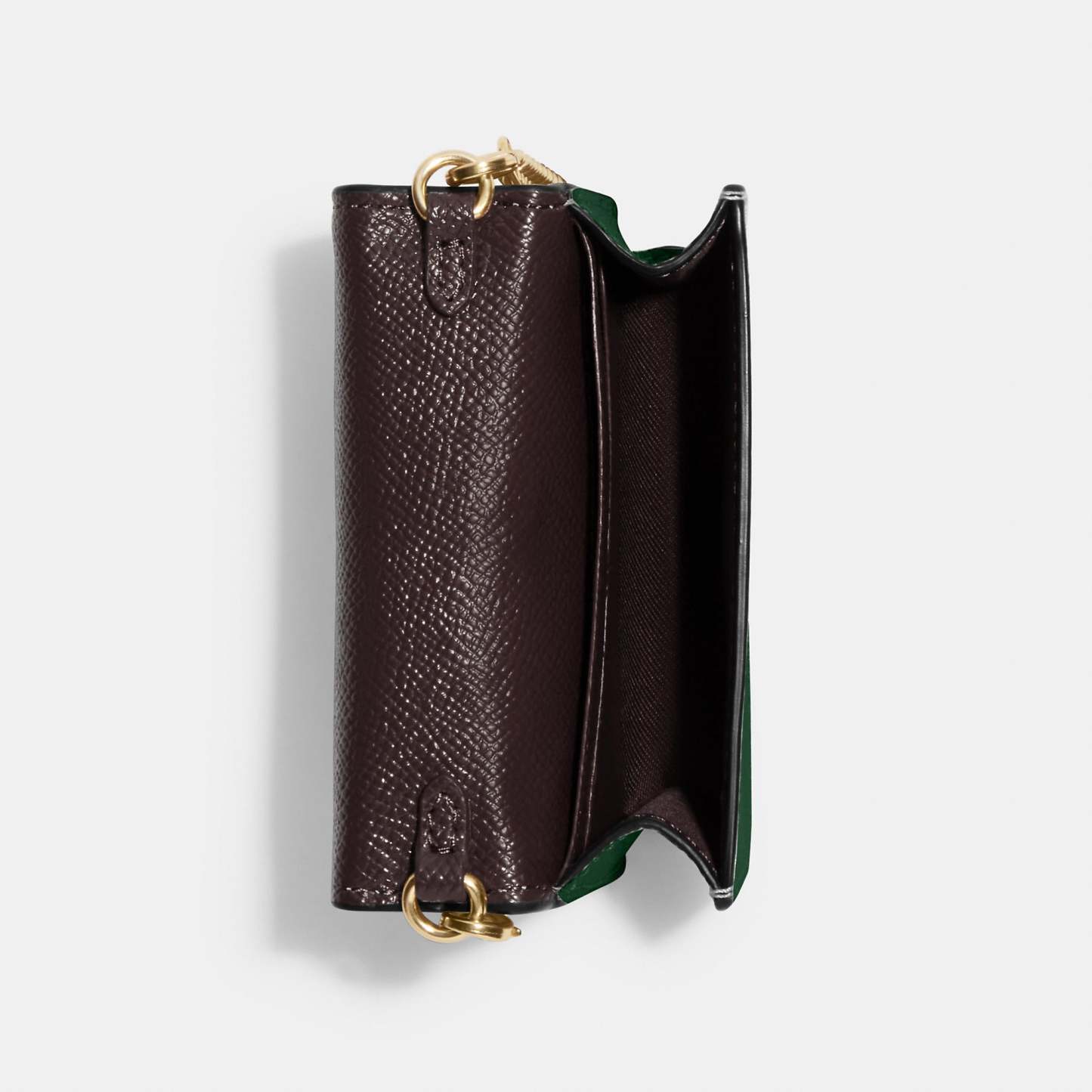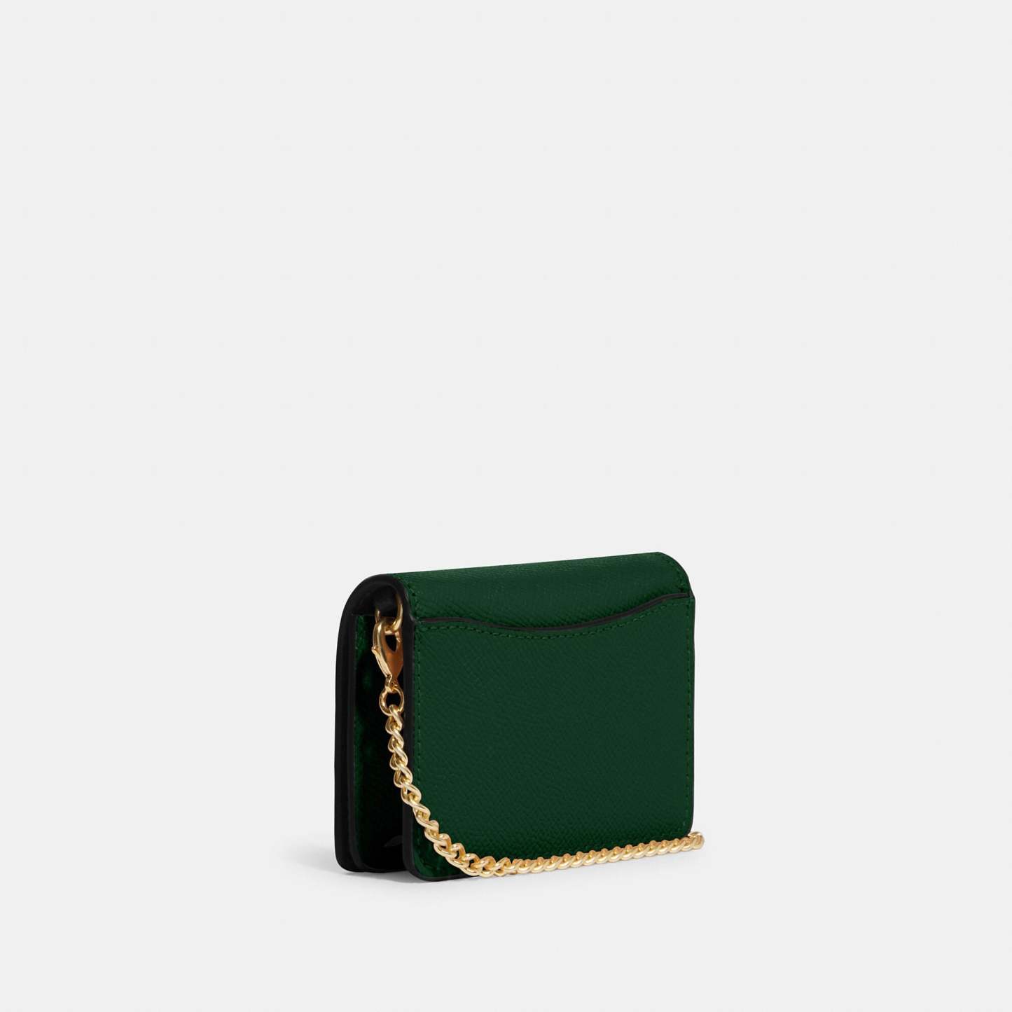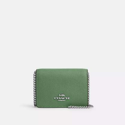 Metallic crossgrain leather Two credit card slots Snap closure fabric lining Outside open pocket Detachable chain strap with 23 1/4 drop for shoulder or crossbody wear 4 (L) x 3 (H) x 1 (W) Style No. C0059 | Coach Outlet Mini Wallet On A Chain - Green