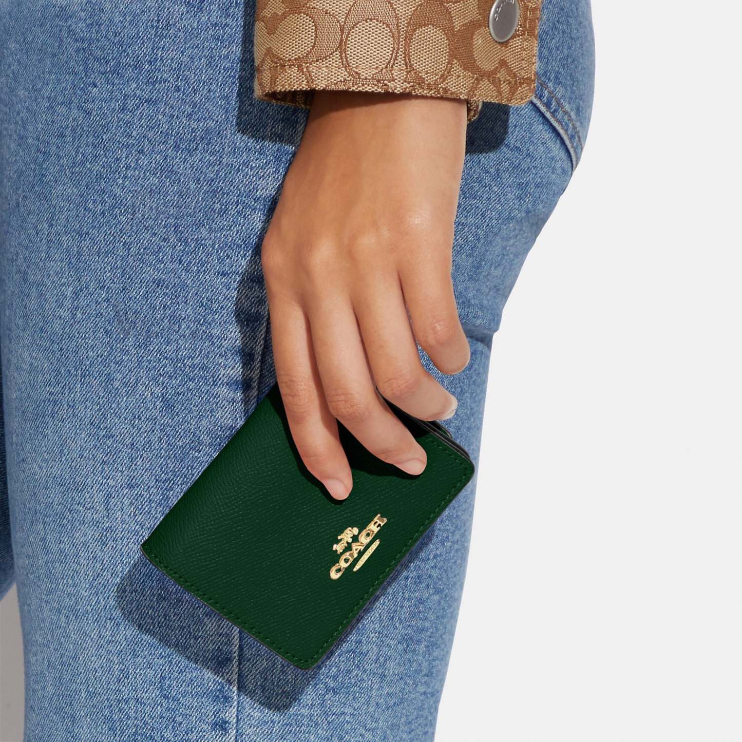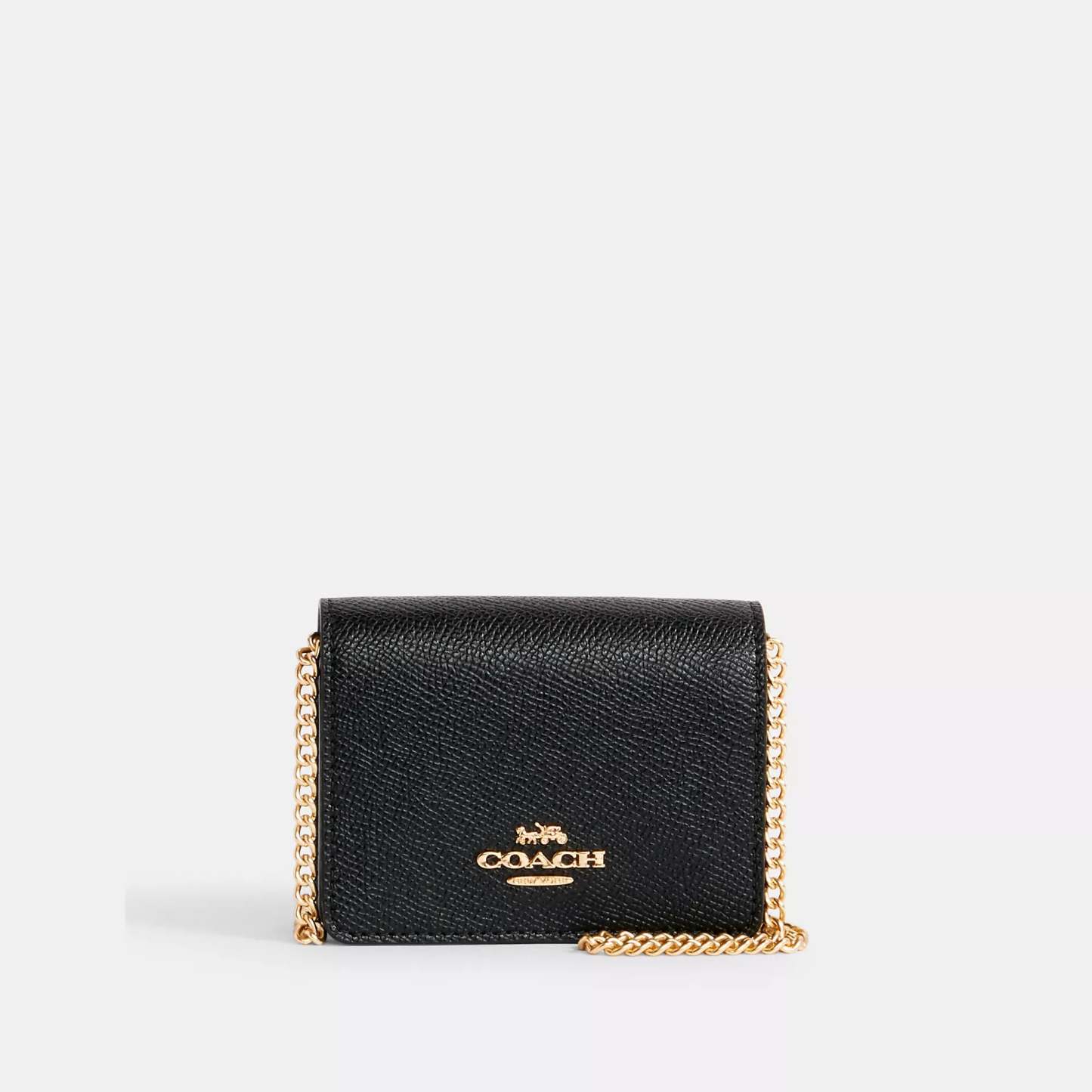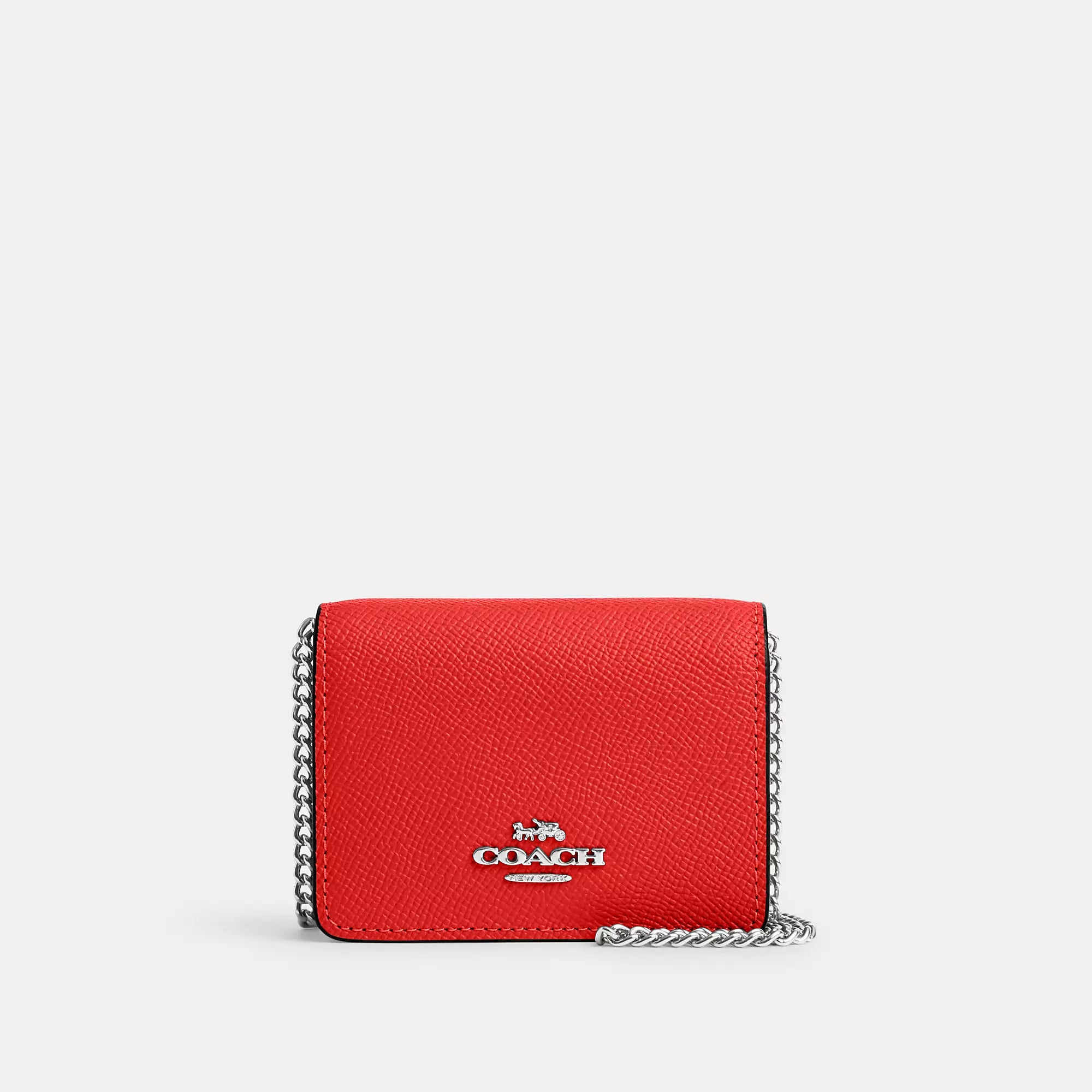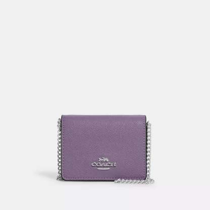 Metallic crossgrain leather Two credit card slots Snap closure fabric lining Outside open pocket Detachable chain strap with 23 1/4 drop for shoulder or crossbody wear 4 (L) x 3 (H) x 1 (W) Style No. C0059 | Coach Outlet Mini Wallet On A Chain - Green