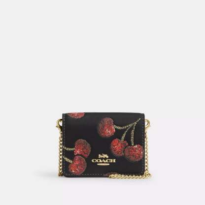 Outlet Mini Wallet On A Chain With Cherry Print