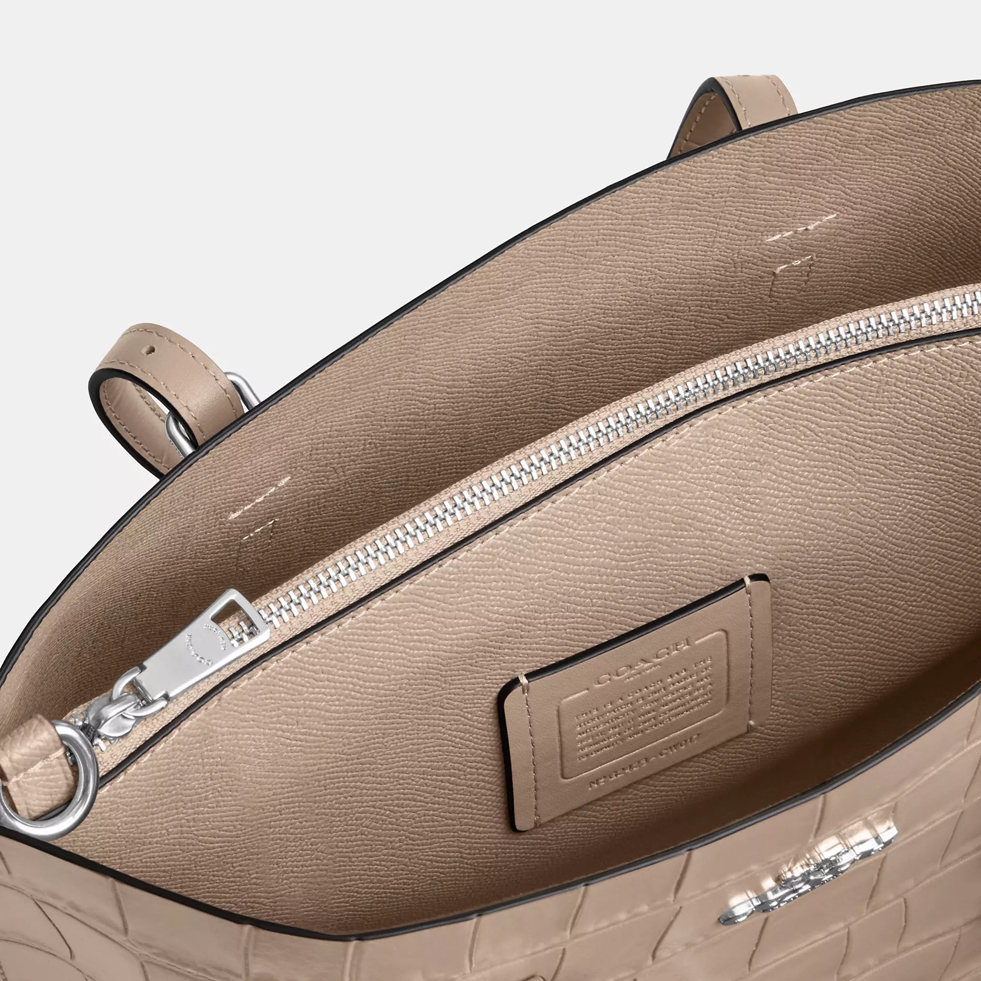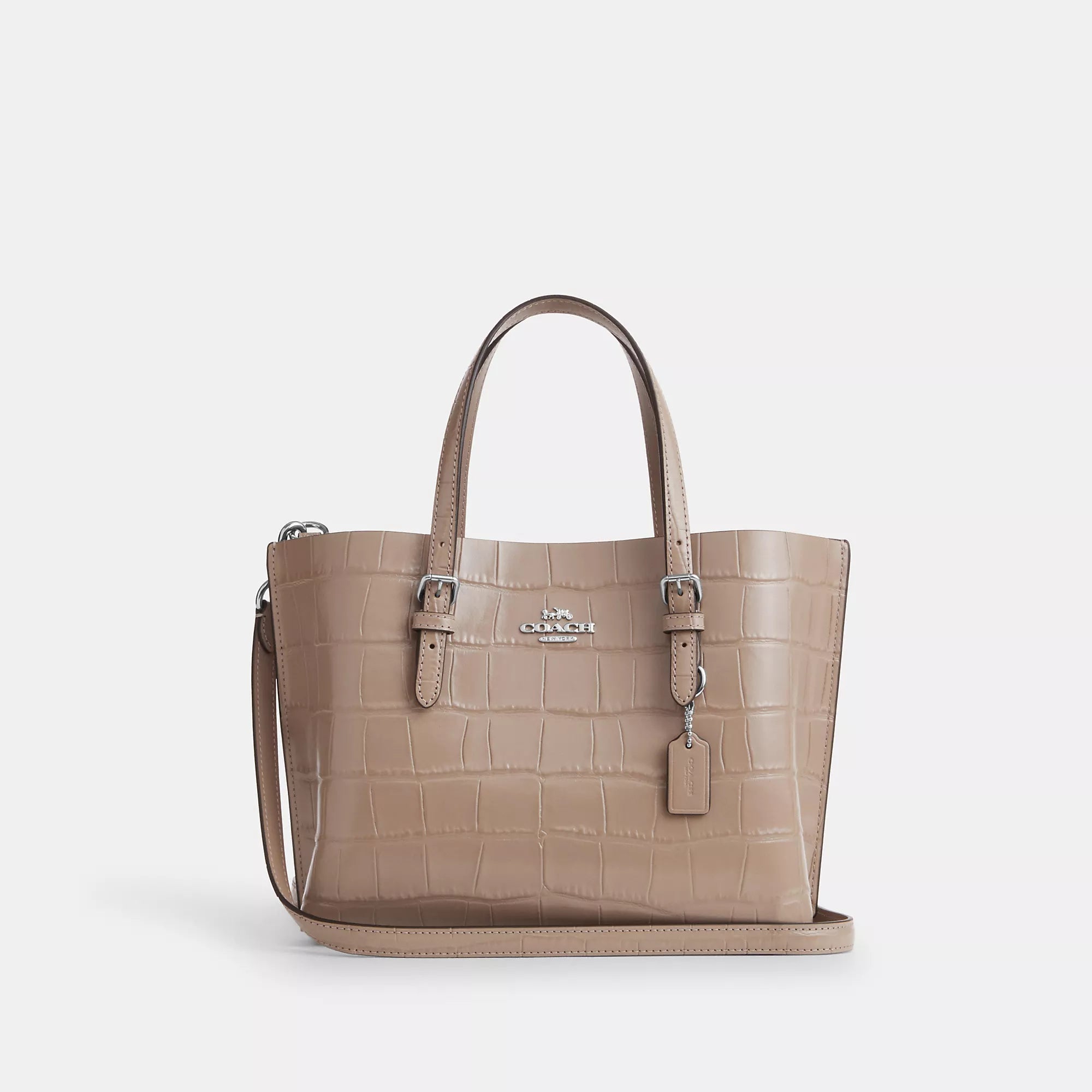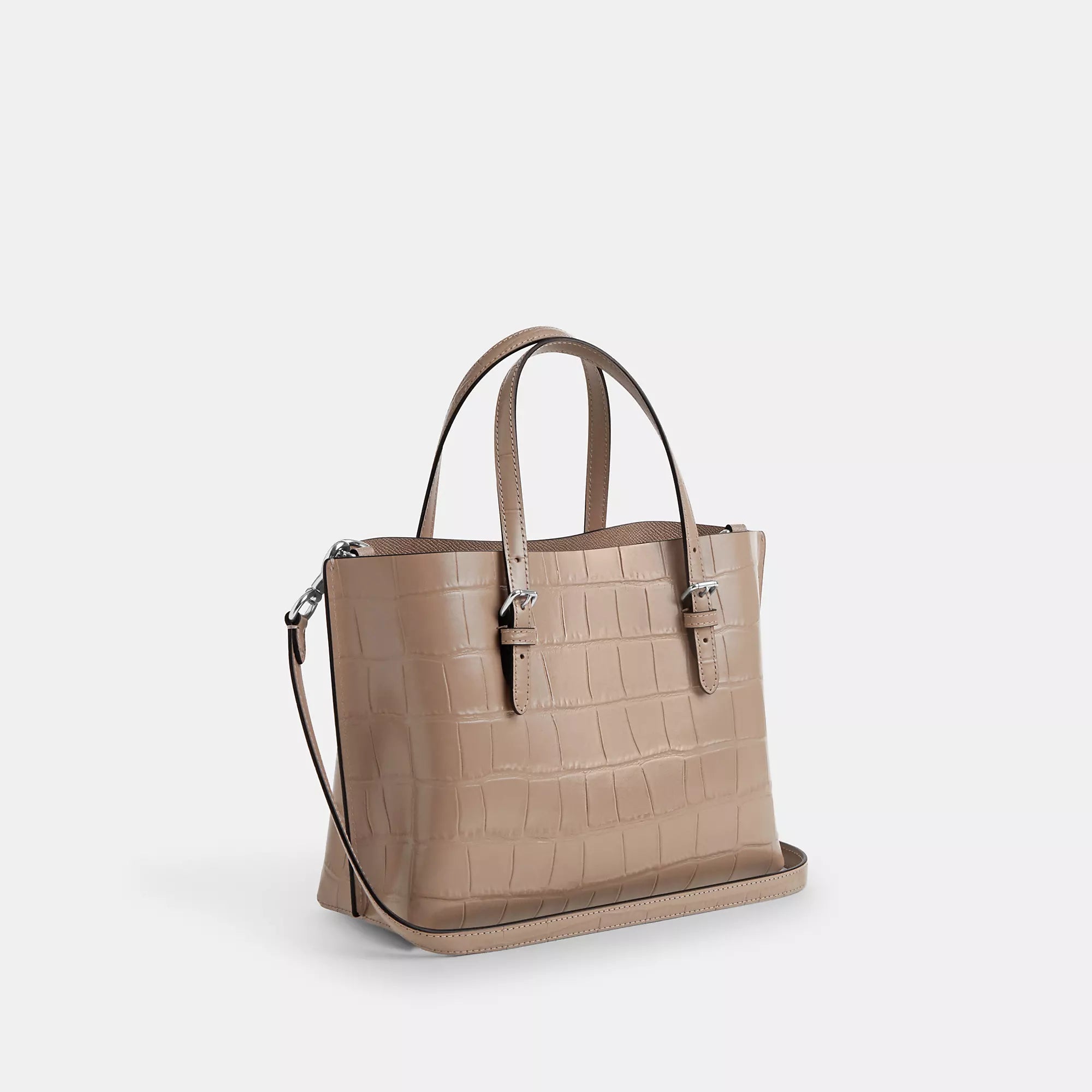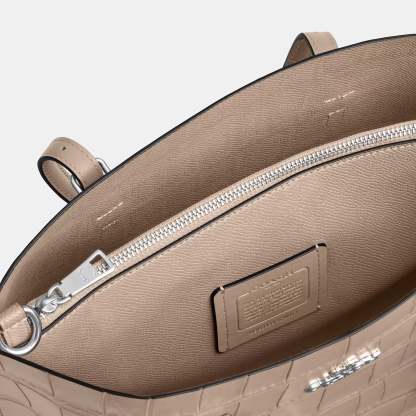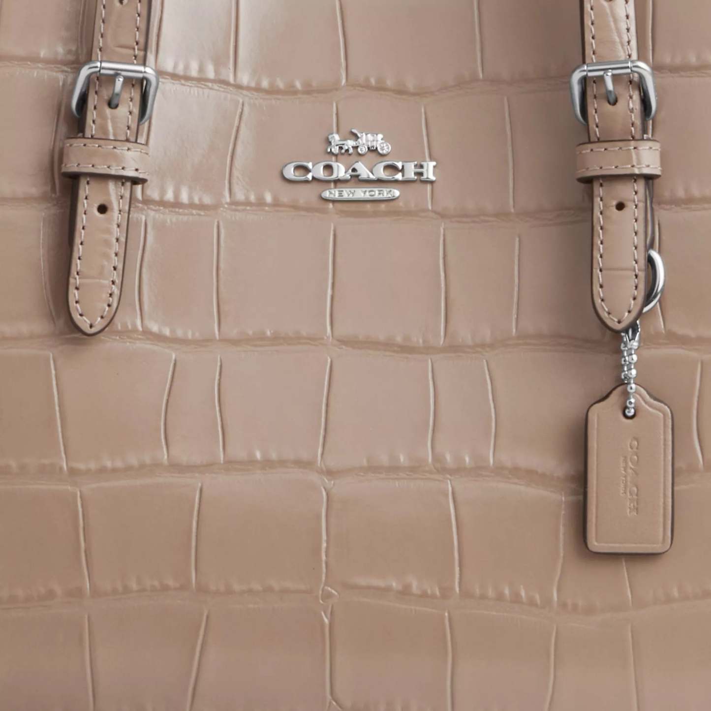 Crocodile-embossed leather and smooth leather Zip-top closure fabric lining Side open compartments Handles with 4 3/4 drop Detachable strap with 22 drop for shoulder or crossbody wear 9 3/4 (L) x 7 1/2 (H) x 4 3/4 (W) Style No. CW017 | Coach Outlet Mollie Tote Bag 25 - Beige