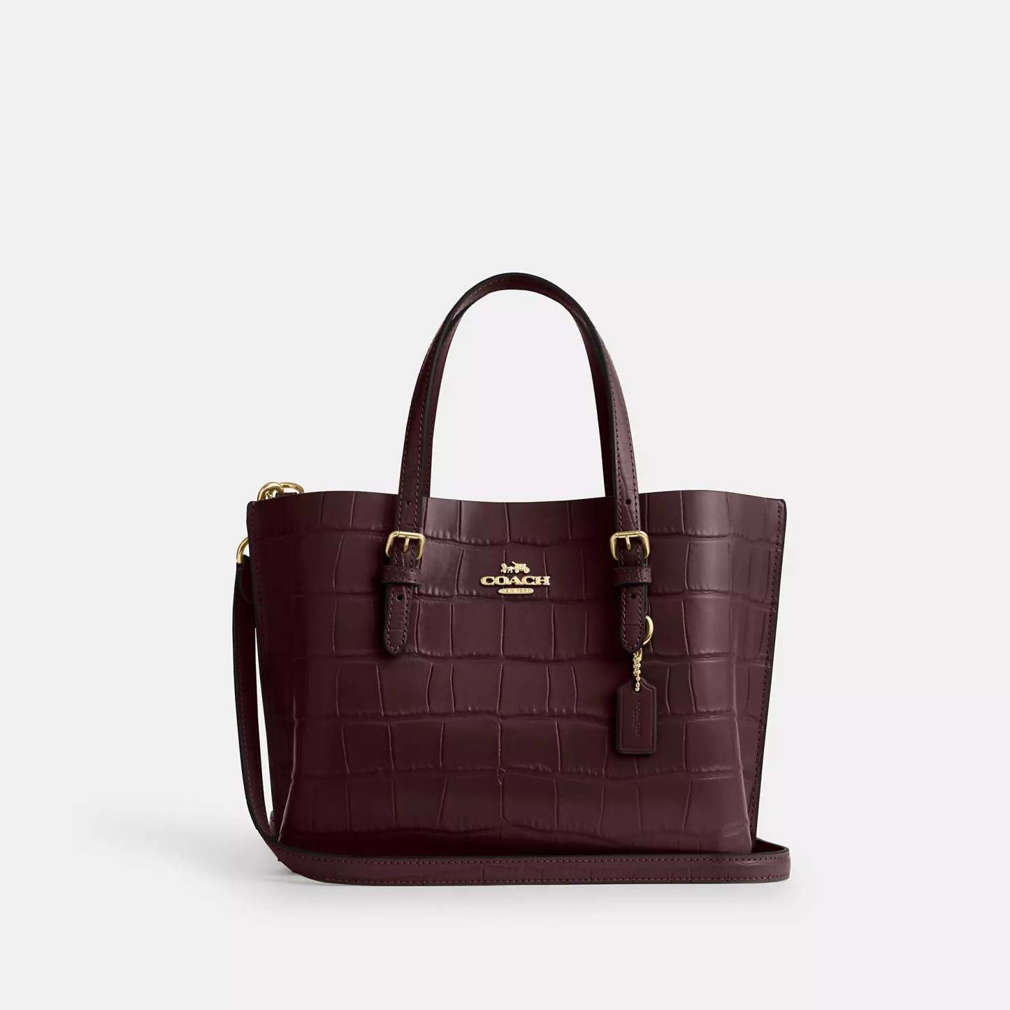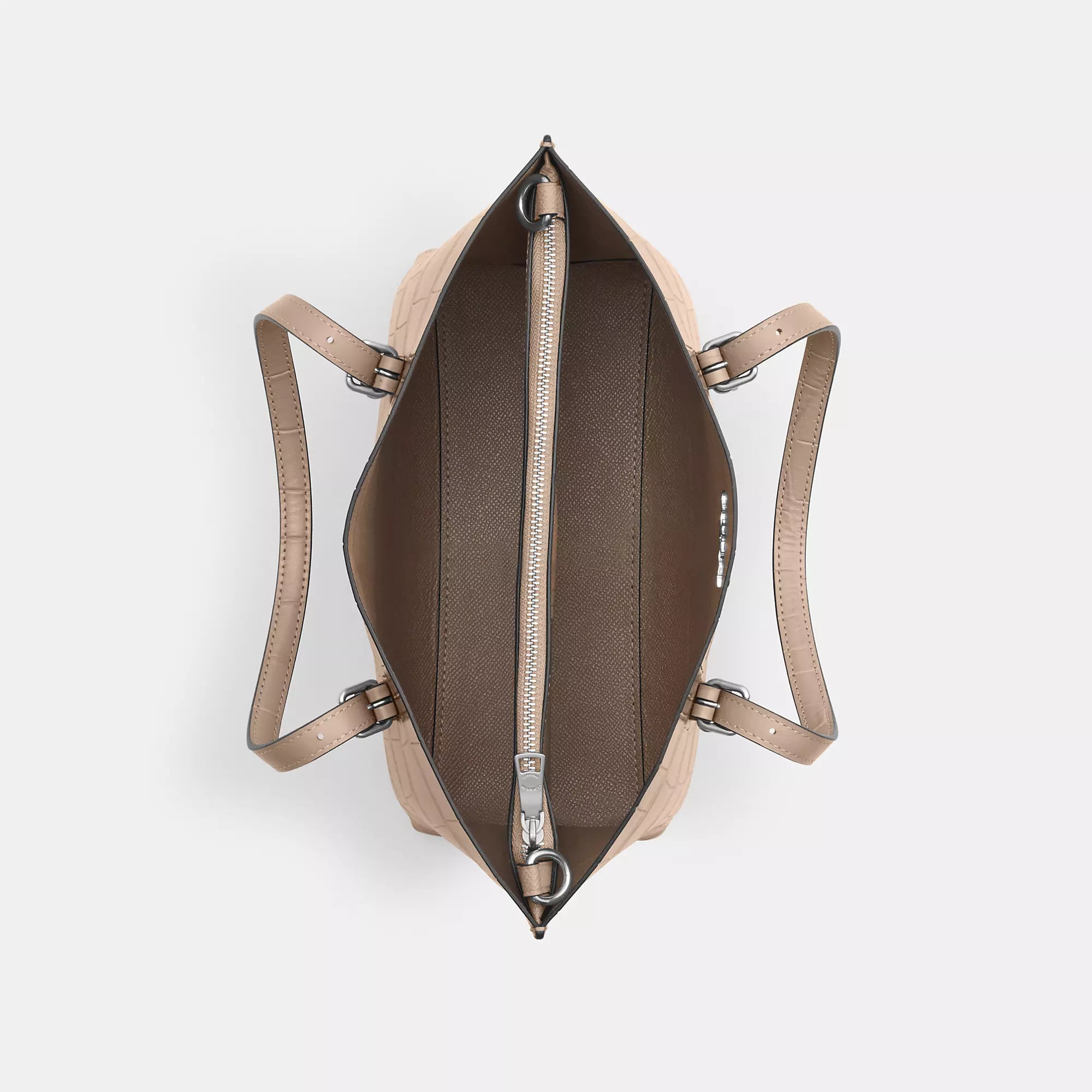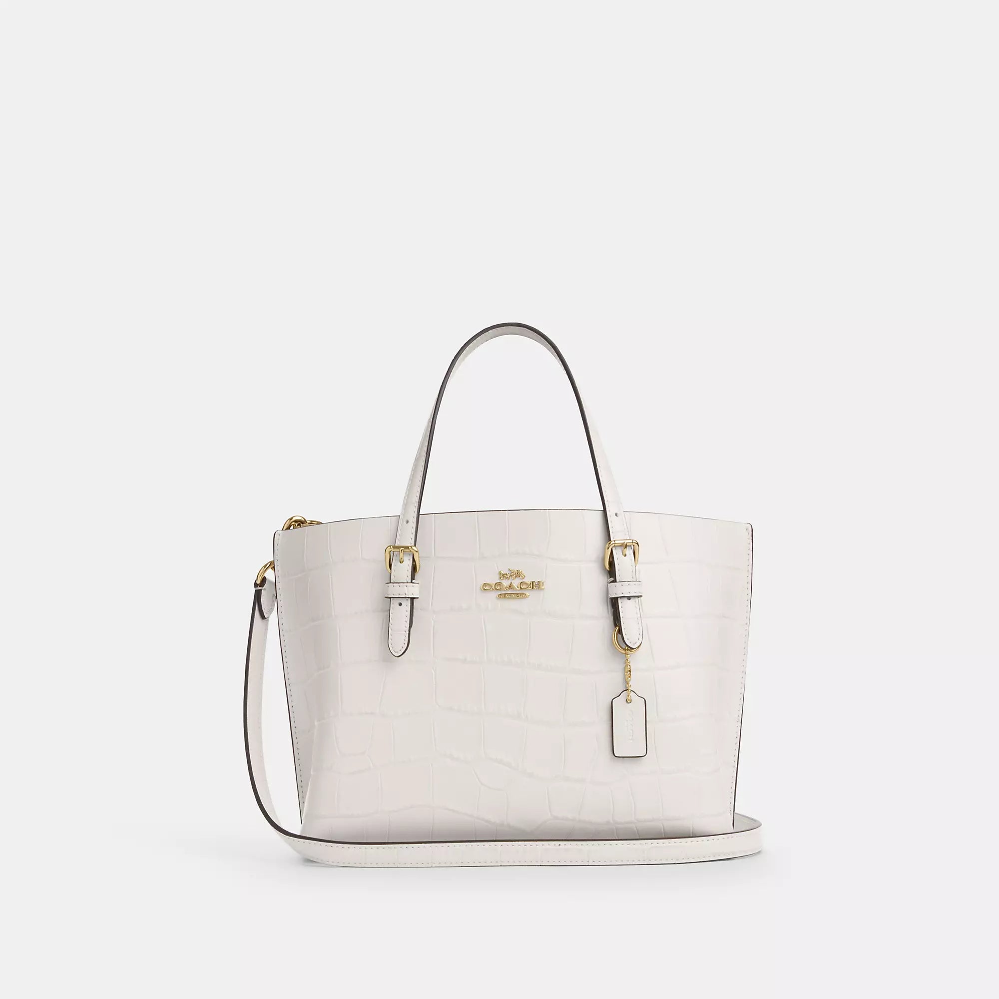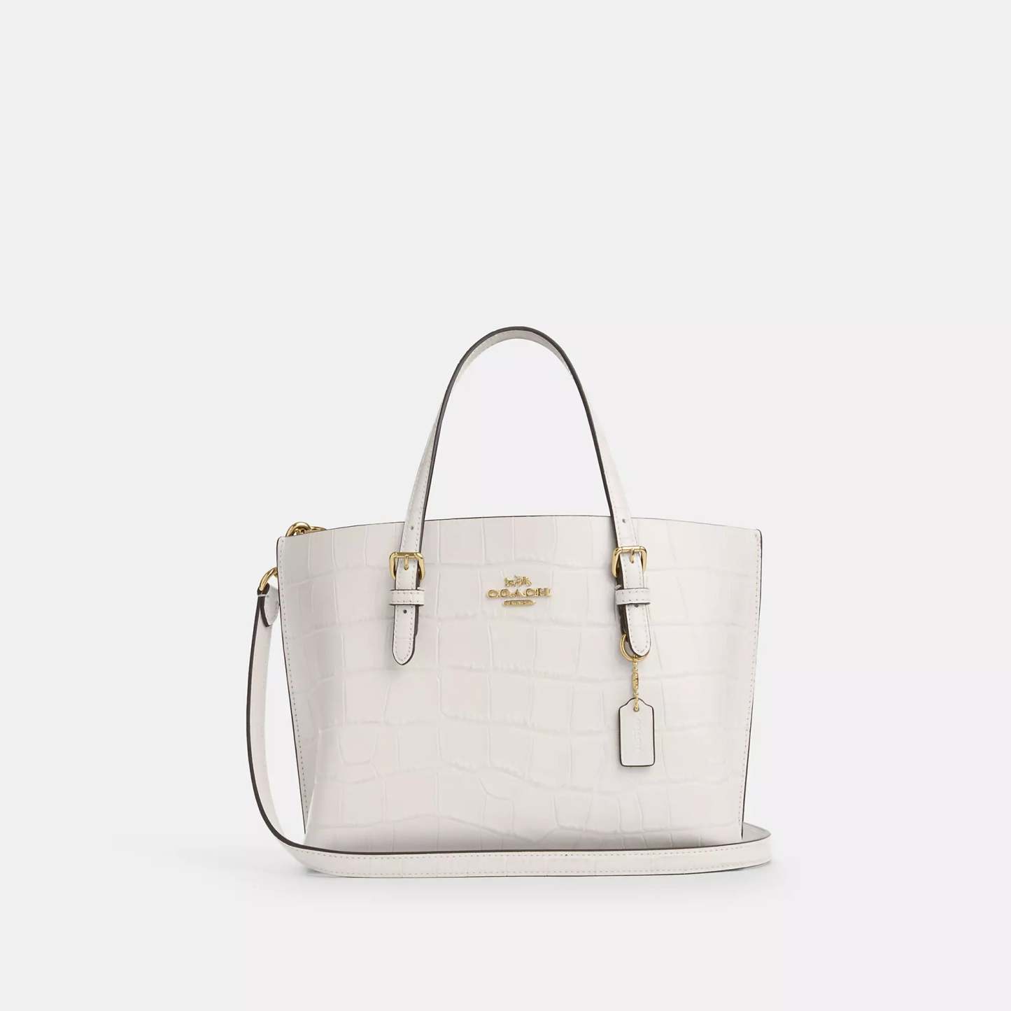 Crocodile-embossed leather and smooth leather Zip-top closure fabric lining Side open compartments Handles with 4 3/4 drop Detachable strap with 22 drop for shoulder or crossbody wear 9 3/4 (L) x 7 1/2 (H) x 4 3/4 (W) Style No. CW017 | Coach Outlet Mollie Tote Bag 25 - Beige
