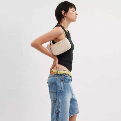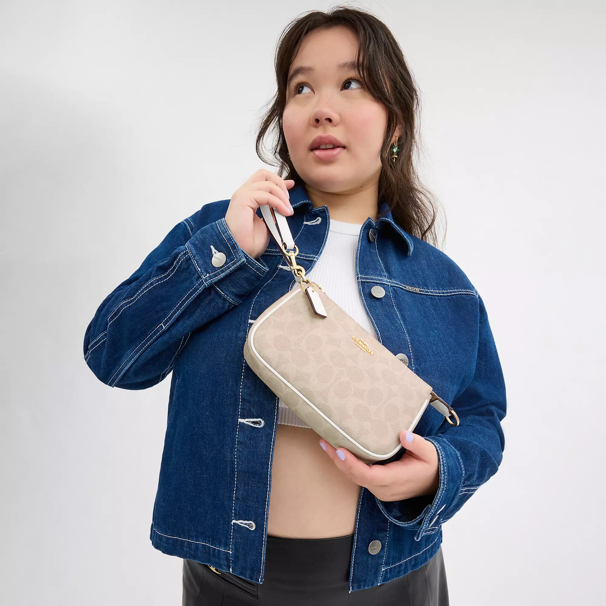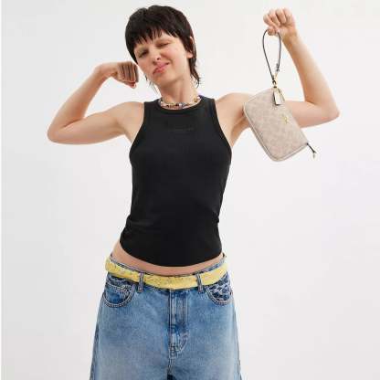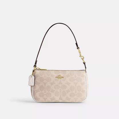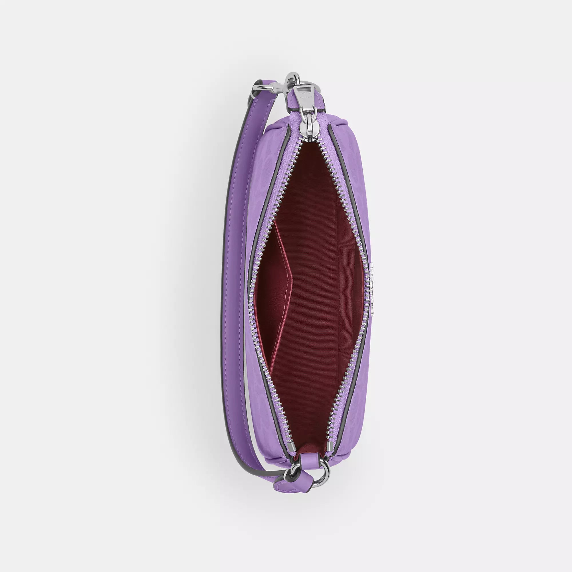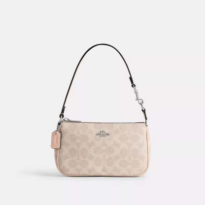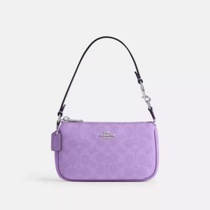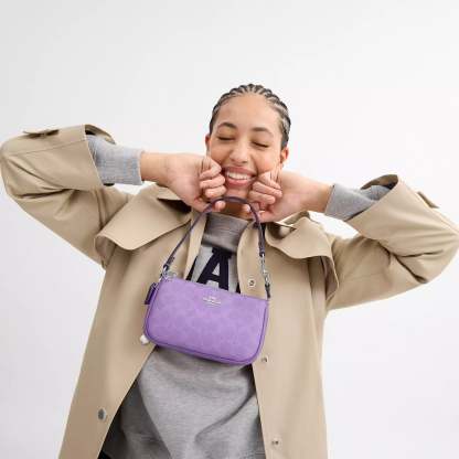 Signature coated canvas Two credit card slots Zip-top closure fabric lining Handle with 6 1/4 drop 7 1/2 (L) x 4 1/2 (H) x 2 (W) Style No. CW426 | Coach Outlet Nolita 19 In Signature Canvas - Purple