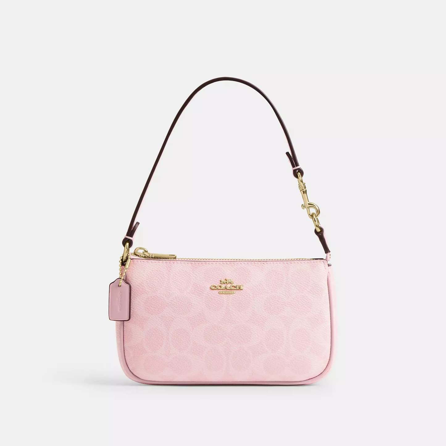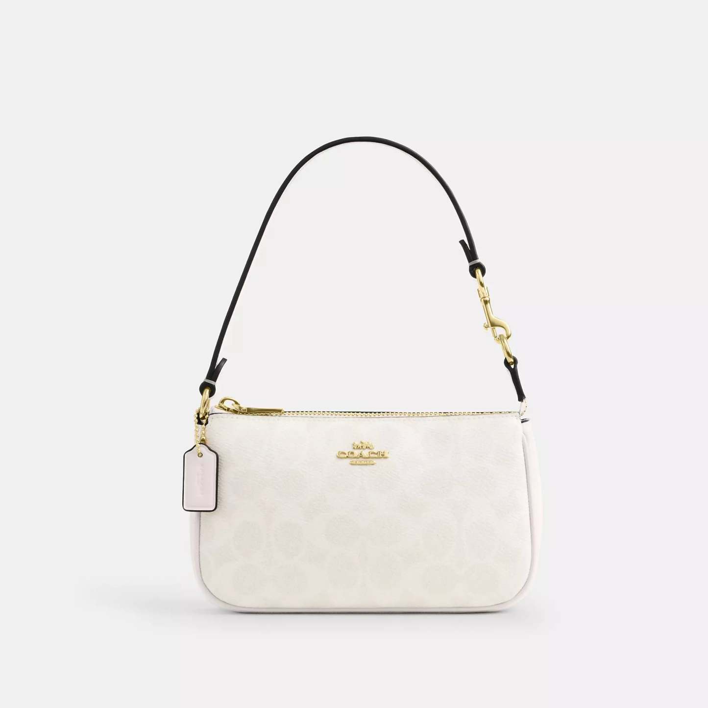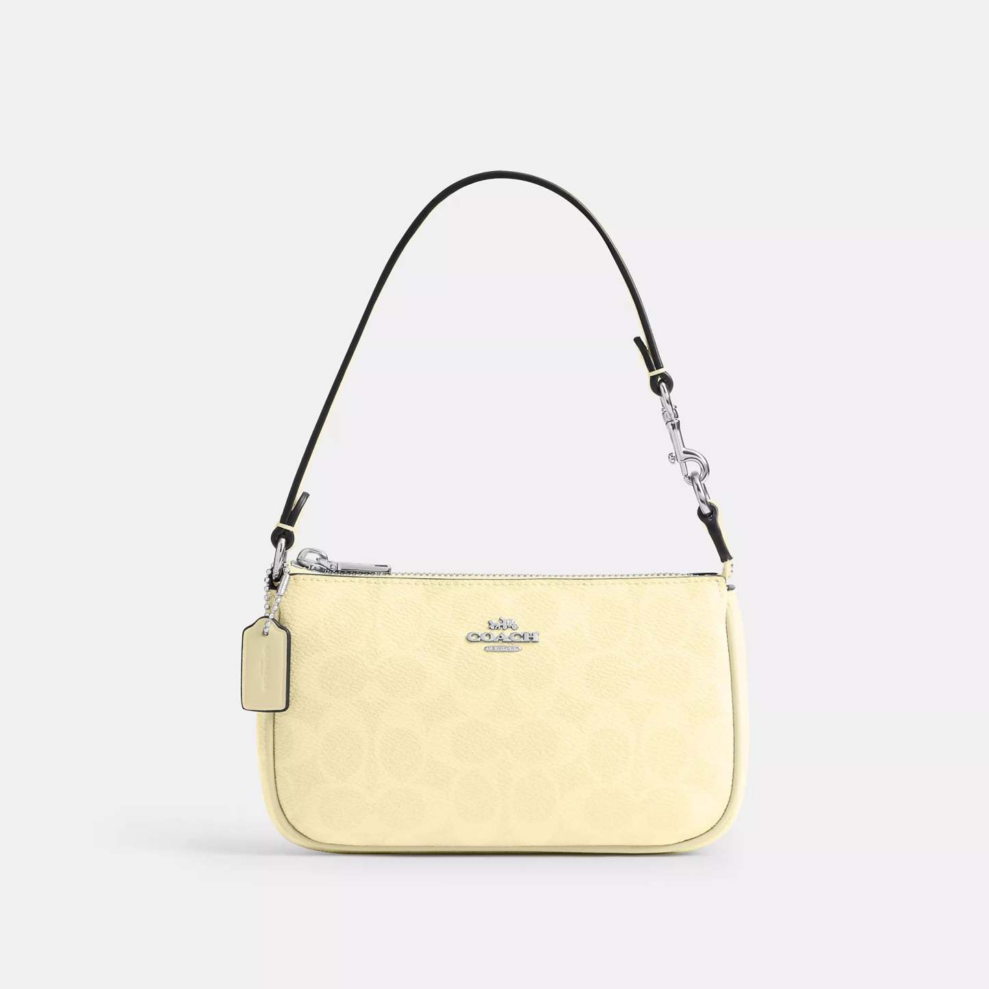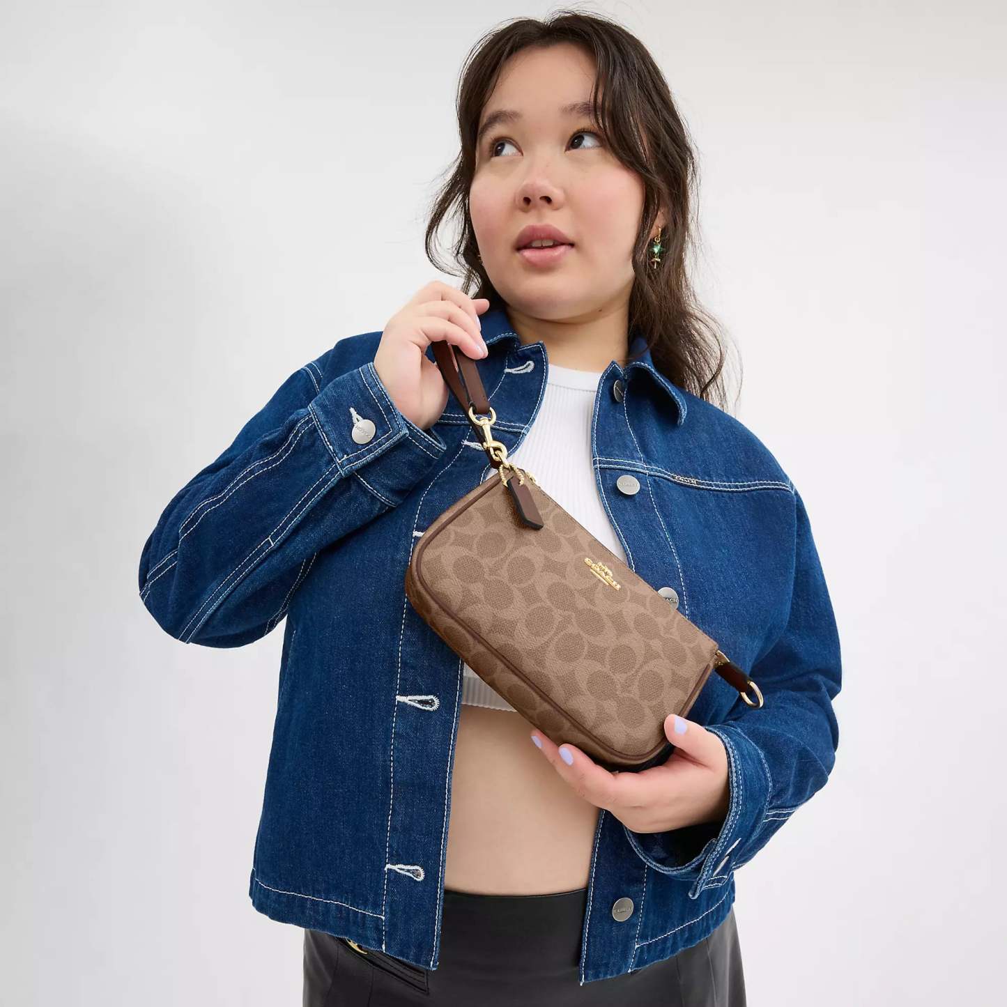 Signature coated canvas Two credit card slots Zip-top closure fabric lining Handle with 6 1/4 drop 7 1/2 (L) x 4 1/2 (H) x 2 (W) Style No. CW426 | Coach Outlet Nolita 19 In Signature Canvas - Brown