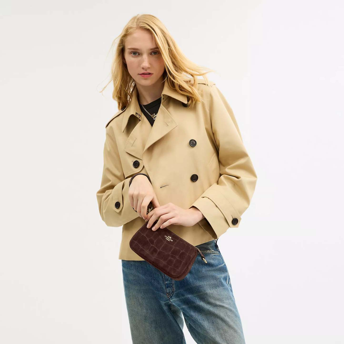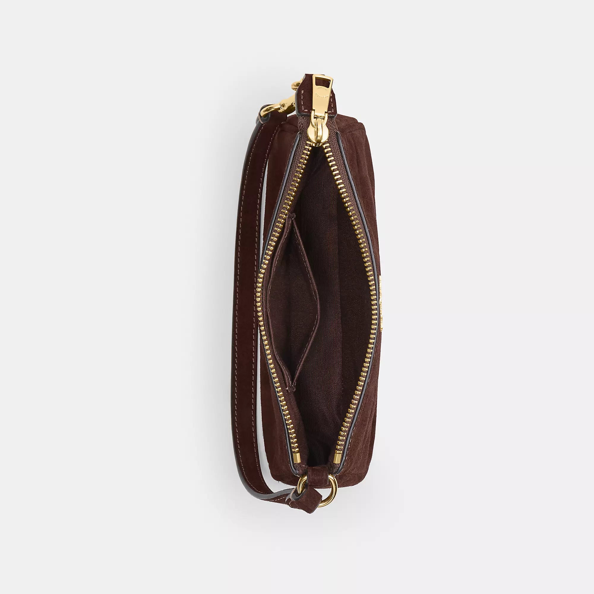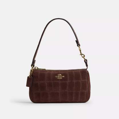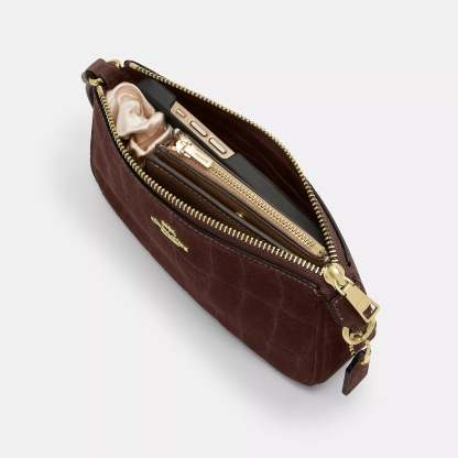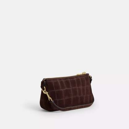 Crocodile-embossed suede and smooth leather Two credit card slots Zip-top closure fabric lining Handle with 6 1/4 drop 7 1/2 (L) x 4 1/2 (H) x 2 (W) Style No. CCF61 | Coach Outlet Nolita 19 - Brown