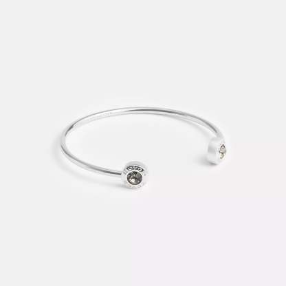 Plated brass glass and cubic zirconia Diameter - 2 1/4 (L) x 2 (H) Style No. CT037 | Coach Outlet Open Circle Cuff - Grey