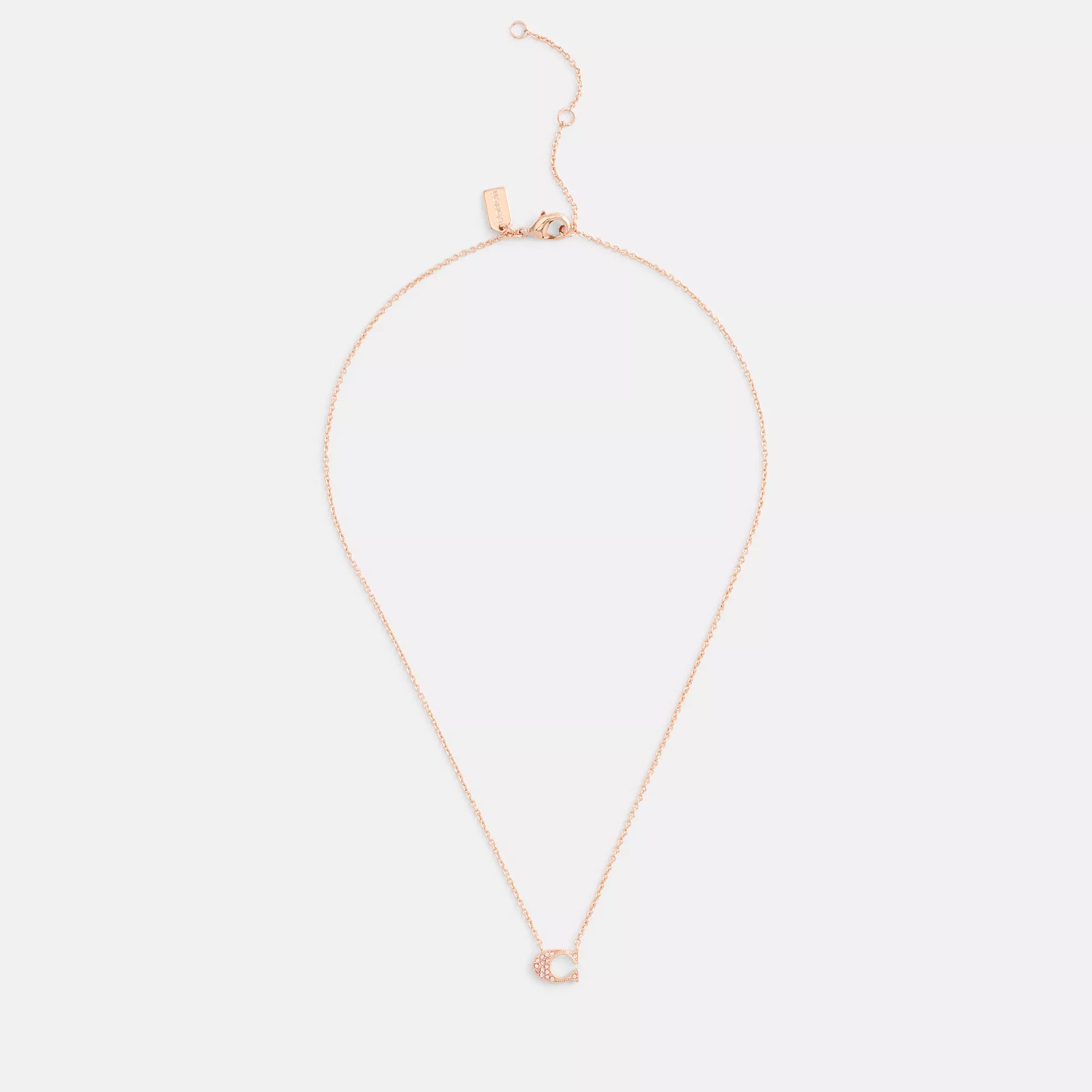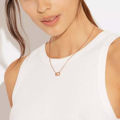 Gold-plated brass Lobster clasp closure Adjustable 16 - 18 (L) Style No. 91433 | Coach Outlet Pave Signature Necklace - Rose Gold