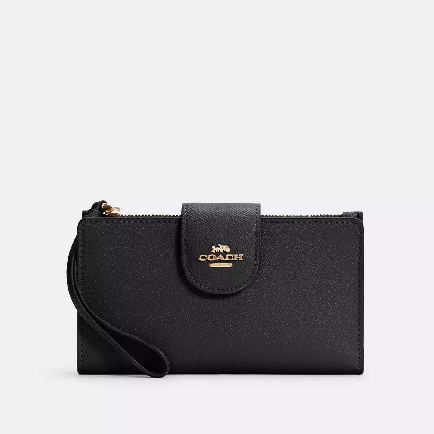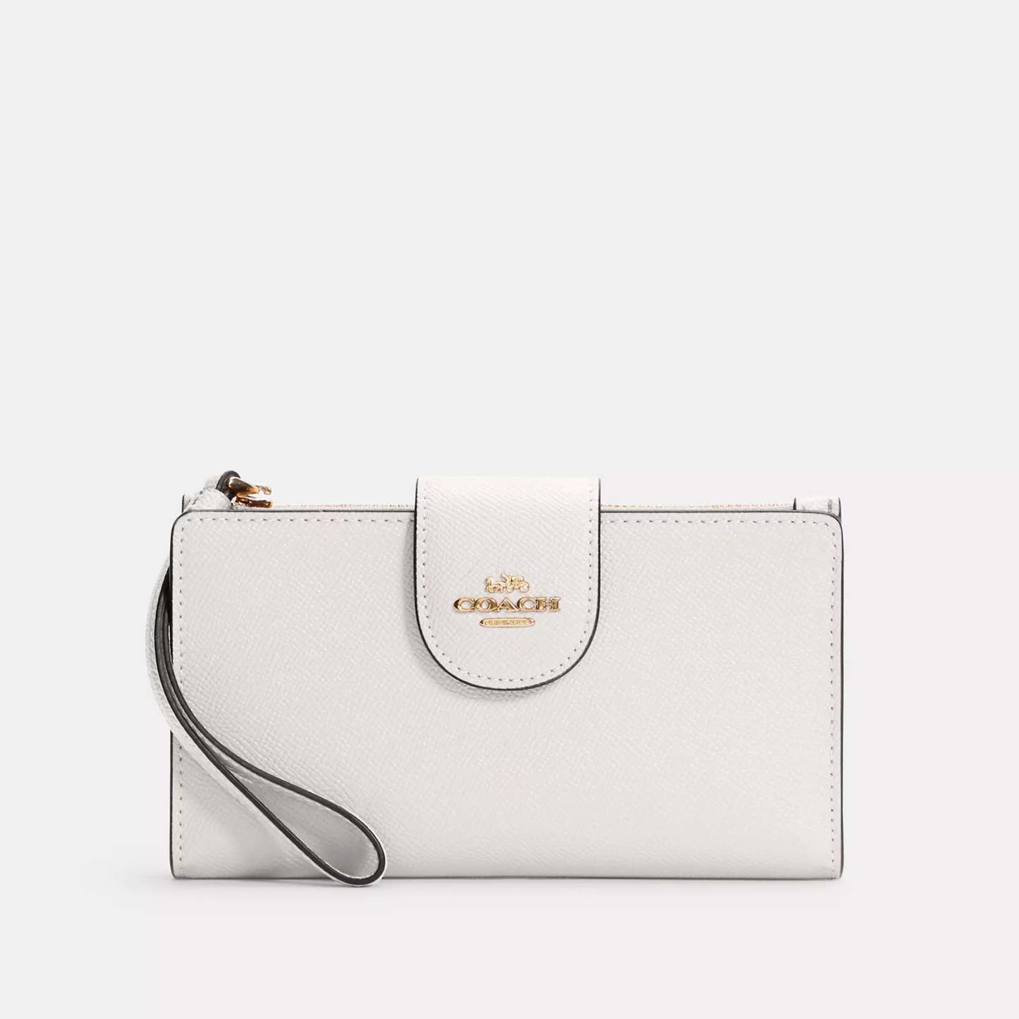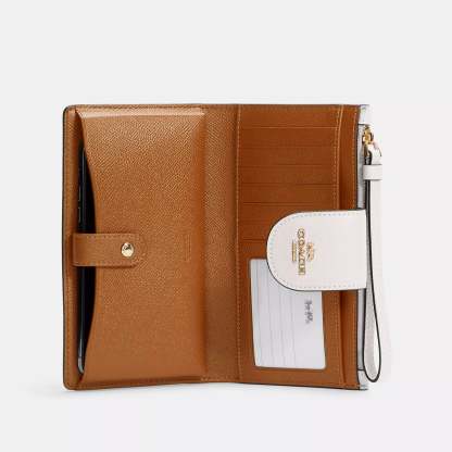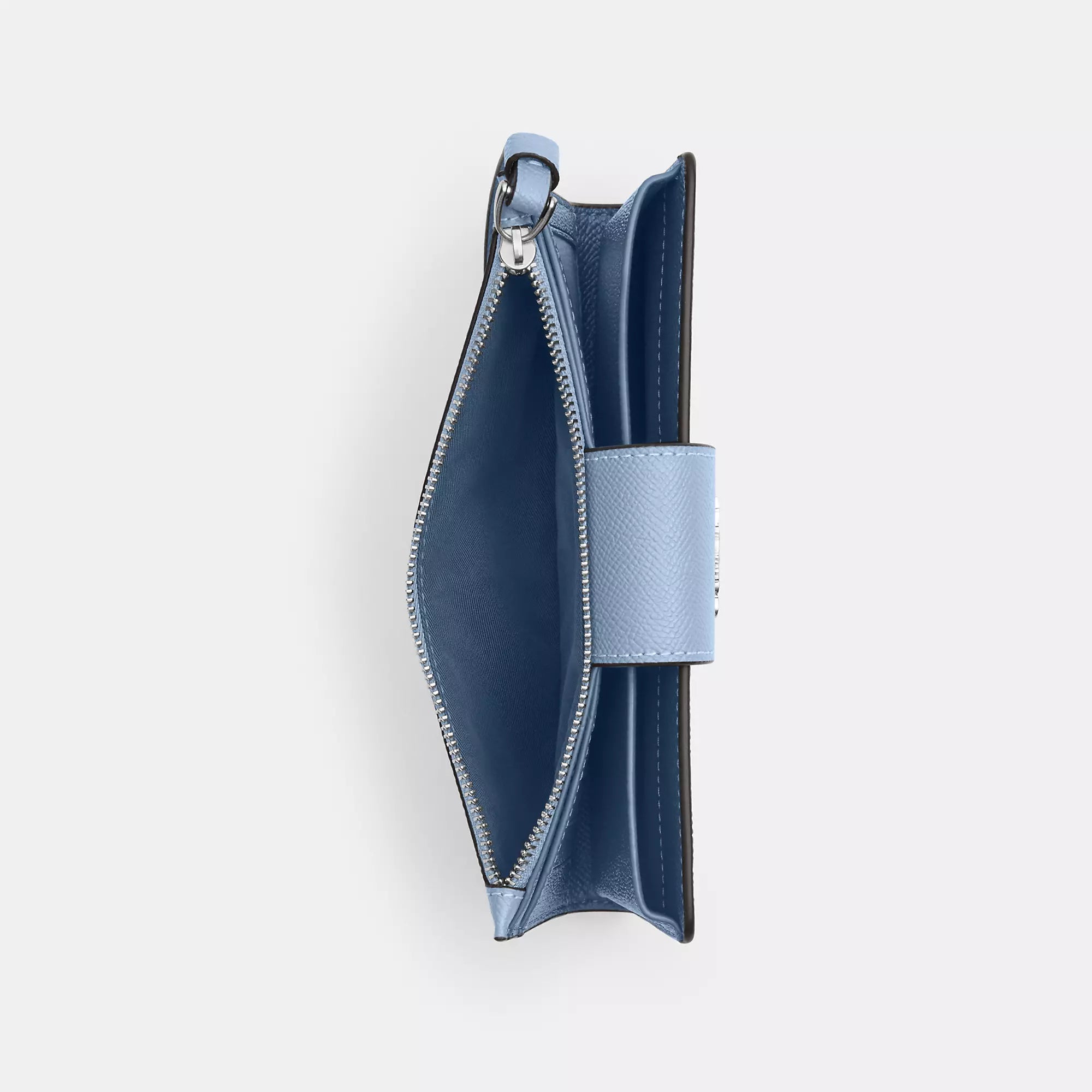 Crossgrain leather Six credit card slots ID window Full-length bill compartment Snap phone pocket Snap closure Outside zip coin pocket Wrist strap attached 7 1/4 (L) x 4 1/4 (H) Style No. CS441 | Coach Outlet Phone Wallet - Blue