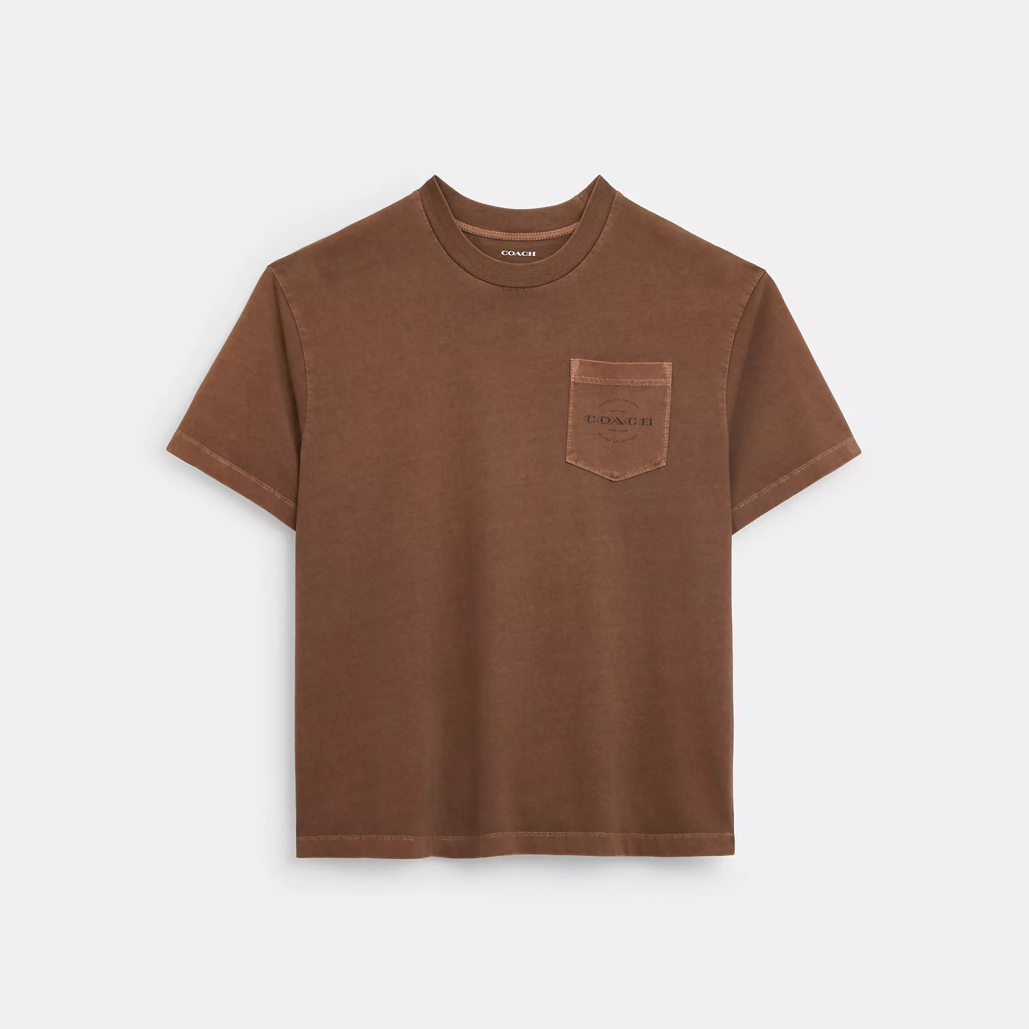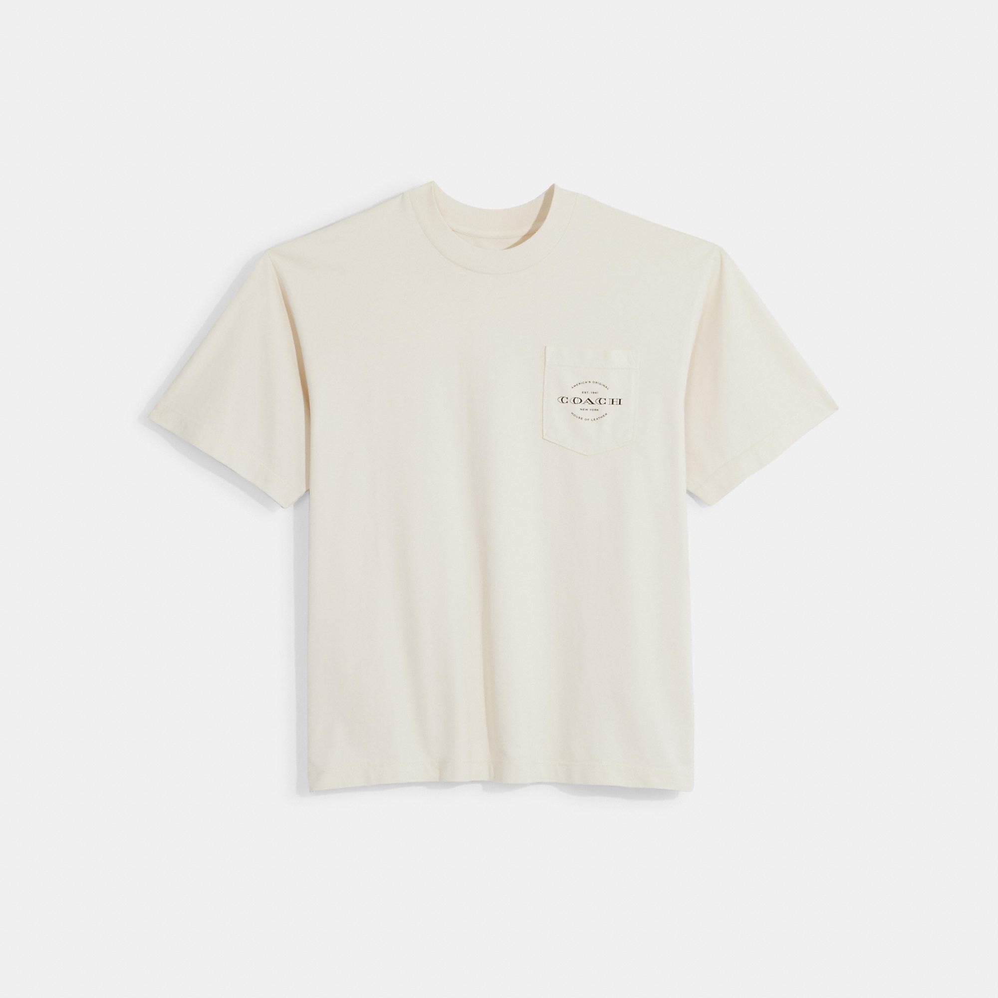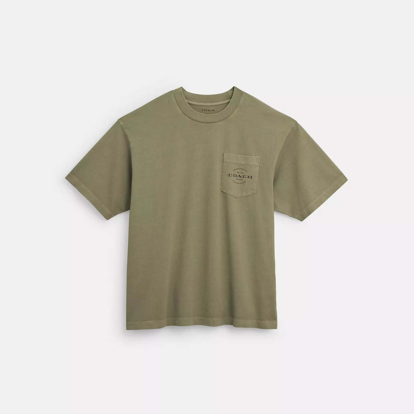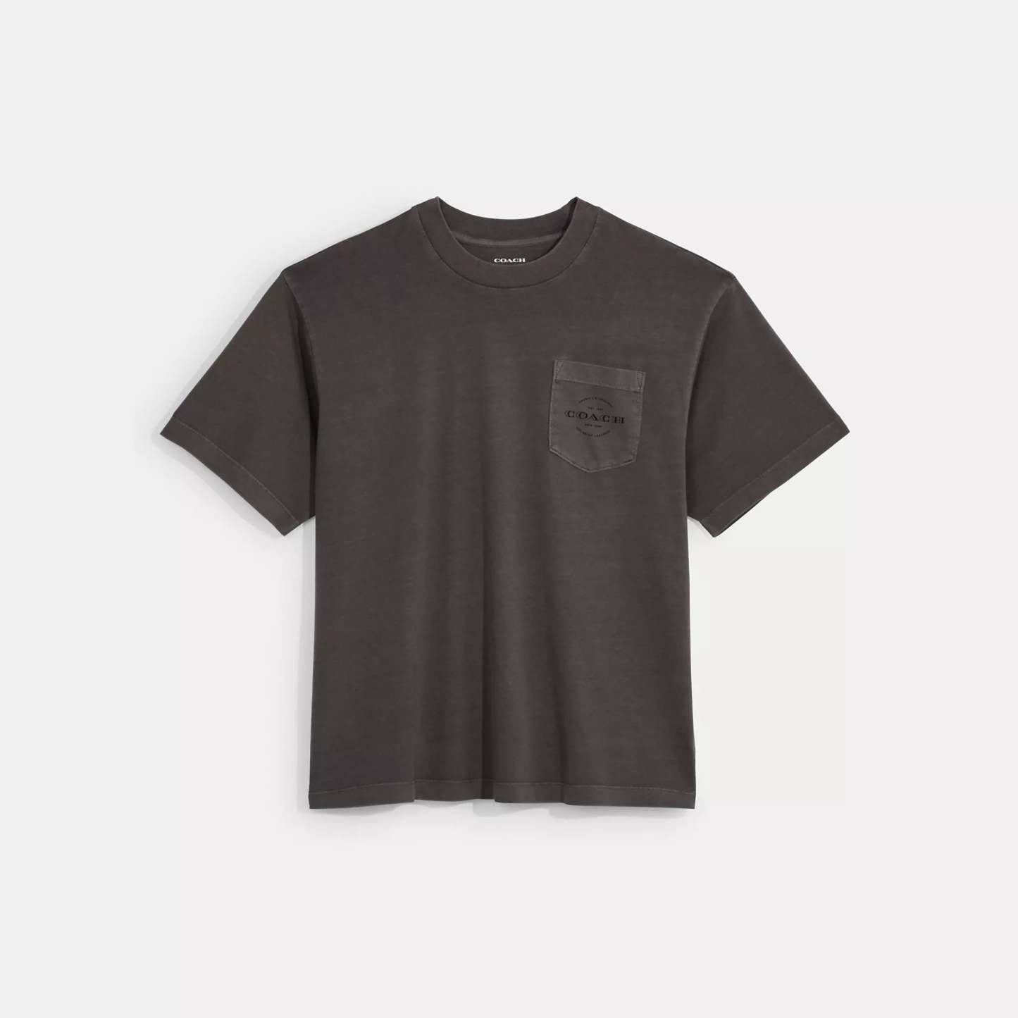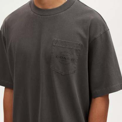 100% cotton Knit rib - 96% cotton 4% elastane Chest pocket Length - 29 Machine wash Model is 6'2 (188cm) and wears a size M Style No. CF816 | Coach Outlet Pocket T-Shirt - Grey, Size - Large