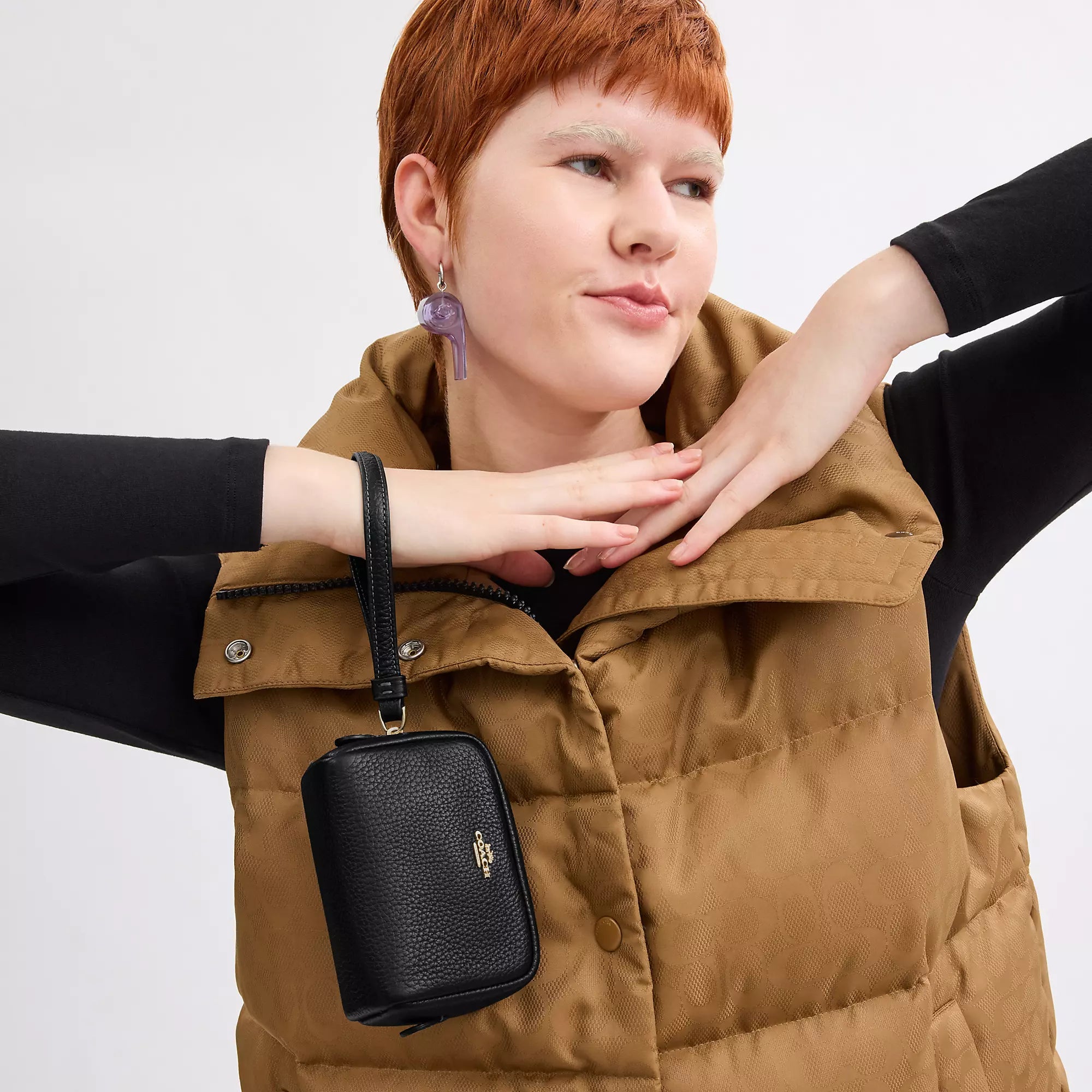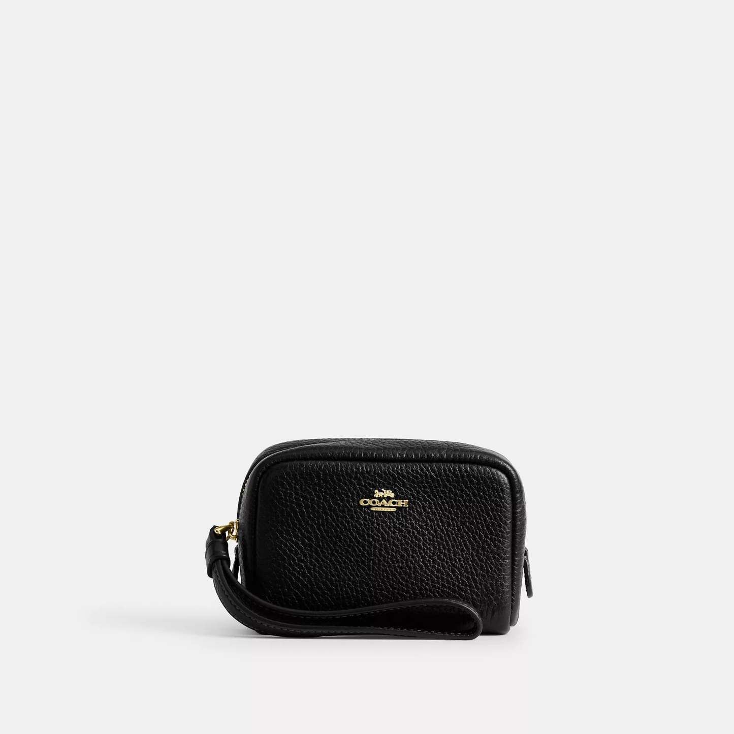 Refined pebble leather Zip closure fabric lining Attached wrist strap 4 1/4 (L) x 3 1/4 (H) x 2 1/4 (W) Style No. CW906 | Coach Outlet Pouch Wristlet - Black